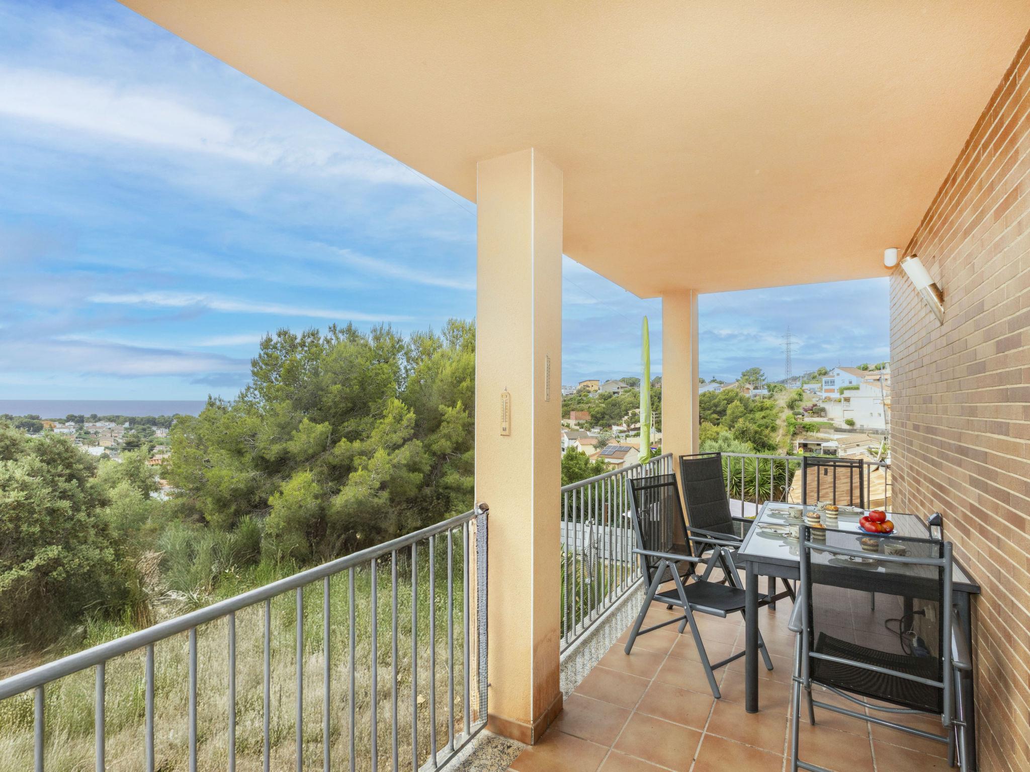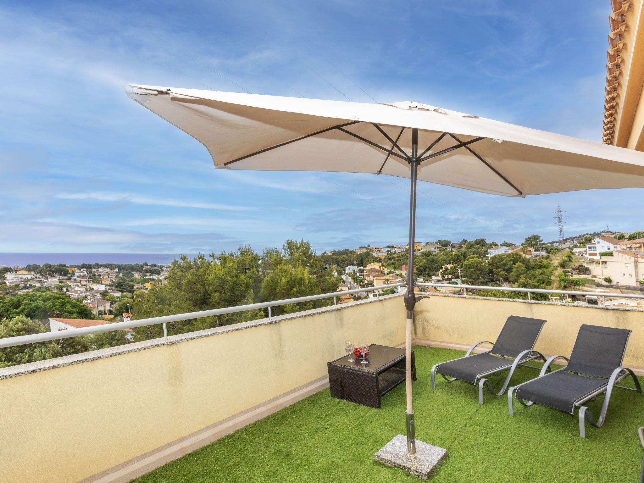 "Melina", 4-room house 95 m2 on 2 levels. Object suitable for 4 adults + 2 children. Bright, practical and comfortable furnishings: living/dining room with satellite TV and digital TV. Exit to the patio. Kitchen (oven, dishwasher, 4 ceramic glass hob hotplates, toaster, kettle, microwave, electric coffee machine). Shower/WC. Oil heating. Upper floor: 1 room with 1 double bed (2 x 90 cm, length 200 cm). 1 room with 1 french bed (150 cm, length 190 cm). 1 room with 2 beds (90 cm, length 180 cm). Bath/WC. Oil heating. Terrace. Terrace furniture, barbecue, deck chairs (4). Very beautiful panoramic view of the sea and the countryside. Facilities: washing machine, iron, children's high chair, baby cot for up to 3 year olds, hair dryer. Internet (WiFi, free). Garage on the property (1 car) at the house. Please note: suitable for families. Non-smoking house. Maximum 1 pet/ dog allowed. TV only ES, DE. The pool mentioned in the description is for private use. HUTT-069243 // Reg. Nr.: ESFCTU00004302500039881500000000000000000HUTT-0692436