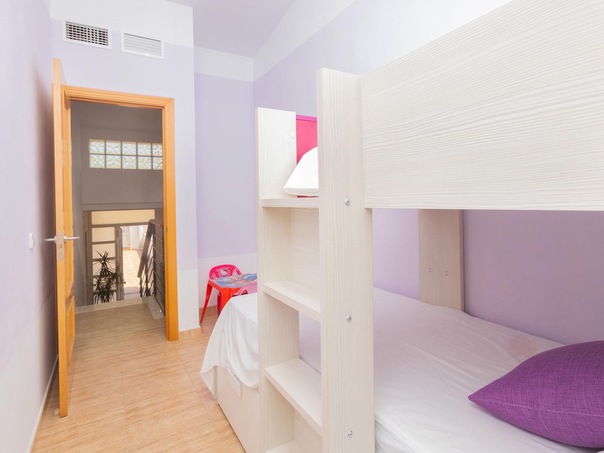 "Nova", 5-room house 119 m2 on 2 levels. Comfortable and modern furnishings: living/dining room with dining table and digital TV. Exit to the patio. 1 room with 1 french bed (160 cm, length 190 cm). Kitchen (oven, dishwasher, 4 ceramic glass hob hotplates, microwave). Shower/WC. Upper floor: 1 room with 1 french bed (135 cm, length 190 cm), shower/bidet/WC, electric heating and air conditioning. 1 room with 1 x 2 bunk beds (90 cm, length 190 cm), electric heating and air conditioning. 1 room with 1 bed (90 cm, length 190 cm), electric heating and air conditioning. Bath/WC. Patio. Terrace furniture, barbecue, covered balcony. Facilities: washing machine, iron, children's high chair, baby cot for up to 2 year olds, hair dryer. Parking (roofed, 1 car). HUTT054031 // Reg. Nr.: ESFCTU000043025000456416000000000000000000HUTT0540314