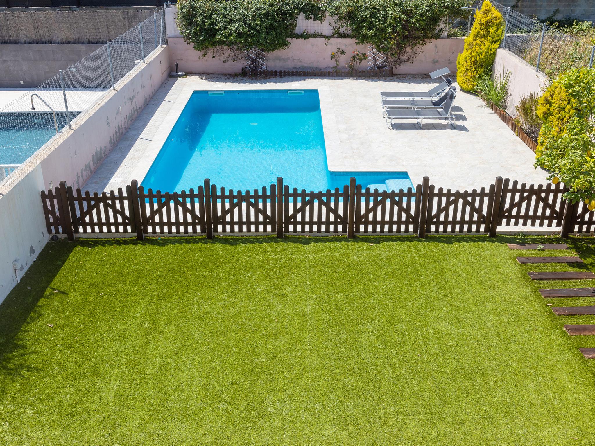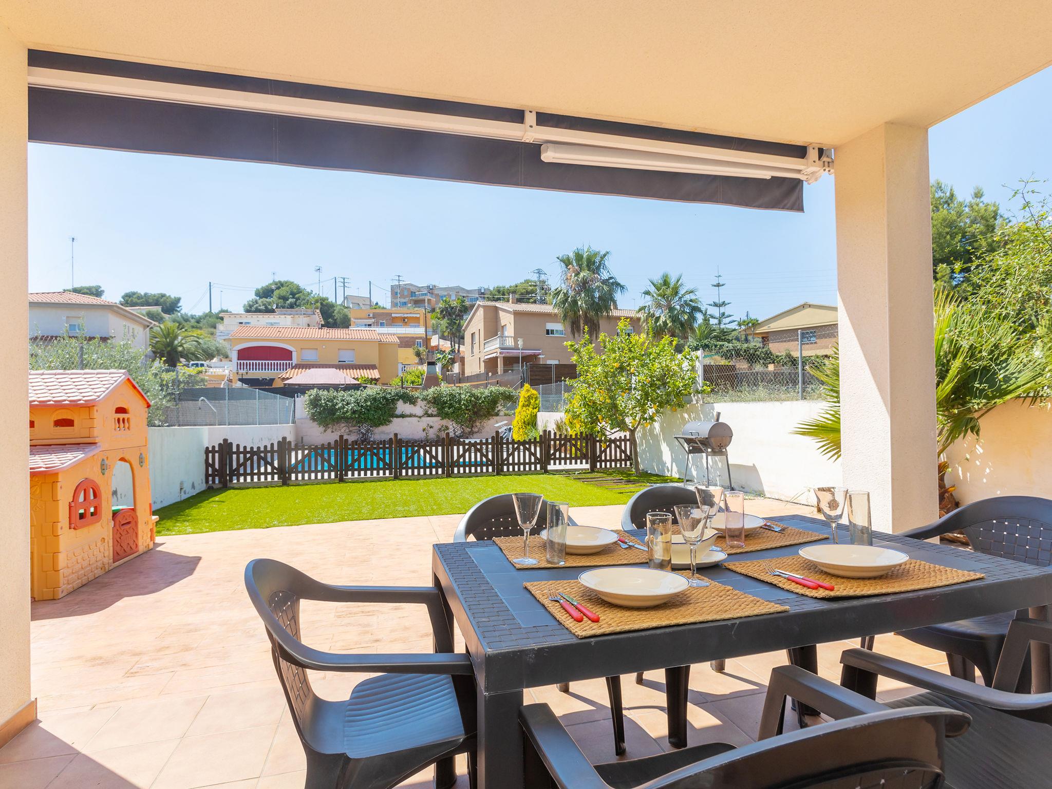Beautiful, comfortable single-family house, 2 storeys. In a quiet, sunny position residential area (villas), 2.2 km from the sea, 2.2 km from the beach. Private: garden (fenced) with lawn, swimming pool angular, fenced (8 x 4 m, depth 120 - 170 cm, seasonal availability: 01.Jun. - 01.Oct.). Patio, pergola, barbecue, single garage, public parking on the road. Supermarket 2 km, restaurant 550 m, bar, café, bus stop 1.9 km, railway station "Segur de Calafell" 2.1 km. Sports harbour 2.5 km. Nearby attractions: Barcelona 61 km, Sitges 22 km, Tarragona 40 km, Port Aventura 53 km. The owner does not accept any youth groups. Neighbourhood highly sensitive to noise. Quietness and good behaviour expected.