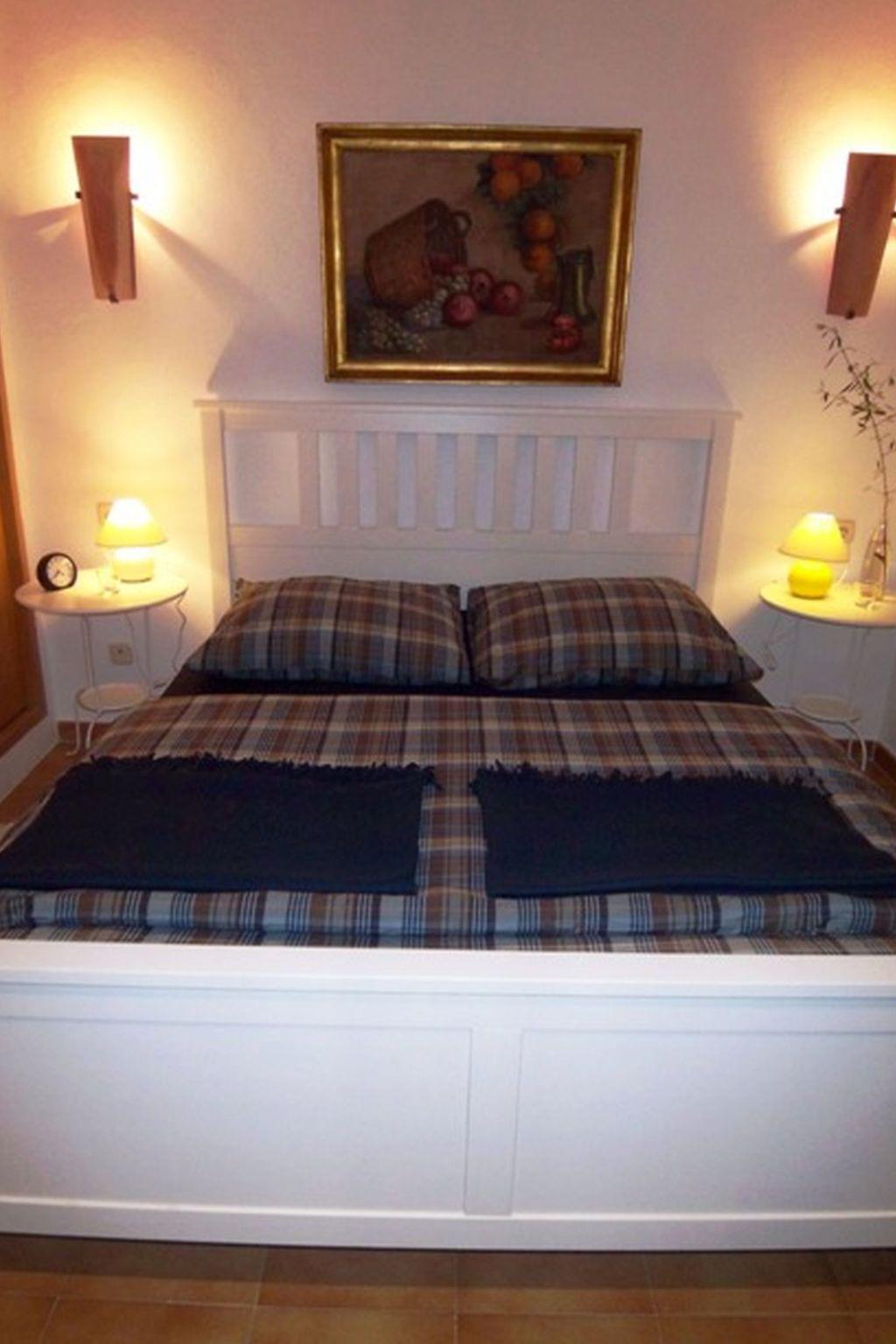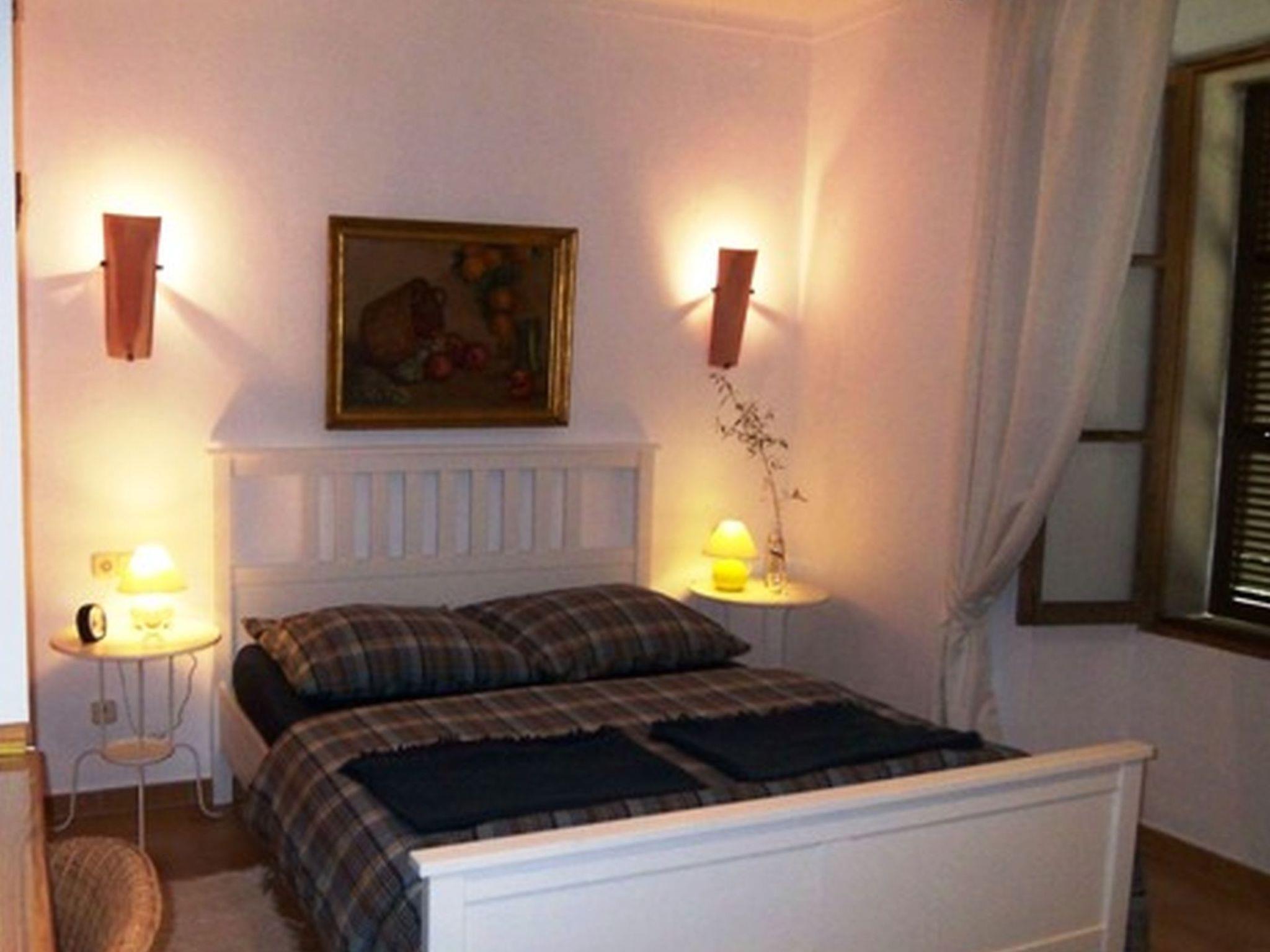 Double bed 160 cm, built-in wardrobe, small 2-seater sofa Bathroom with bathtub, WC, bidet, air conditioning, heating Sat-TV, Internet-WLAN Coffee machine, kettle, fridge The fully equipped main kitchen of the house is available for use by this and another flat.