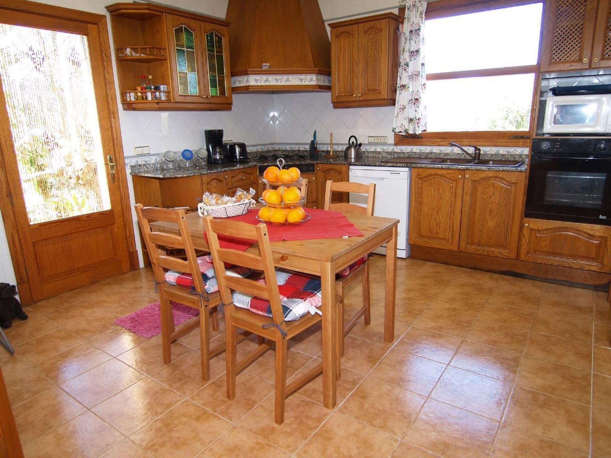 Inside, the house has the necessary facilities to ensure a comfortable stay. Guests can benefit from air conditioning available in some rooms, essential for Mallorca's warmer days. For leisure time at home, the layout includes three additional fans that ensure a cool and pleasant atmosphere throughout the house. The gas cooker, along with a handy dishwasher and coffee machine, make meal preparation a real pleasure, while the dedicated washing machine adds another layer of convenience to your stay. On cooler evenings, the available fireplace provides a warm retreat, creating a cosy atmosphere to relax and enjoy.