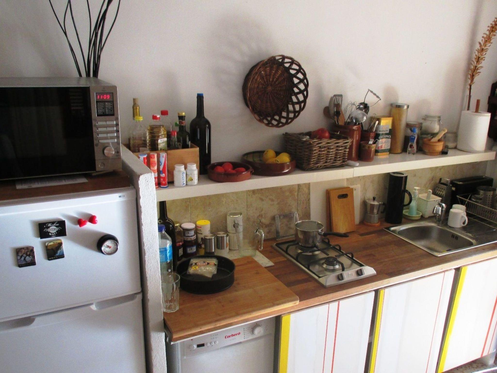 The flat is presented on one level with a spacious living room equipped with a sofa bed, satellite TV and an open-plan kitchen with a 2-burner gas hob, fridge-freezer, microwave and dishwasher. A separate bedroom offers a separable double bed for restful nights. Additional comfort is provided by the bathroom with bathtub, WC, bidet, an integrated built-in wardrobe and air conditioning, which ensures pleasant temperatures in both main rooms.