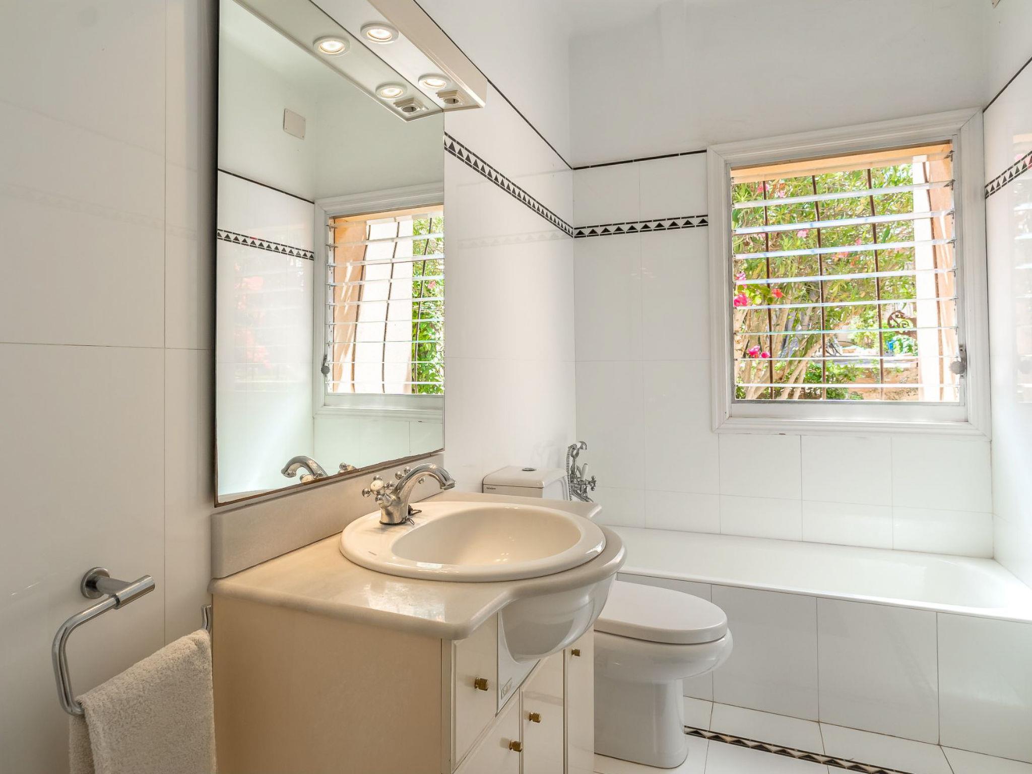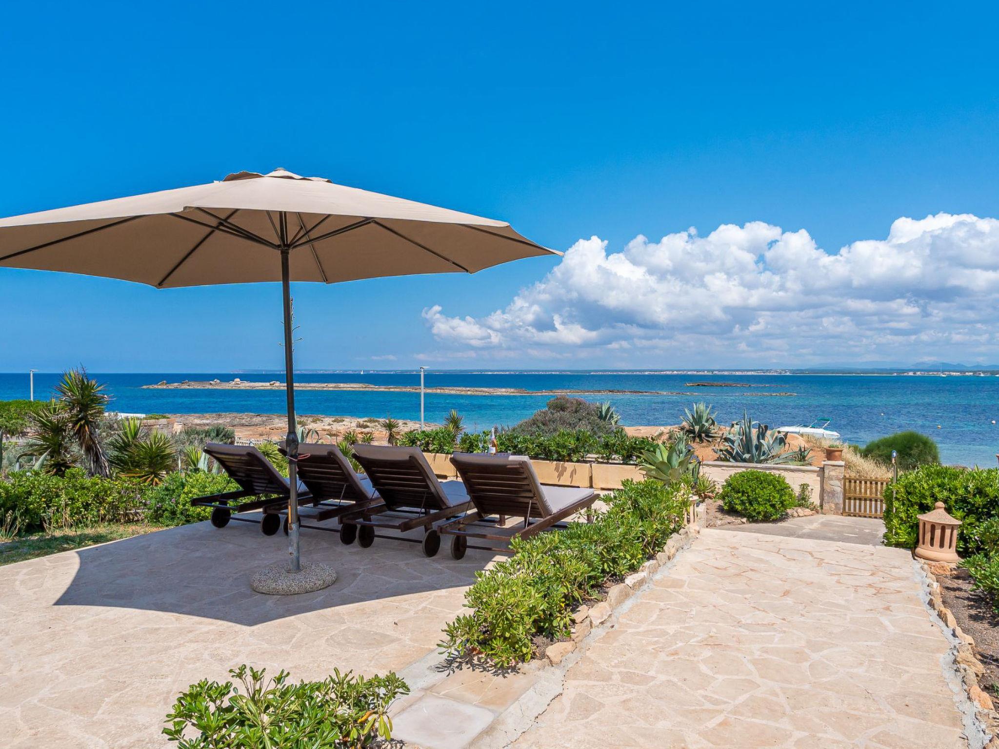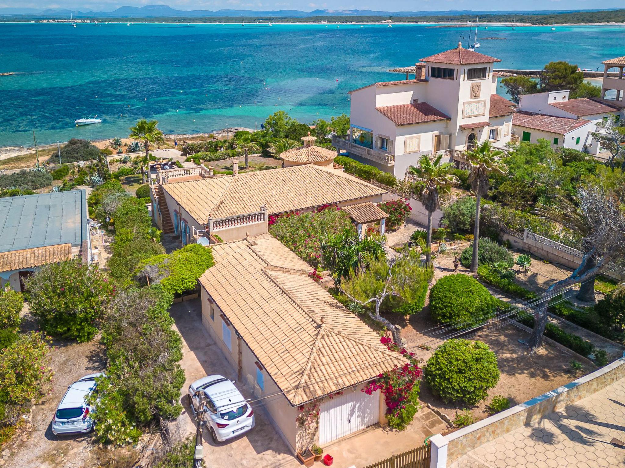 Colonia Sant Jordi 5 km from Ses Salines: Very large, very comfortable single-family house "Las Gaviotas Style & Charm". In the resort 200 m from the centre of Colònia Sant Jordi, in a quiet, sunny position, 800 m from the edge of the forest, 10 m from the sea, 50 m from the beach, direct access to the beach, south facing position. Private: large terraced garden wildlife garden. Outdoor shower, parking (for 2 cars). Shop 400 m, grocery 300 m, supermarket 500 m, restaurant 250 m, bar 200 m, bakery 500 m, café 200 m, pedestrian zone 100 m, bicycle rental 300 m, bus stop "Ses Salines" 6 km, railway station "Manacor" 37 km, sandy beach "Platja Estanys" 180 m, rocky beach "Es Coto" 20 m, diving center 700 m. Sports harbour 1 km, marina 26 km, golf course (18 hole) 35 km, surf school, sailing school 400 m, tennis 1 km, walking paths from the house 1 km, cycle lane 1 km. Nearby attractions: Playa de ES TRENC 1.5 km, Platja Es Carbo 6 km, Calo d'es Moro 15 km, Sant Salvador 28 km. Hiking paths: Parque Cala Mondragó 17 km. The owner does not accept any groups. The owner does not accept any youth groups. Please note: part of the house is closed and unoccupied. Motorway 24 km from the property. Airfield 40 km from the property.