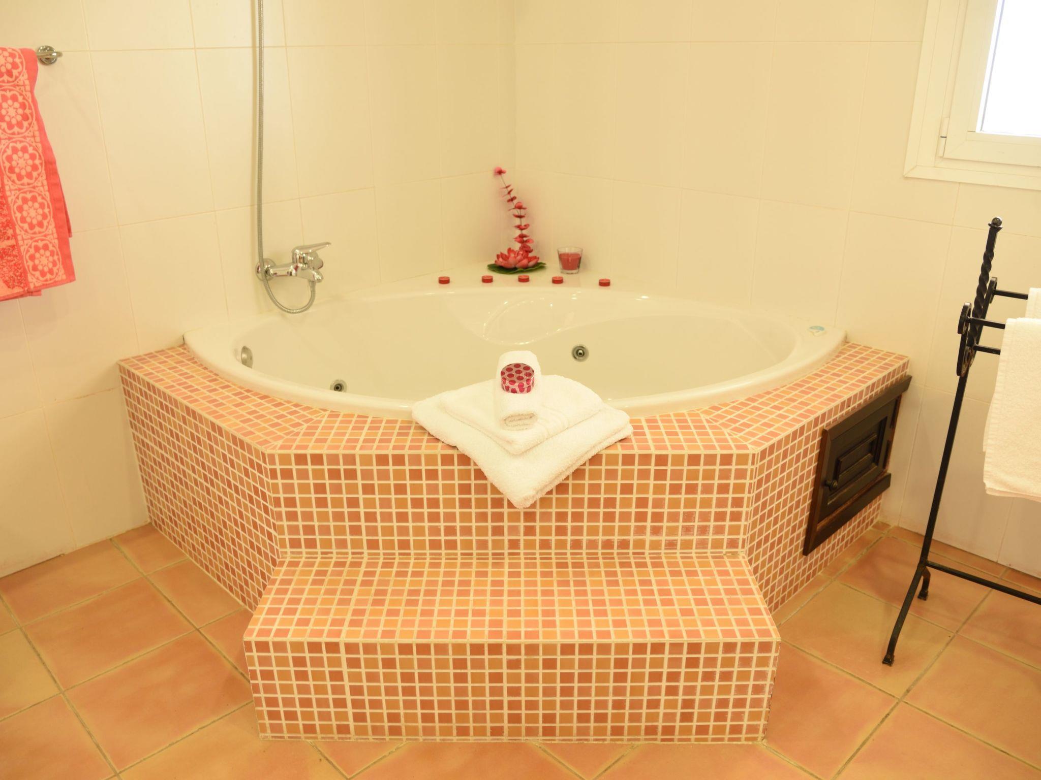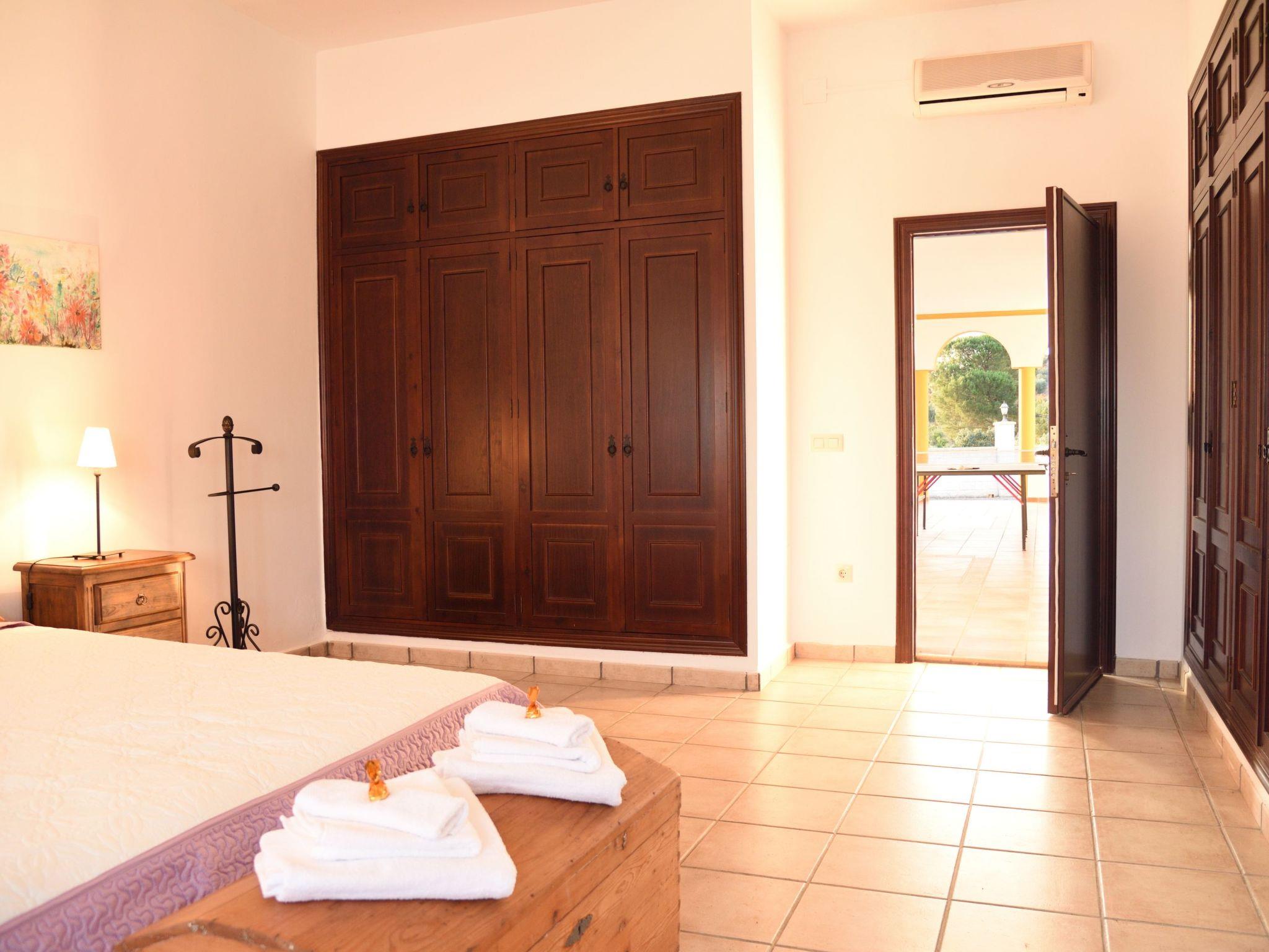 Inside, the chalet boasts spacious living quarters designed for comfort and relaxation. Five large bedrooms, each equipped with a double and a single bed, built-in wardrobes, and air conditioning, ensure a restful night's sleep for up to 14 guests. Two of these rooms offer the luxury of direct access to their own covered terraces. Additional sleeping arrangements are provided by an extra room with two single beds. The living space includes two well-appointed bathrooms, one featuring a whirlobath for ultimate relaxation. The heart of the home is the expansive 100 m² living room, graced with archways and a cozy fireplace, adjacent to a large American-style kitchen, fully equipped to cater to your culinary desires.