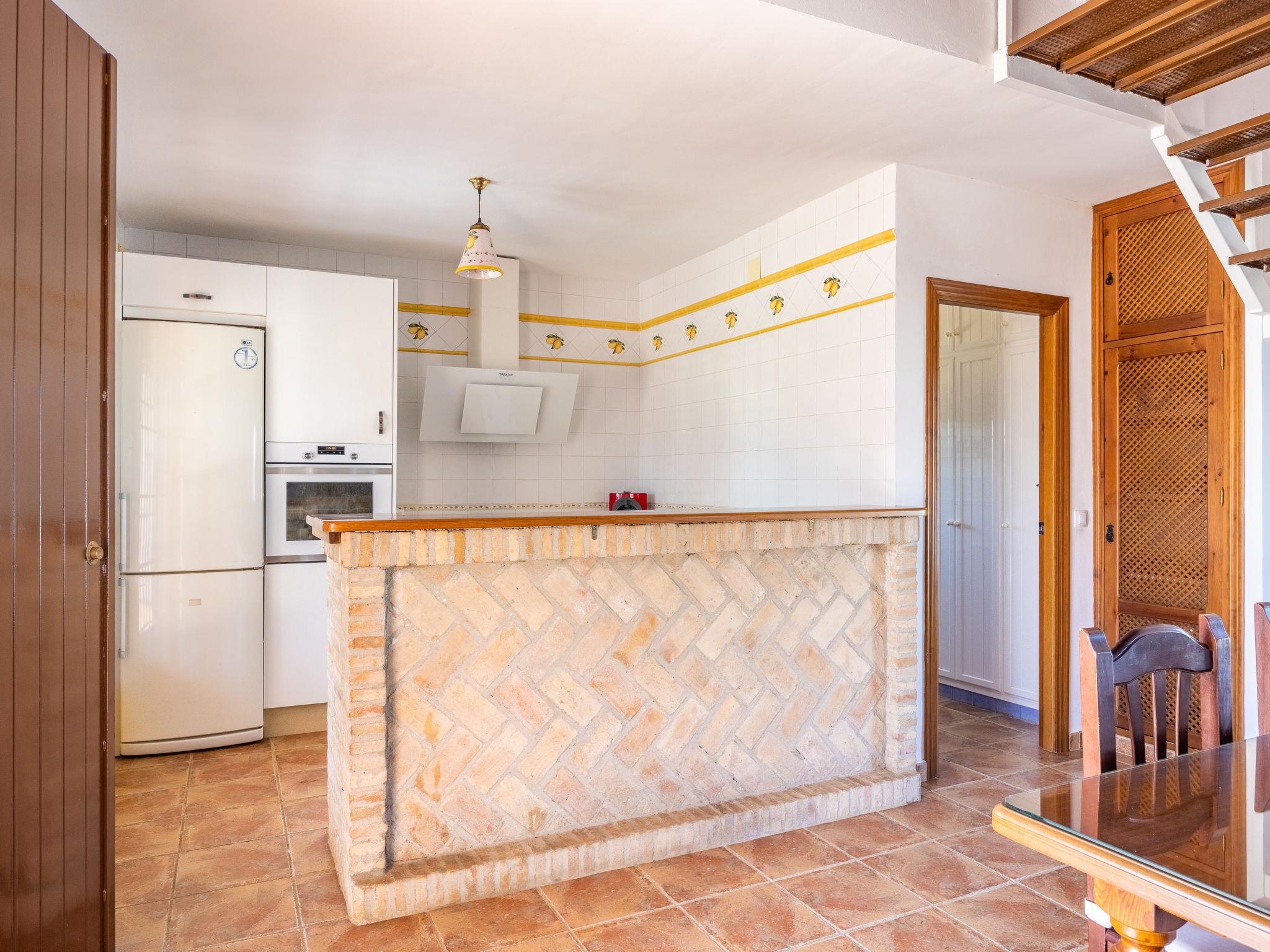 "Rocio", 4-room house 120 m2. Practical and comfortable furnishings: living/dining room with digital TV, flat screen, air conditioning and forced-air heating. Exit to the terrace, to the swimming pool. 1 room with 1 french bed (135 cm, length 190 cm). Open kitchen (oven, 4 ceramic glass hob hotplates, toaster, microwave, freezer, electric coffee machine). Bath/WC. Upper floor: 1 room with 1 french bed (135 cm, length 190 cm), air conditioning and forced-air heating. 1 room with 2 beds (90 cm, length 190 cm), air conditioning and forced-air heating. Large terrace 40 m2, porch. Terrace furniture. View of the resort. Facilities: washing machine, dryer, iron, children's high chair, baby cot for up to 2 year olds, hair dryer. Internet (WiFi, free). Parking (4 cars) at the house. Suitable for families. Maximum 1 pet/ dog allowed. VTAR/SE/00586 // Reg. Nr.: ESFCTU000041010000322955000000000000000VTAR/SE/005862
