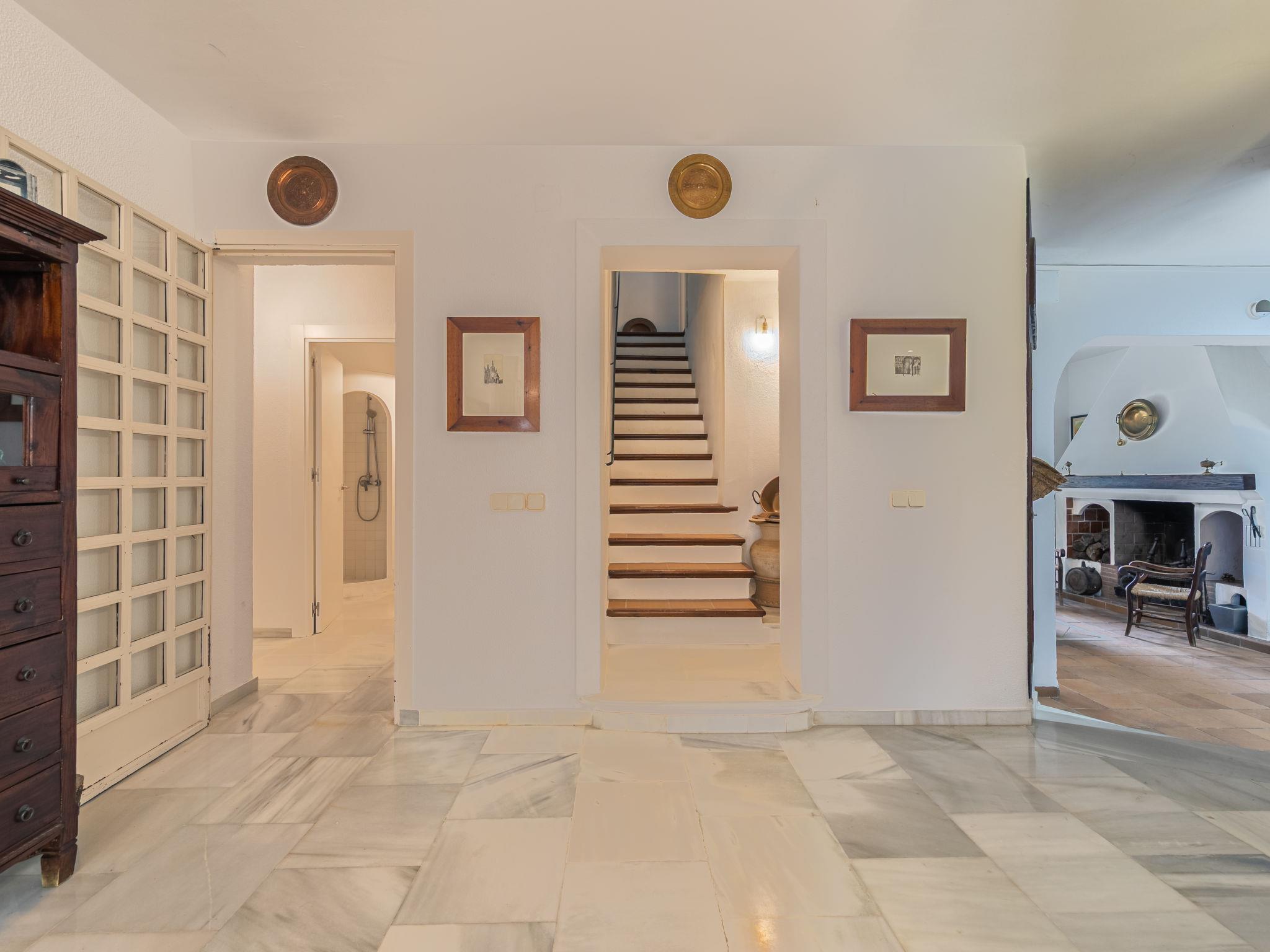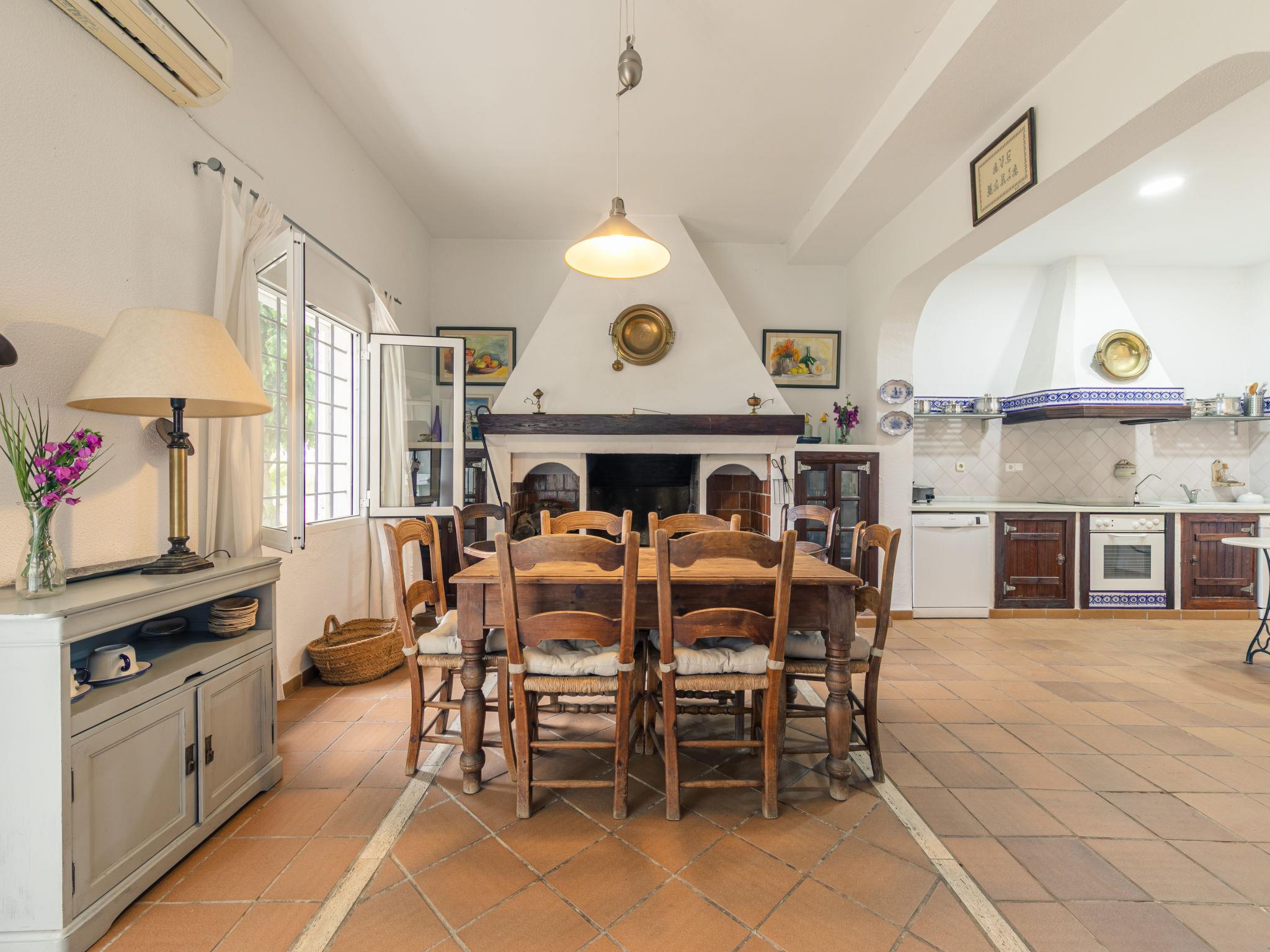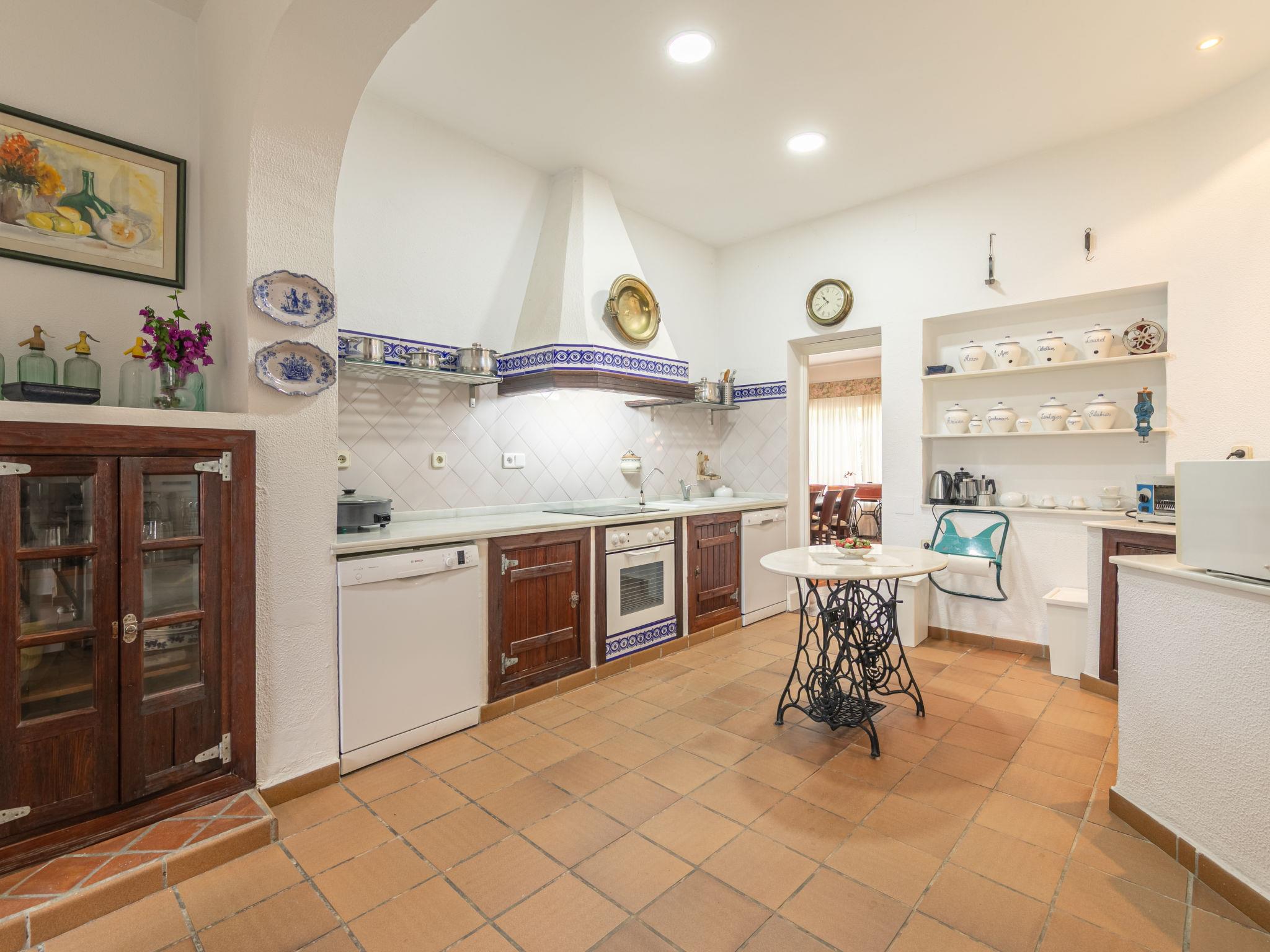 "Las Codornices", 7-room villa 325 m2 on 3 levels. Practical and comfortable furnishings: large living/dining room with open-hearth fireplace, digital TV, flat screen, radio, CD-player and DVD. 2 rooms, each room with 1 french bed (150 cm, length 190 cm), bath/WC. 2 rooms, each room with 2 beds (90 cm, length 190 cm). 1 room with 1 bed (90 cm, length 190 cm). Large kitchen (oven, dishwasher, 4 ceramic glass hob hotplates, toaster, kettle, microwave, freezer, electric coffee machine). Shower/WC. Upper floor: 1 room with 1 french bed (150 cm, length 190 cm). 1 room with 2 beds (90 cm, length 190 cm), 1 x 2 bunk beds (90 cm, length 190 cm). Bath/WC. 2nd upper floor: Bay window. Garden. Barbecue, deck chairs. Facilities: washing machine, iron, children's high chair, baby cot for up to 2 year olds, hair dryer. Internet (WiFi, free). Please note: suitable for families. Non-smoking house. Maximum 1 pet/ dog allowed. VTAR/SE/00682 // Reg. Nr.: ESFCTU000041010000113928000000000000000VTAR/SE/006829