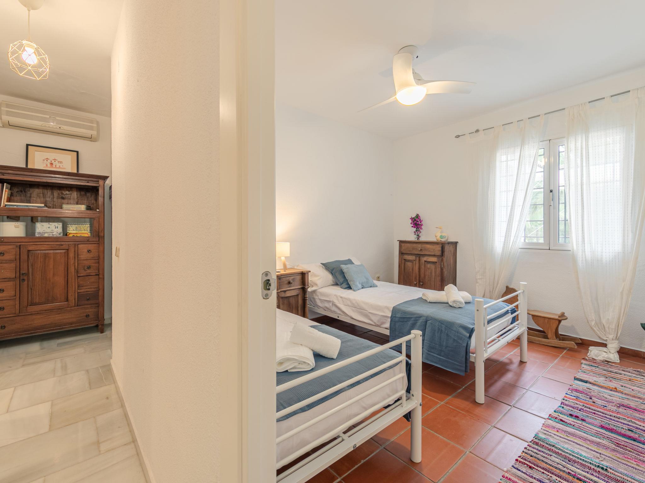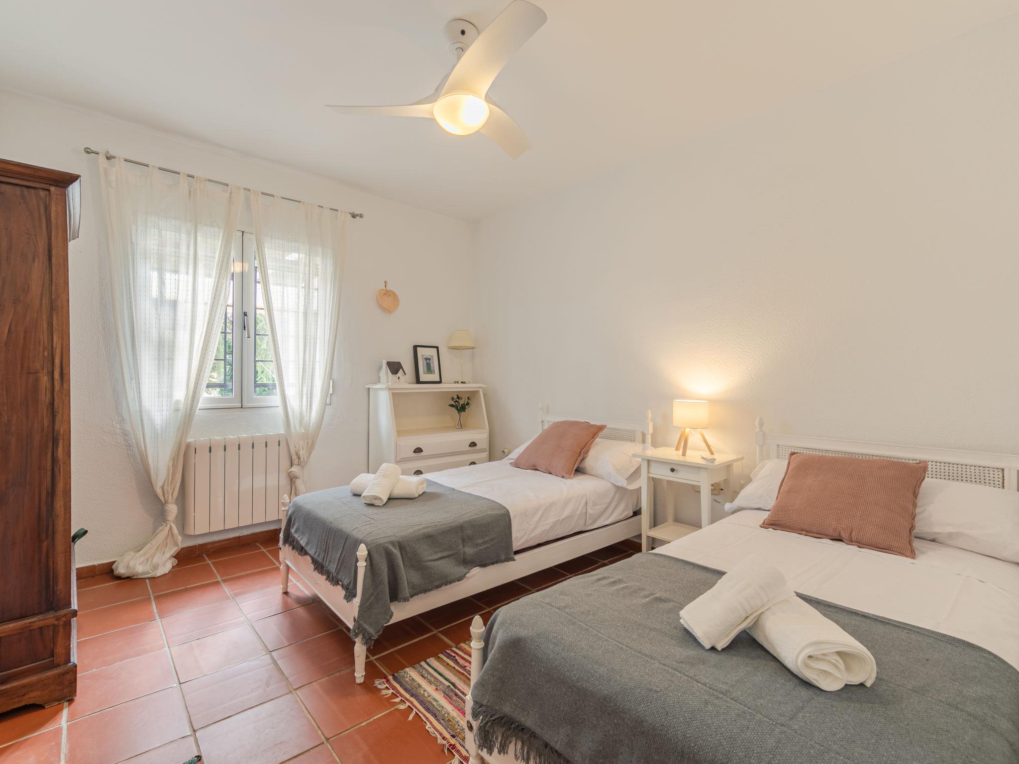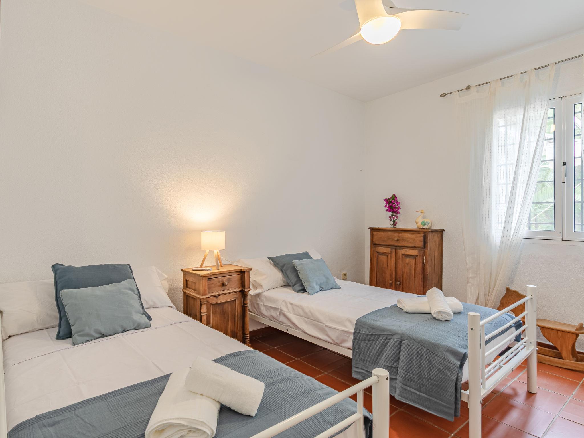 "Las Codornices", 7-room villa 325 m2 on 3 levels. Practical and comfortable furnishings: large living/dining room with open-hearth fireplace, digital TV, flat screen, radio, CD-player and DVD. 2 rooms, each room with 1 french bed (150 cm, length 190 cm), bath/WC. 2 rooms, each room with 2 beds (90 cm, length 190 cm). 1 room with 1 bed (90 cm, length 190 cm). Large kitchen (oven, dishwasher, 4 ceramic glass hob hotplates, toaster, kettle, microwave, freezer, electric coffee machine). Shower/WC. Upper floor: 1 room with 1 french bed (150 cm, length 190 cm). 1 room with 2 beds (90 cm, length 190 cm), 1 x 2 bunk beds (90 cm, length 190 cm). Bath/WC. 2nd upper floor: Bay window. Garden. Barbecue, deck chairs. Facilities: washing machine, iron, children's high chair, baby cot for up to 2 year olds, hair dryer. Internet (WiFi, free). Please note: suitable for families. Non-smoking house. Maximum 1 pet/ dog allowed. VTAR/SE/00682 // Reg. Nr.: ESFCTU000041010000113928000000000000000VTAR/SE/006829