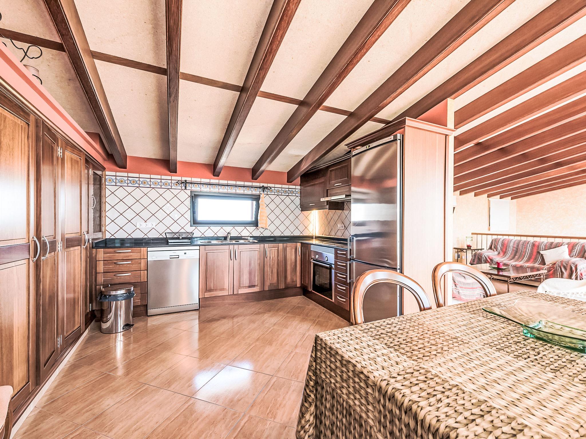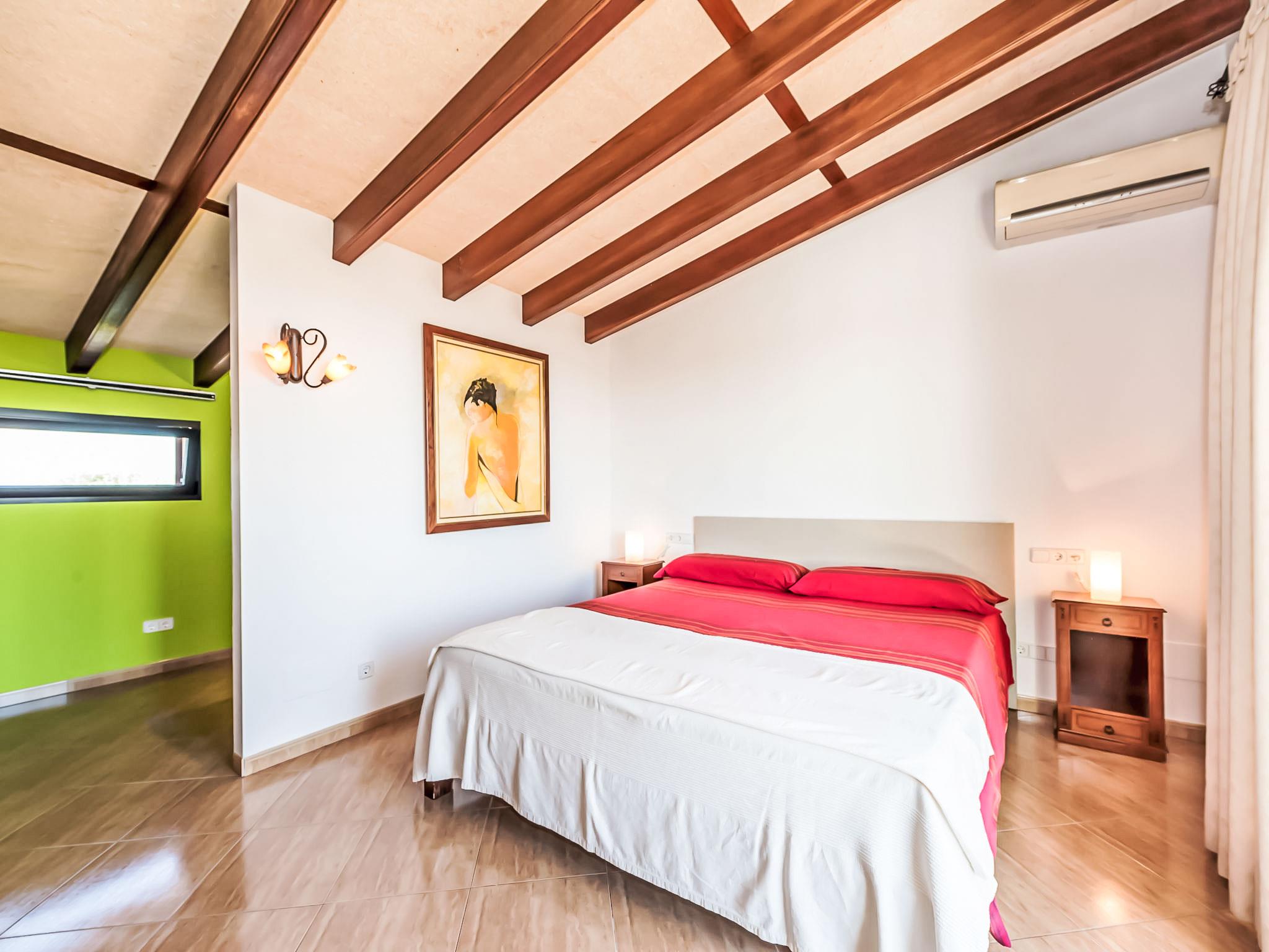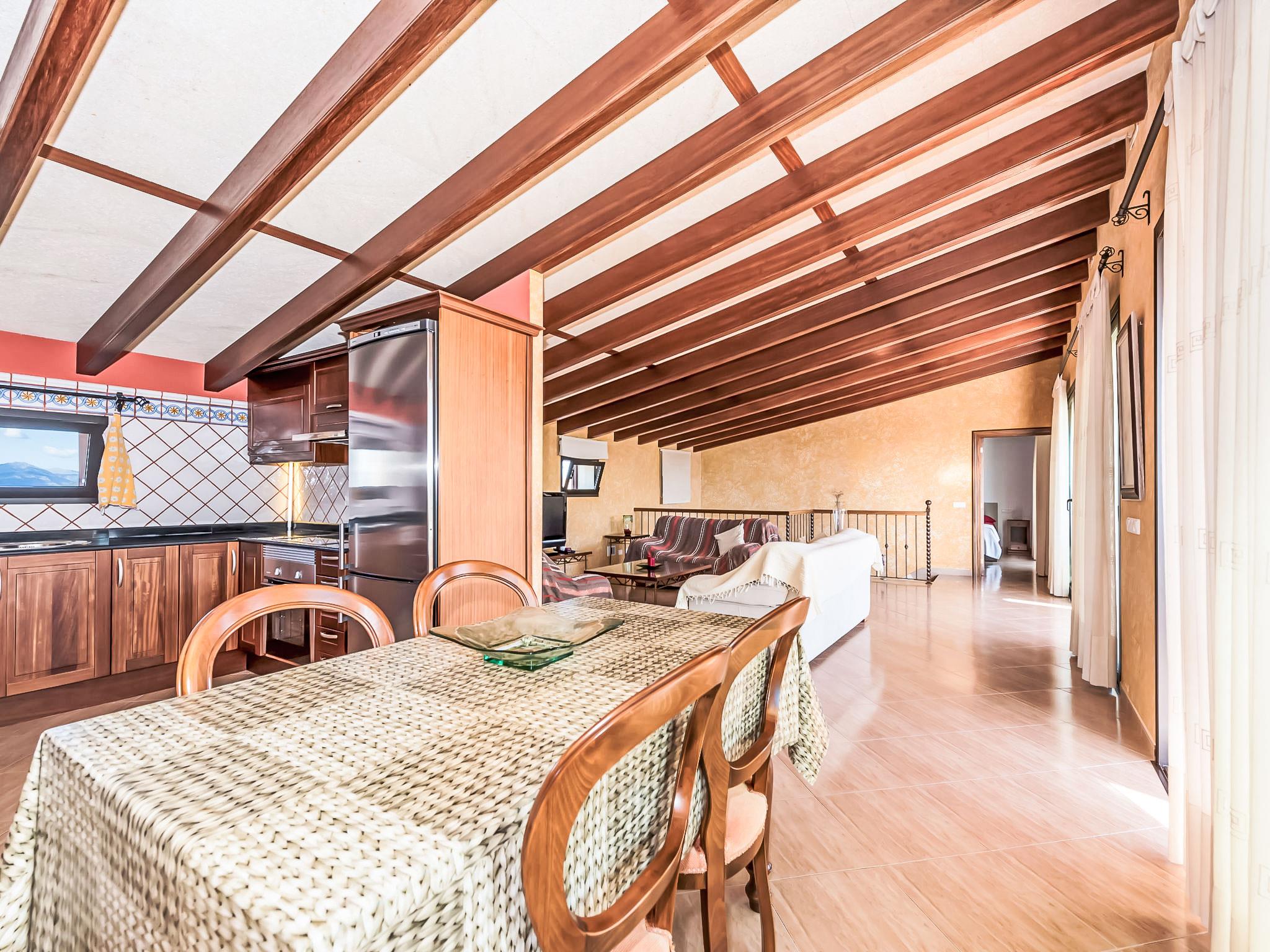"Ses Vistes", 4-room house 170 m2 on 2 levels. Object suitable for 5 adults. Spacious and bright, very comfortable and beautiful furnishings: 1 large double bedroom with panoramic window with 2 beds (90 cm, length 200 cm). 1 room with panoramic window with 1 bed (90 cm, length 200 cm). Bath/bidet/WC. Upper floor: open living/dining room with panoramic window with dining table, satellite TV, digital TV, flat screen, air conditioning and forced-air heating. Exit to the terrace. 1 large double bedroom with panoramic window with 1 french bed (180 cm, length 200 cm), bath/shower/WC, air conditioning and forced-air heating. Exit to the terrace. Open kitchen (oven, dishwasher, 4 ceramic glass hob hotplates, microwave, freezer, grill, electric coffee machine) with air conditioning and forced-air heating. Exit to the terrace. Large terrace 47 m2. Terrace furniture, balcony furniture, barbecue (portable), deck chairs, covered balcony. Marvellous panoramic view of the mountains, the countryside and the resort. Facilities: washing machine, iron, hair dryer. Internet (WiFi, free). Garage. Not suitable for small children. ETV12590 // Reg. Nr.: ESFCTU0000070110004190850000000000000000000ETV/125909