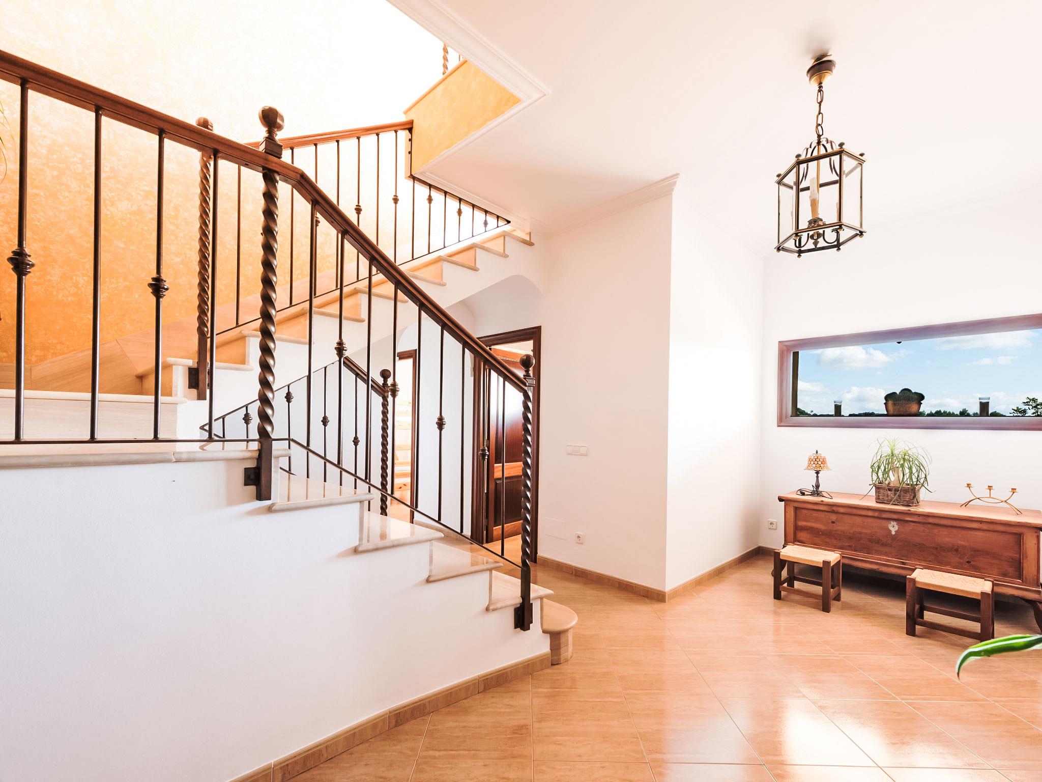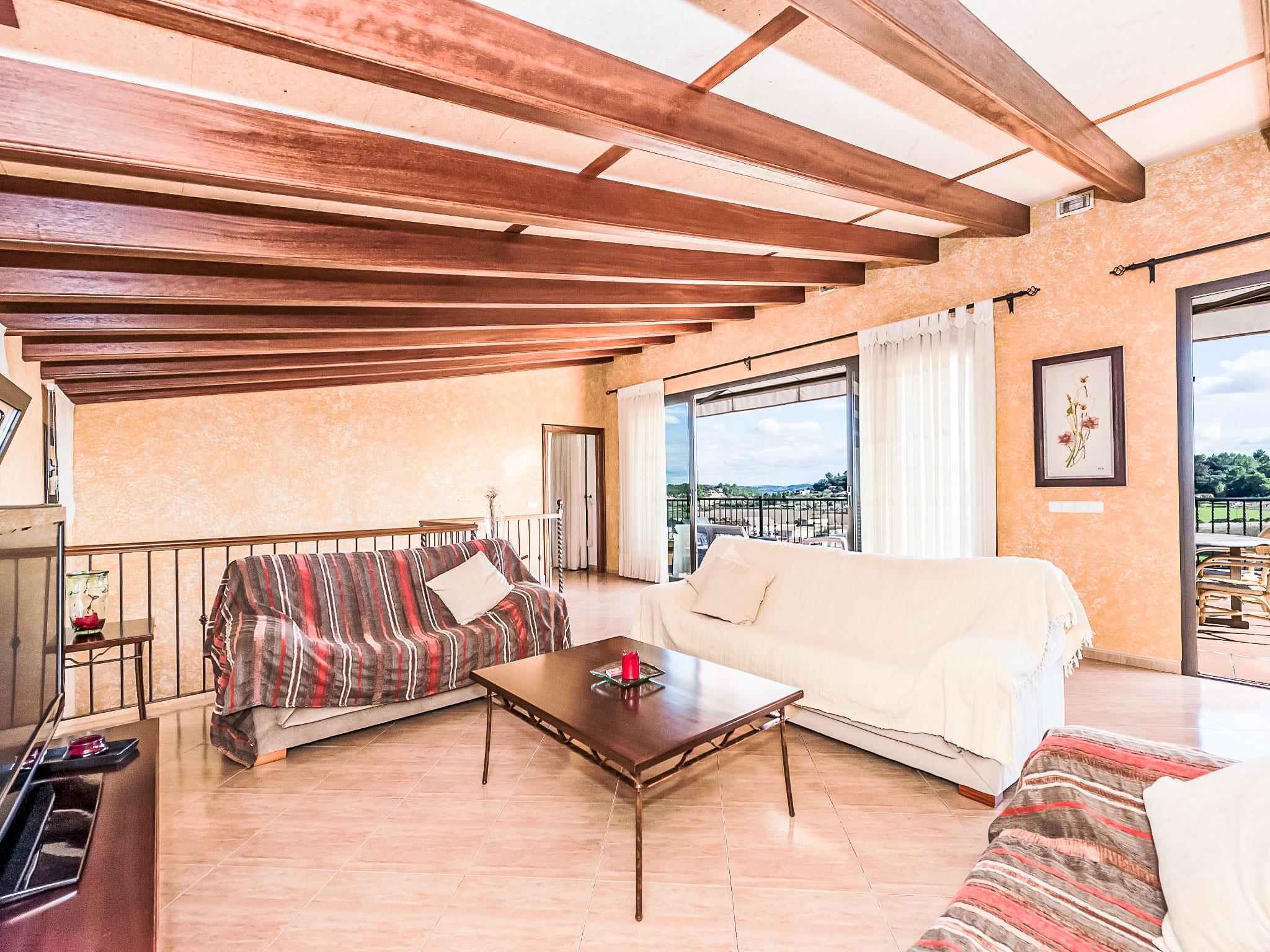 Sineu: Large, beautiful house "Ses Vistes", 2 storeys, renovated. In the resort 400 m from the centre of Sineu, in a quiet, sunny position, 2.5 km from the edge of the forest, 24 km from the sea, 24 km from the beach. Private: pergola (47 m2), terrace (47 m2), garden furniture, barbecue. In the house: internet access, WiFi, storage room for bicycles, air conditioning, washing machine. Single garage at the house. Grocery, supermarket 500 m, restaurant, bar 400 m, bakery 380 m, pedestrian zone 400 m, 4 minute walk to the centre, bus stop 400 m, railway station 900 m, sandy beach 24 km, rocky beach 25 km, outdoor swimming pool 900 m. Sports harbour 25 km, golf course (18 hole) 15 km, tennis 900 m, riding stable 14 km, sports centre 900 m. Please note: no lift. Suitable for seniors, not suitable for small children. Object suitable for 5 adults. The owner does not accept any youth groups. Loading and unloading of baggage is possible at the holiday house. Airfield 35 km from the property. Neighbourhood highly sensitive to noise. Quietness and good behaviour expected.