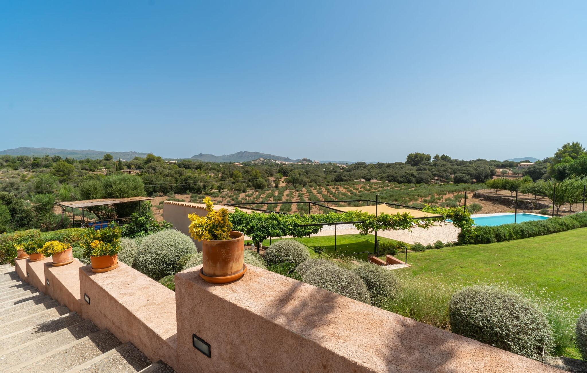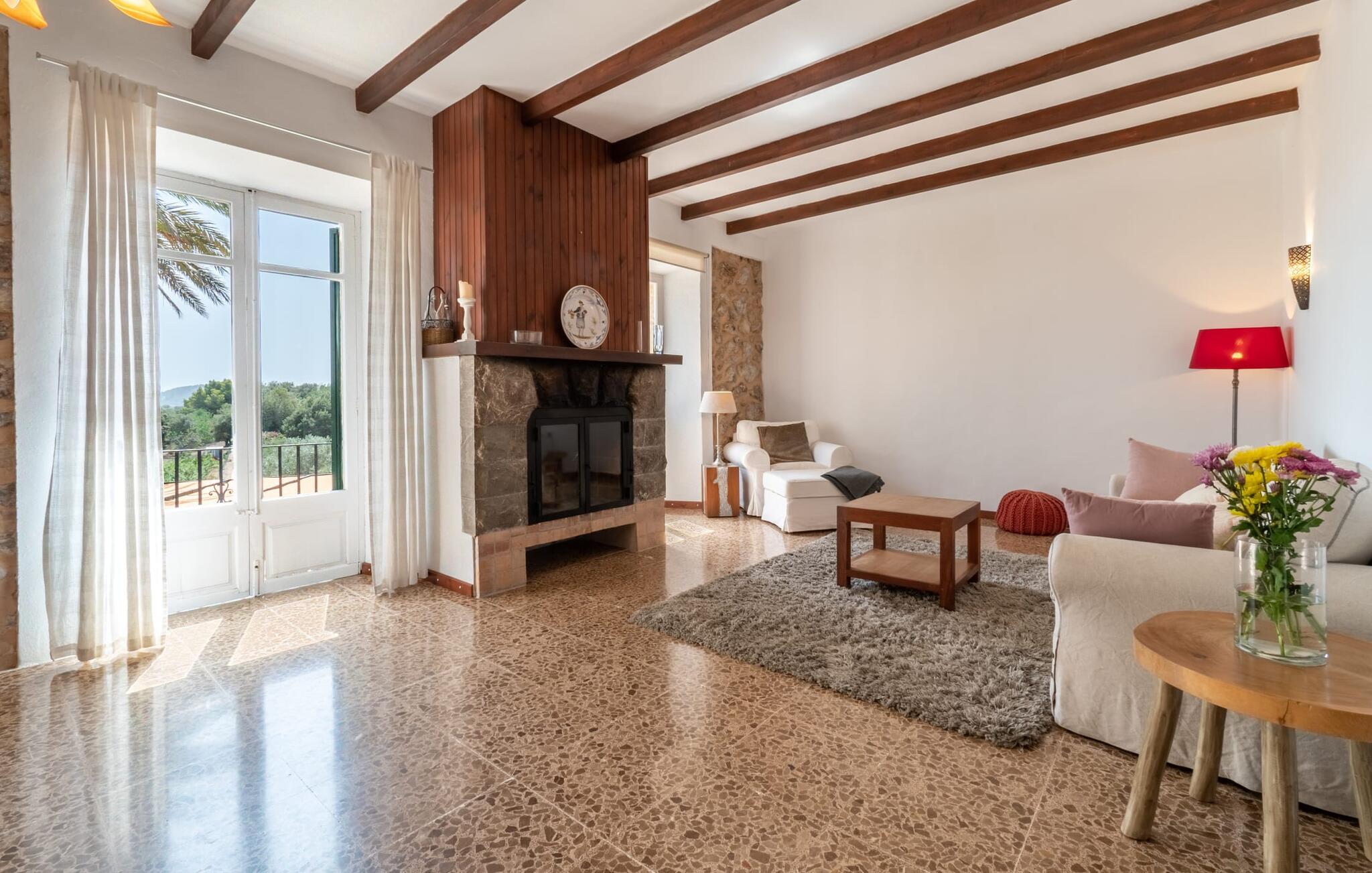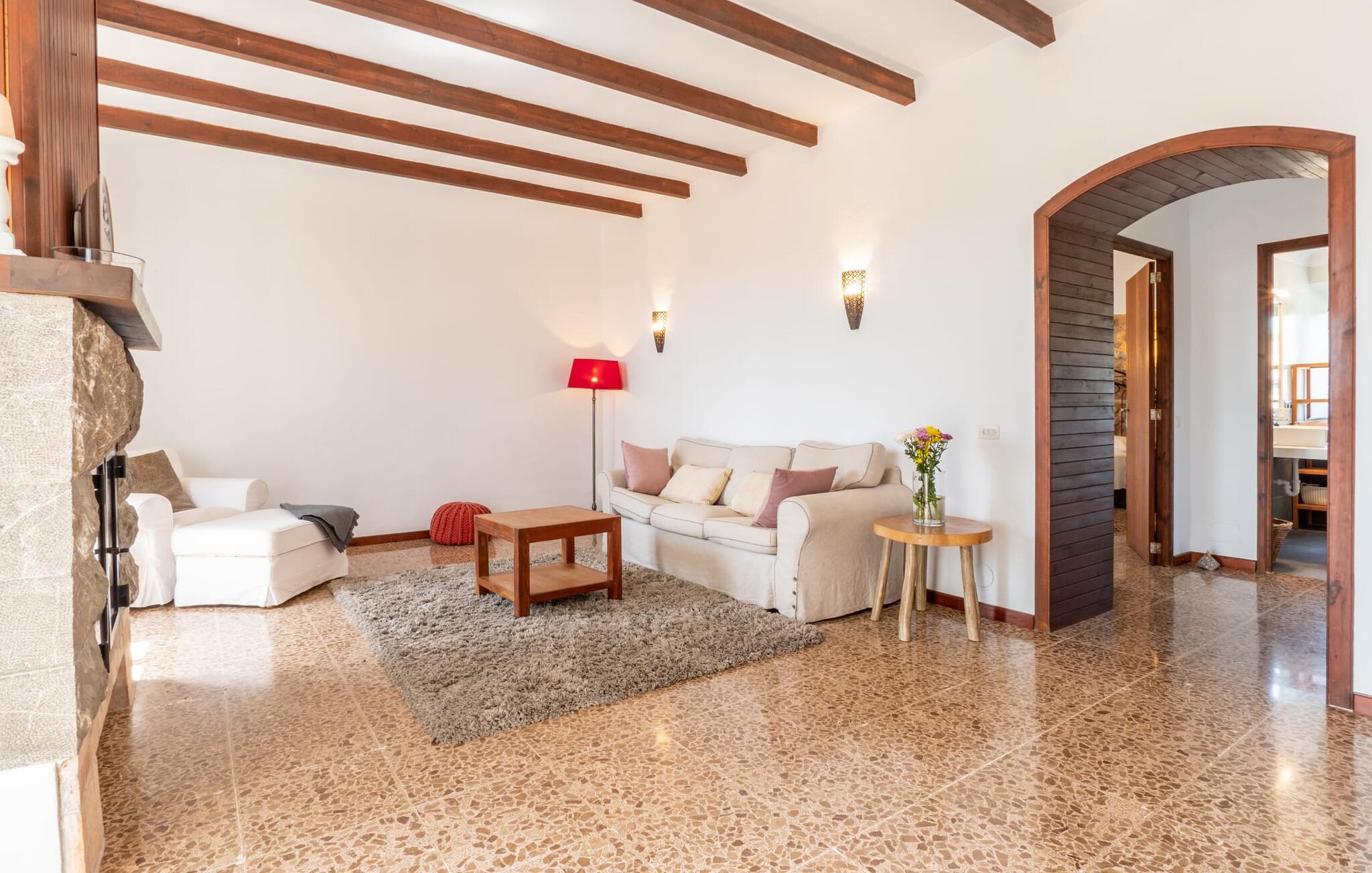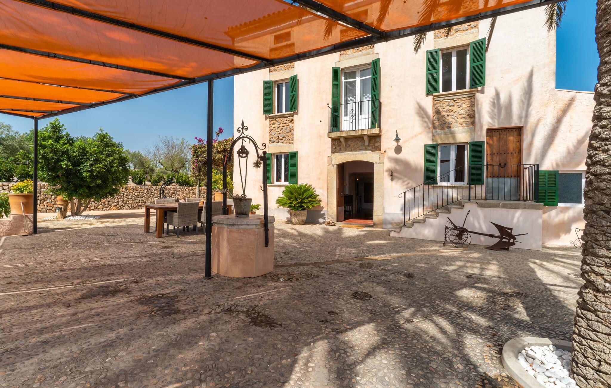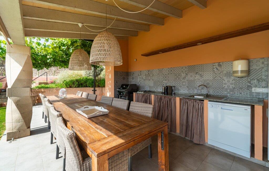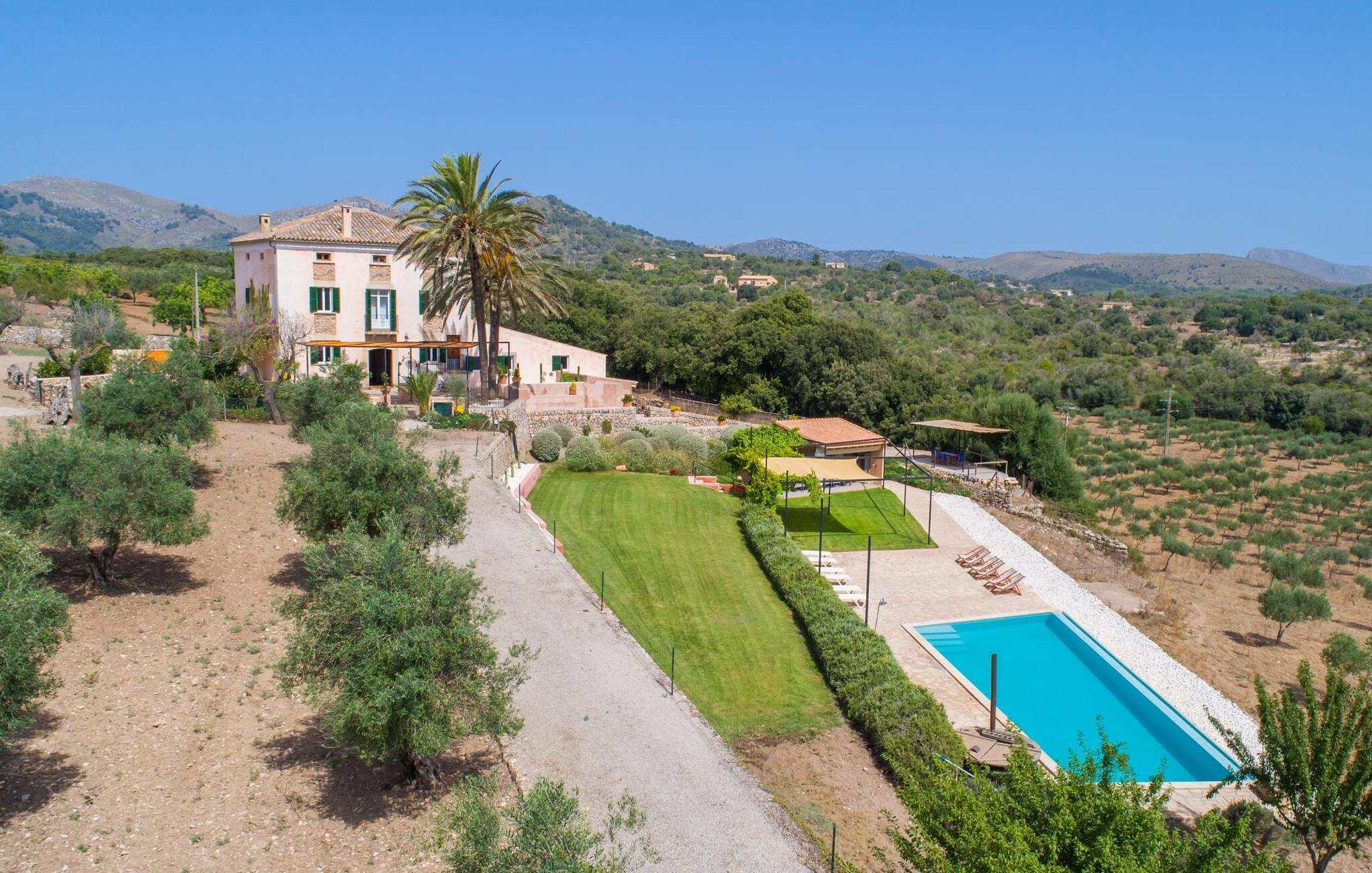 Zum Wohnen erwartet Sie ein wunderschön renoviertes Landhaus mit einer großzügig gestalteten Wohnfläche von 500 m². Das traditionelle Haus kann ganzjährig gemietet werden, was auch in den milden Herbst- und Wintermonaten preislich äußerst attraktiv ist. Das Haus verfügt nicht nur über zwei Kamine, sondern wird auch durch die Warm-Kalt-Klimaanlage jederzeit auf einer angenehmen Temperatur gehalten. Sie erleben modernsten Komfort und eine gelungene Raumaufteilung mit weitgehend offenem Grundriss. Verpackt ist dies in einer inspirierenden Mischung aus puristisch-klarem Landhausstil zwischen Tradition und Bohème. Sichtbare Bruchstein-, Terrakotta- und industriell anmutende Bodenbeläge, viel Holz und stilvoll zurückhaltende Dekoartikel verstärken die Wirkung. Das ist angenehm reduziert und verwöhnt auch Ästheten. Geschlafen wird auf insgesamt drei Ebenen. Drei Schlafzimmer befinden sich im Erdgeschoss, das vierte im Obergeschoss zusammen mit einem zweiten Lounge-Wohnzimmer; Zwei Dachgeschossstudios mit gemütlicher Hanglage bestätigen die hohe Qualität. Darüber hinaus verfügen alle sechs Schlafzimmer entweder über ein eigenes Badezimmer oder eine direkt zuordenbare begehbare Dusche oder Badewanne. Unser Fazit: „Son Caminals“ ist das Äquivalent der Perfektion in einem mallorquinischen Ferienhaus. Besser geht es nicht! Das prächtige Bauernhaus „Son Caminals“ ist ein renoviertes Anwesen, das auf den sanften Hügeln rund um Artà thront. Von dem hervorragend ausgestatteten Ferienhaus in angenehm ruhiger Lage erreichen Sie sehr schnell das mittelalterliche Dorf, das Einkaufsmöglichkeiten in der Fußgängerzone, auf dem beliebten Dienstagsmarkt sowie gute Restaurants und lokale Cafés bietet. In nur 12 Autominuten erreichen Sie die Bucht von Alcúdia, die 16 km Strände bietet, darunter Son Serra de Marina und Colònia de Sant Pere.
