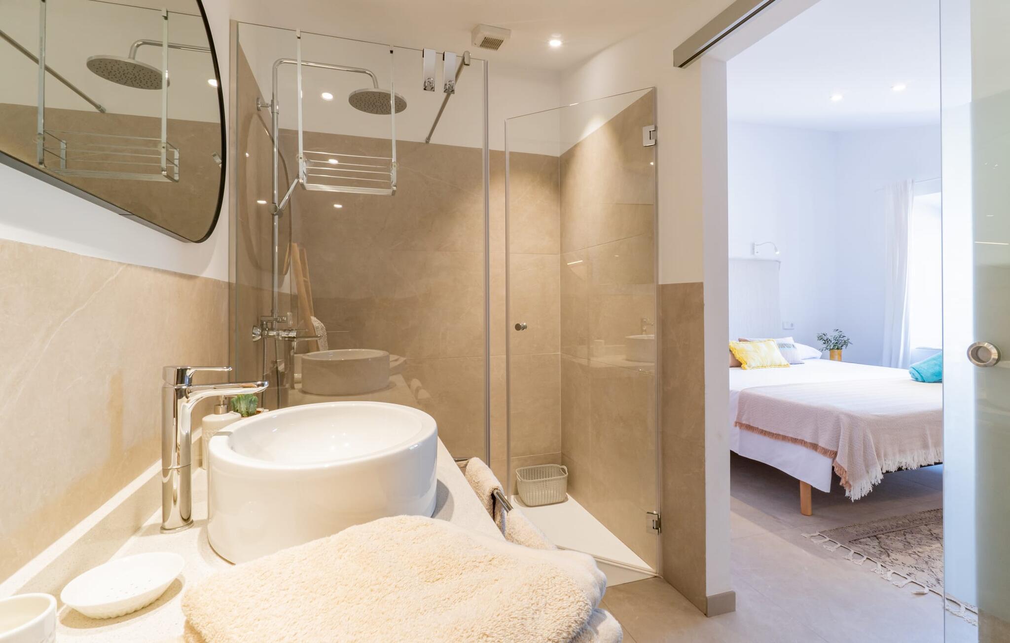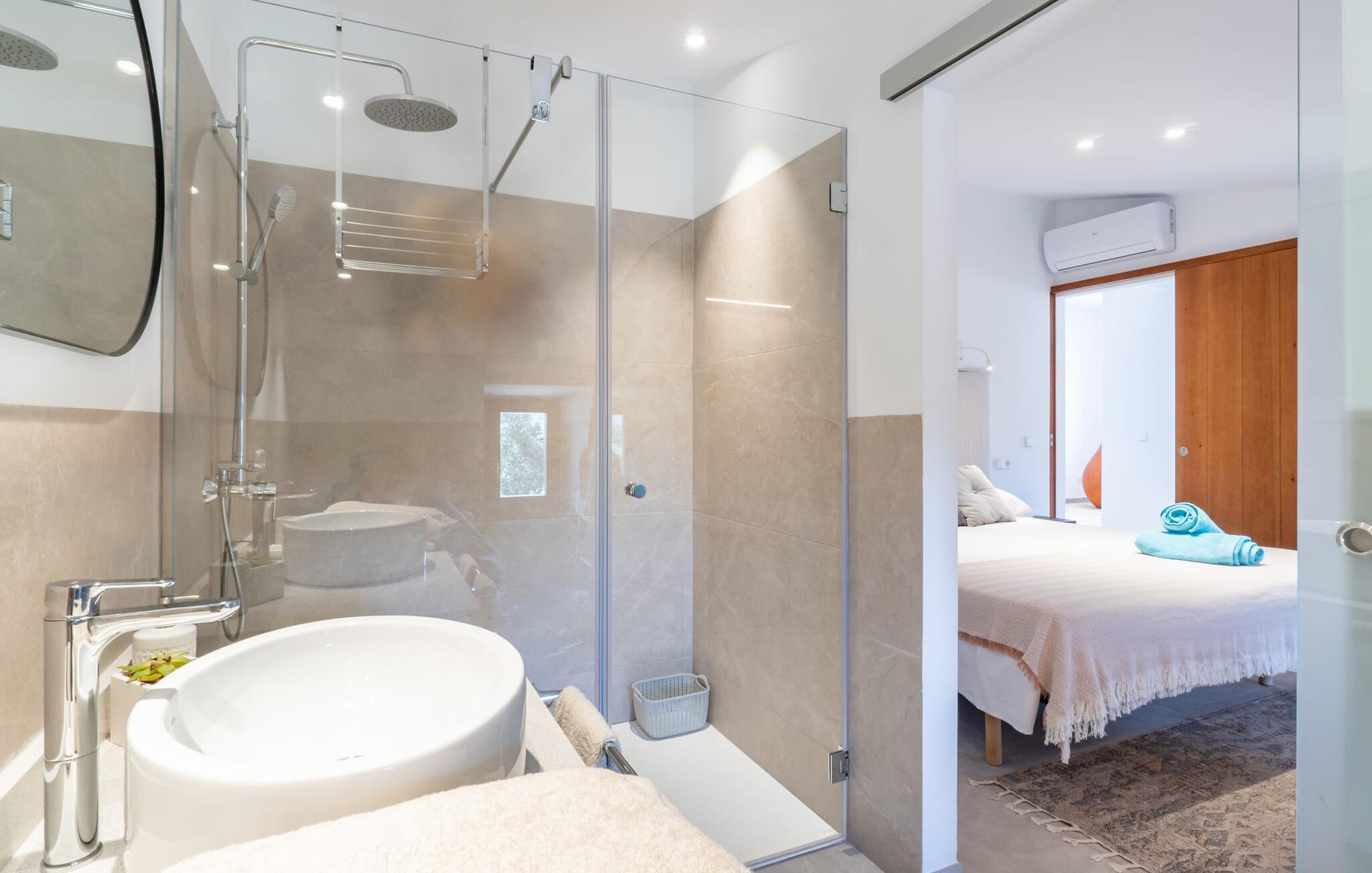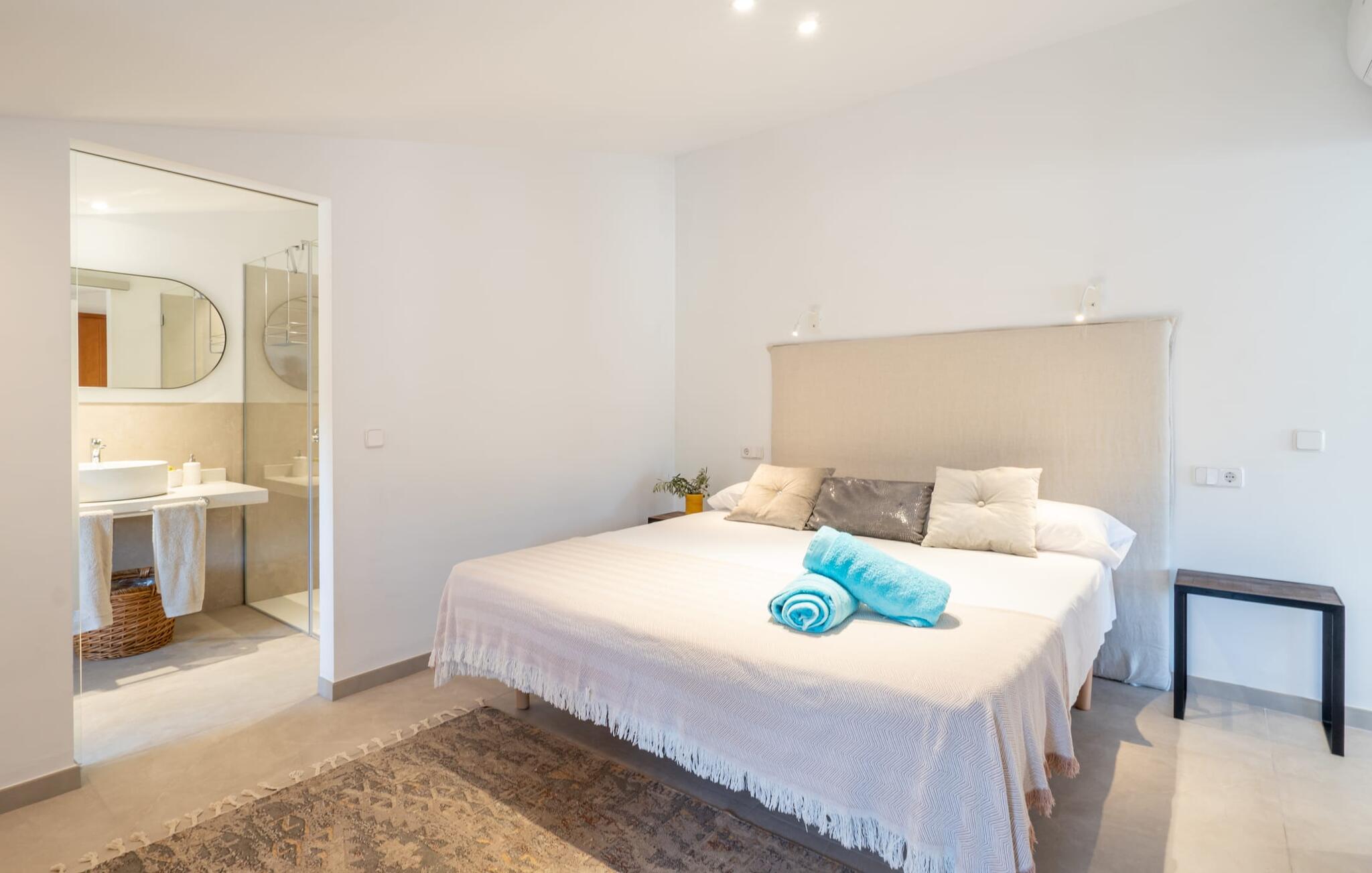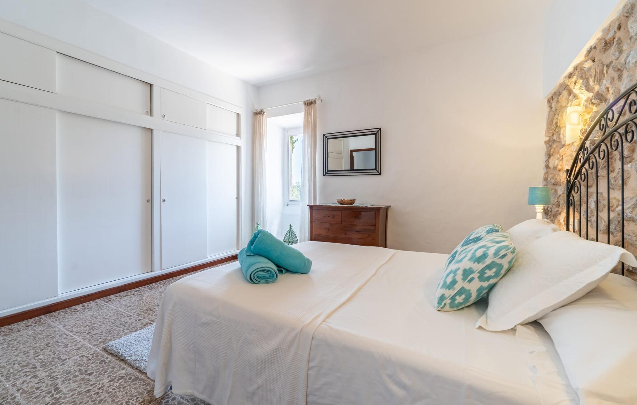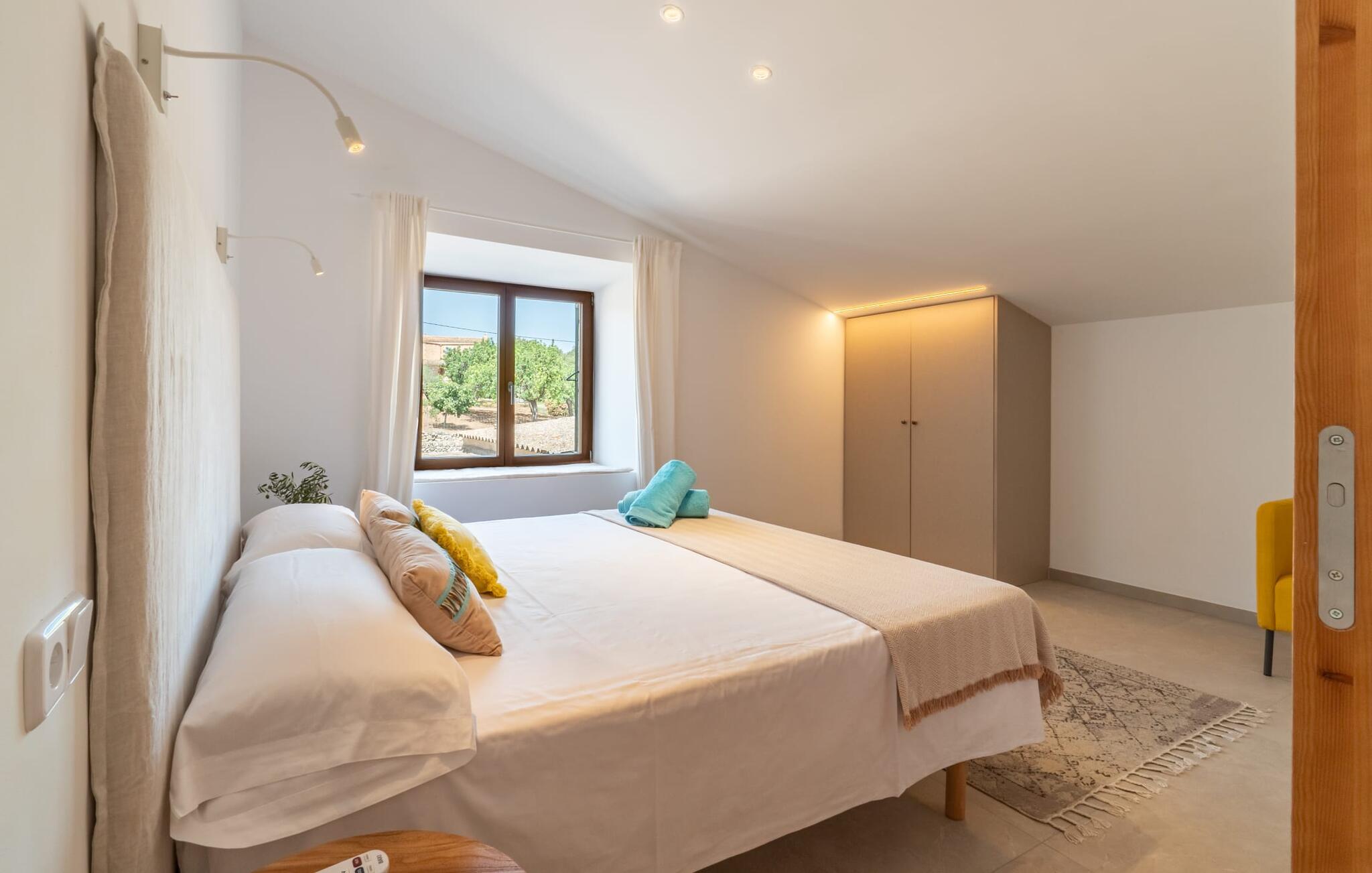 Zum Wohnen erwartet Sie ein wunderschön renoviertes Landhaus mit einer großzügig gestalteten Wohnfläche von 500 m². Das traditionelle Haus kann ganzjährig gemietet werden, was auch in den milden Herbst- und Wintermonaten preislich äußerst attraktiv ist. Das Haus verfügt nicht nur über zwei Kamine, sondern wird auch durch die Warm-Kalt-Klimaanlage jederzeit auf einer angenehmen Temperatur gehalten. Sie erleben modernsten Komfort und eine gelungene Raumaufteilung mit weitgehend offenem Grundriss. Verpackt ist dies in einer inspirierenden Mischung aus puristisch-klarem Landhausstil zwischen Tradition und Bohème. Sichtbare Bruchstein-, Terrakotta- und industriell anmutende Bodenbeläge, viel Holz und stilvoll zurückhaltende Dekoartikel verstärken die Wirkung. Das ist angenehm reduziert und verwöhnt auch Ästheten. Geschlafen wird auf insgesamt drei Ebenen. Drei Schlafzimmer befinden sich im Erdgeschoss, das vierte im Obergeschoss zusammen mit einem zweiten Lounge-Wohnzimmer; Zwei Dachgeschossstudios mit gemütlicher Hanglage bestätigen die hohe Qualität. Darüber hinaus verfügen alle sechs Schlafzimmer entweder über ein eigenes Badezimmer oder eine direkt zuordenbare begehbare Dusche oder Badewanne. Unser Fazit: „Son Caminals“ ist das Äquivalent der Perfektion in einem mallorquinischen Ferienhaus. Besser geht es nicht! Das prächtige Bauernhaus „Son Caminals“ ist ein renoviertes Anwesen, das auf den sanften Hügeln rund um Artà thront. Von dem hervorragend ausgestatteten Ferienhaus in angenehm ruhiger Lage erreichen Sie sehr schnell das mittelalterliche Dorf, das Einkaufsmöglichkeiten in der Fußgängerzone, auf dem beliebten Dienstagsmarkt sowie gute Restaurants und lokale Cafés bietet. In nur 12 Autominuten erreichen Sie die Bucht von Alcúdia, die 16 km Strände bietet, darunter Son Serra de Marina und Colònia de Sant Pere.