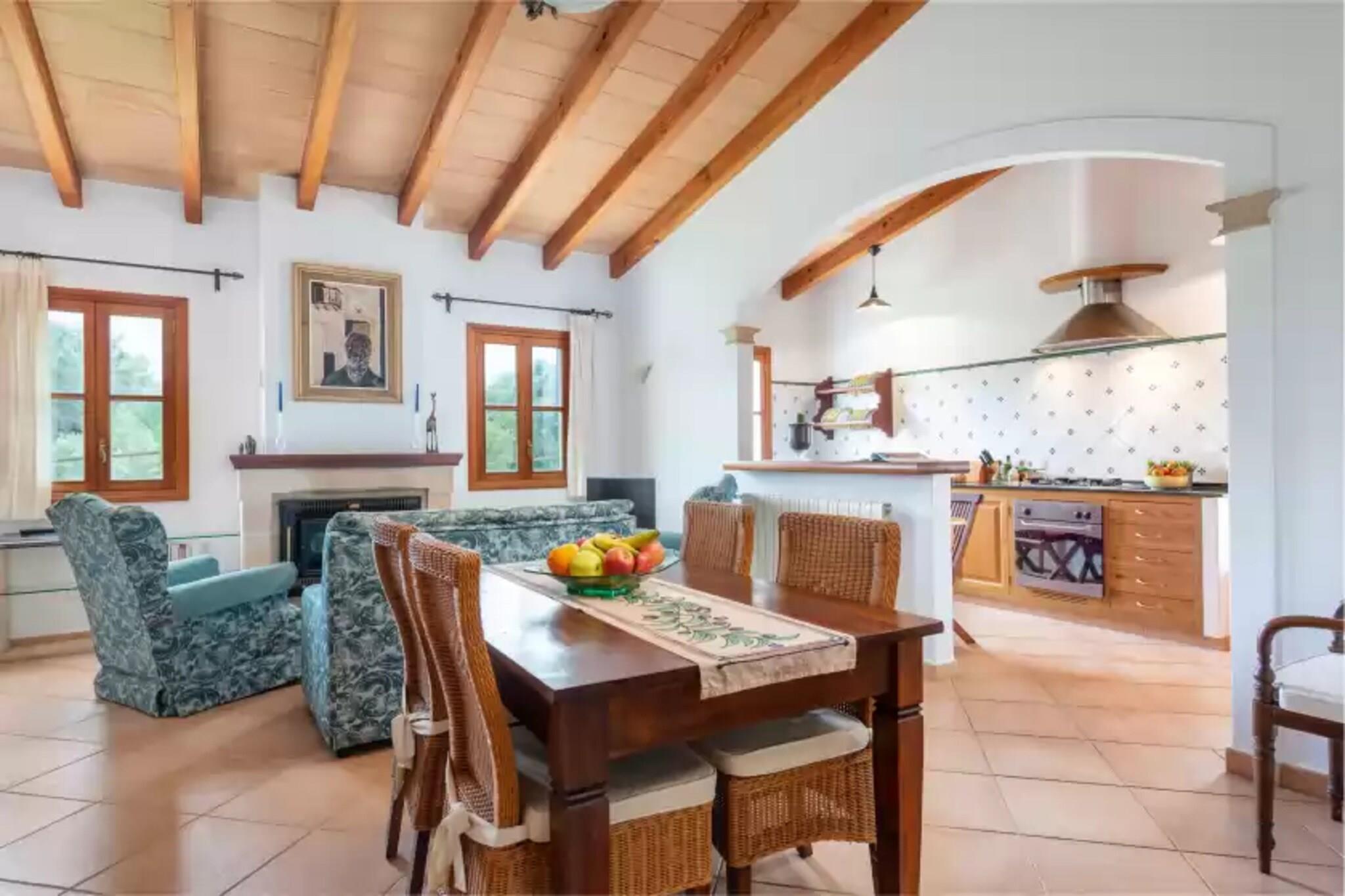 This charming country house in the middle of a bucolic setting will ensure your well-deserved rest during your vacation. The porch is perfect for family meals or barbecues, while also enjoying the beautiful views of the fields. The property is fenced and privacy is total. The one-storey house has a simple and comfortable style. The large Majorcan entrance leads to the living-dining room, equipped with satellite TV, a fireplace and a dining table for 4 people. The semi open kitchen has a gas stove. The separate laundry features a washing machine, iron and ironing board. To rest, the house features 2 bedrooms, both with twin beds and a wardrobe. Both bedrooms have direct access to the first of the bathrooms, with a bathtub. There is another bathroom with a shower. Finally, a baby cot, a high chair and gas central heating complete the equipment. The house is located in the countryside but the town, Son Servera, is only 4 km away. There you can find the basic services for an independent stay such as supermarkets, bars, restaurants, etc. The closest beach is sa Marjal a beautiful sandy beach located 7.5 km away, although you will find other beautiful beaches in the area as well. If you like golf you can practice it on the Golf Pula course located just 5.2 km away. Consult the advertiser for possible charges. Pets are not allowed. The holding of events is forbidden. There is exterior parking for 2 cars. There are parking space for 1 cars in the garage. Distances Beach: 7.5 km - Sa Marjal Airport: 65.8 km - Son Sant Joan Golf course: 5.2 km - Golf Pula Town: 4.3 km - Son Servera Train station: 18.4 km - Manacor Bus stop: 3.4 km - Plaça Nova Son Servera Ferry: 40.6 km - Port d'Alcudia Hospital: 18 km - Manacor Tourist license: ETV/7307Single Rental Registry: ESFCTU00000702300025176300000000000000000000ETV/73071