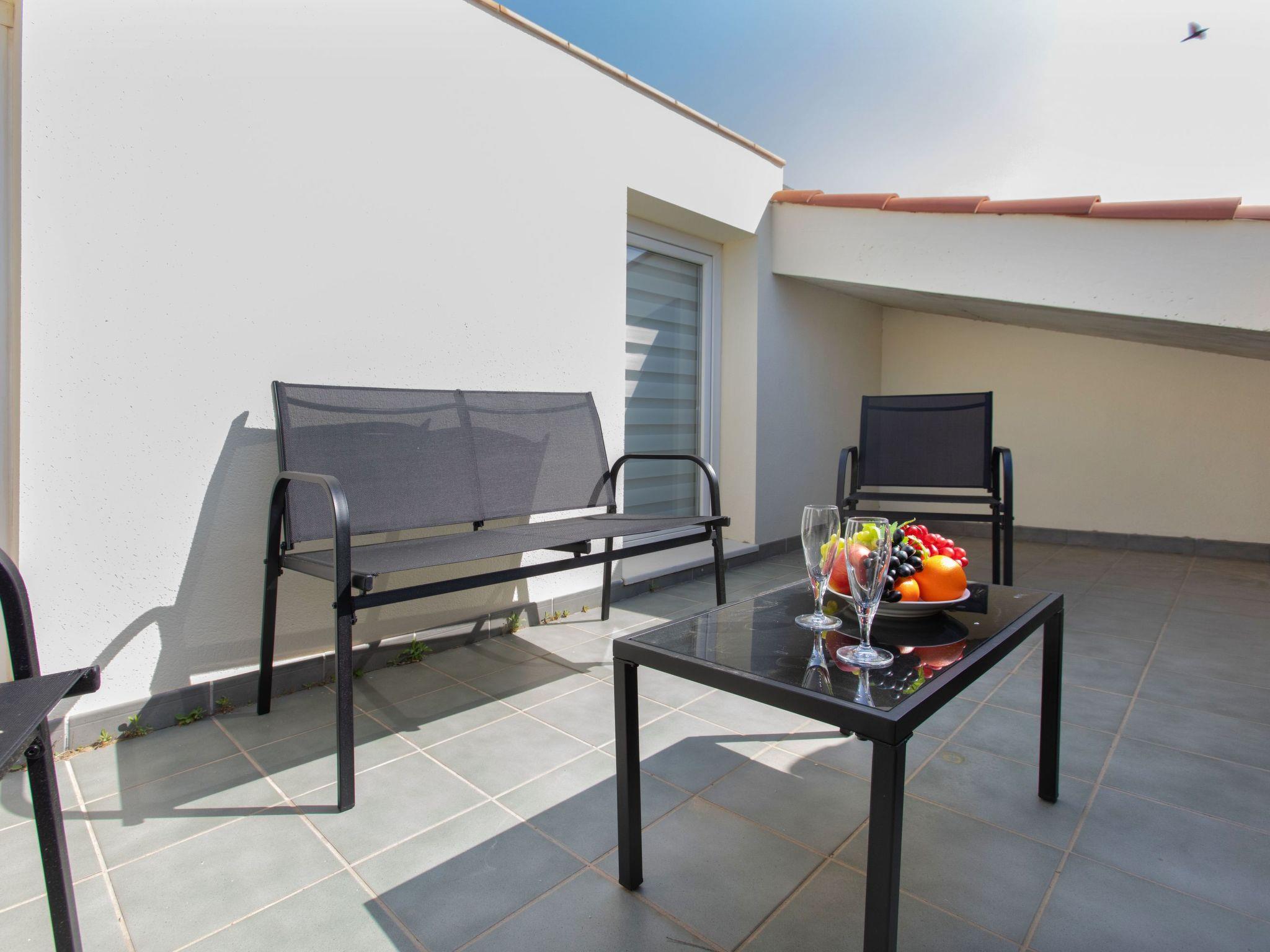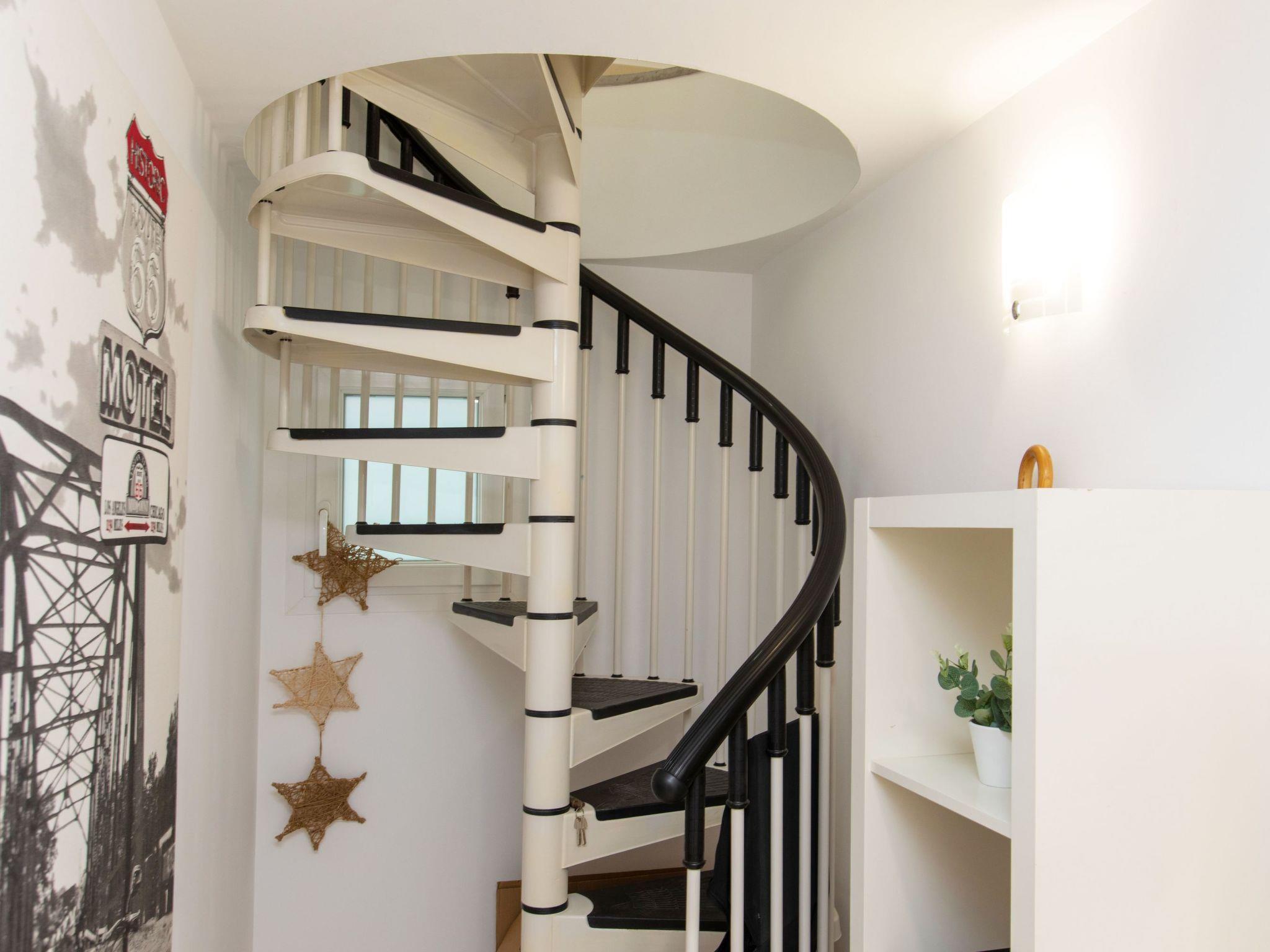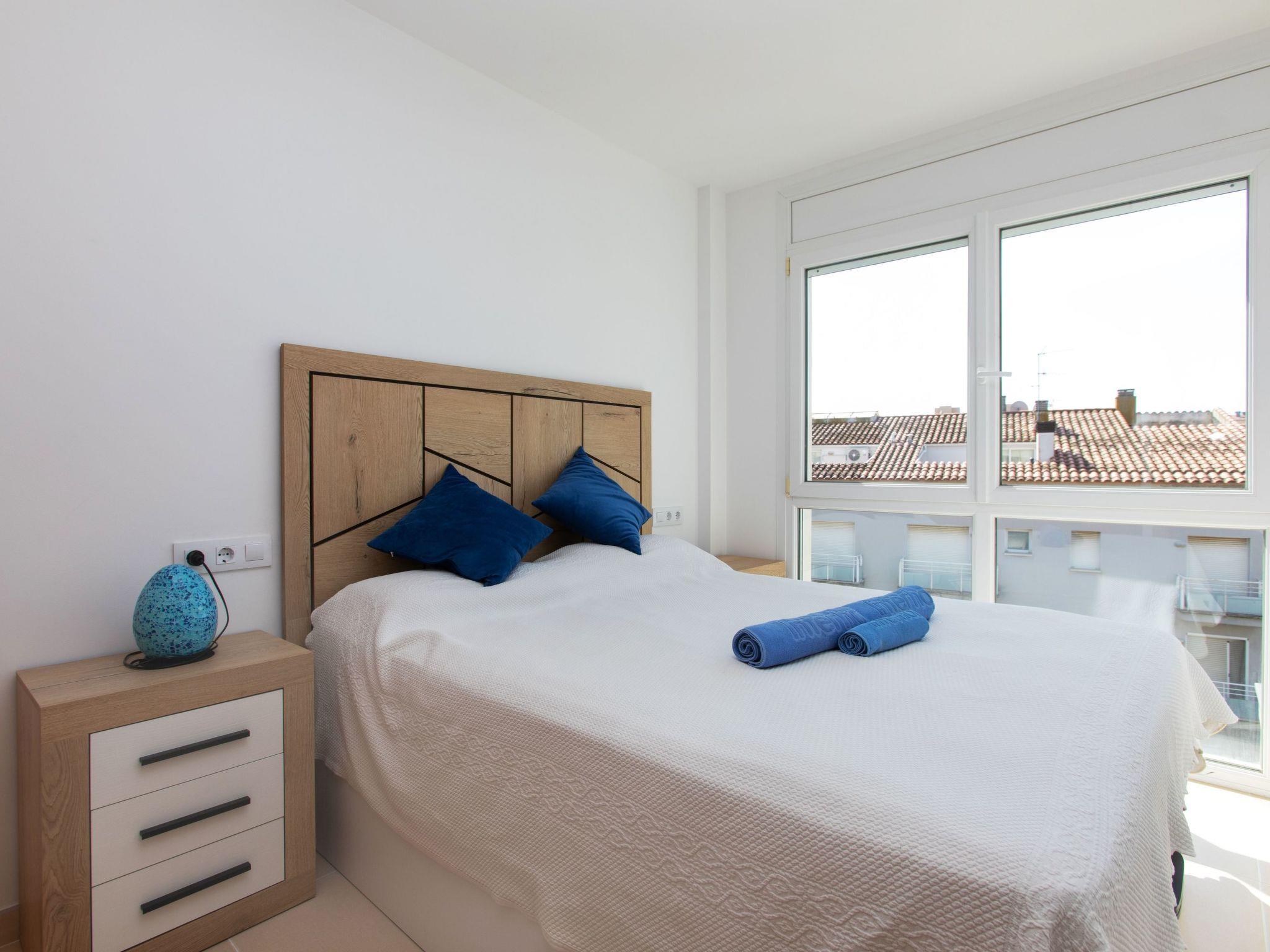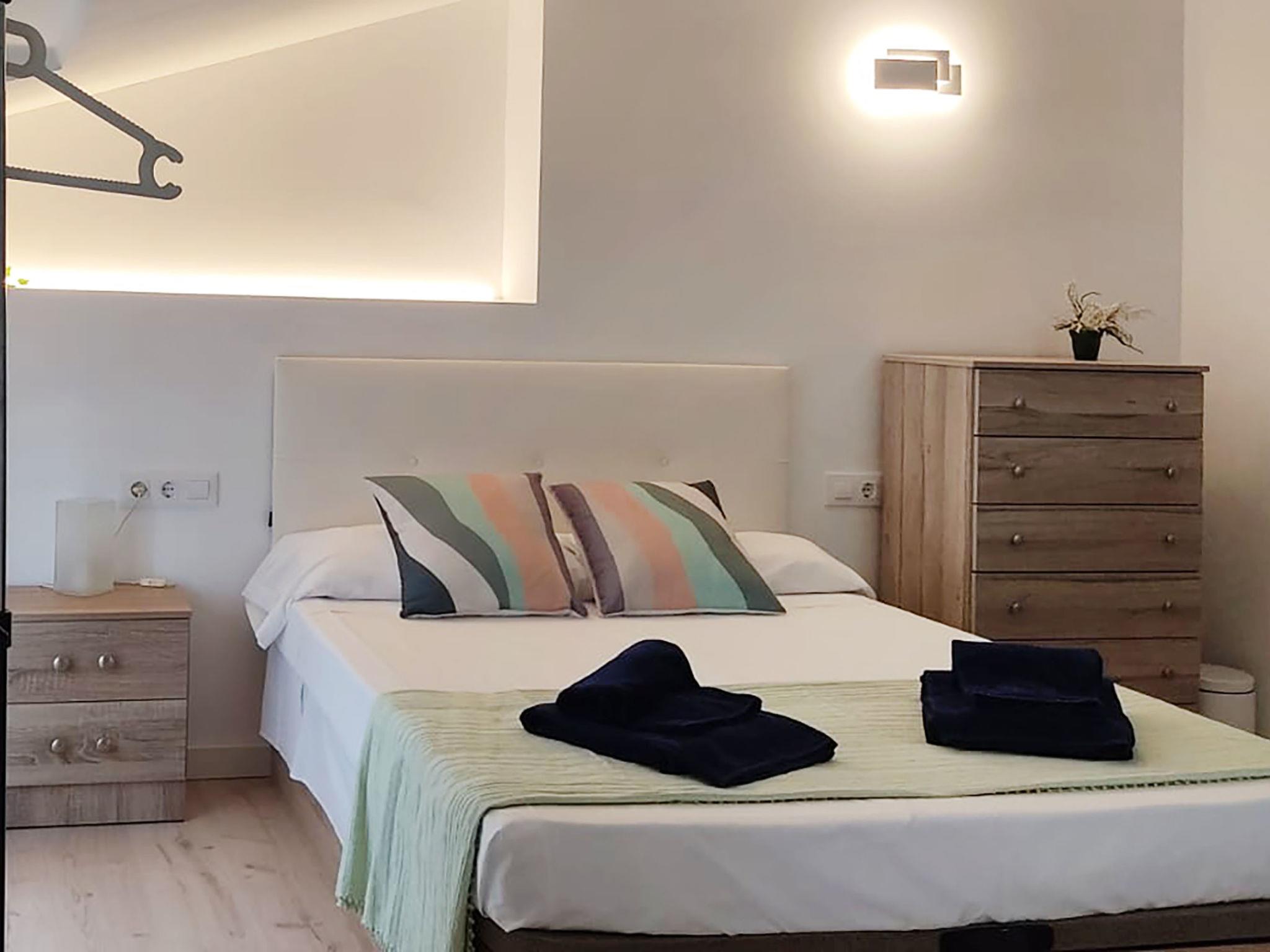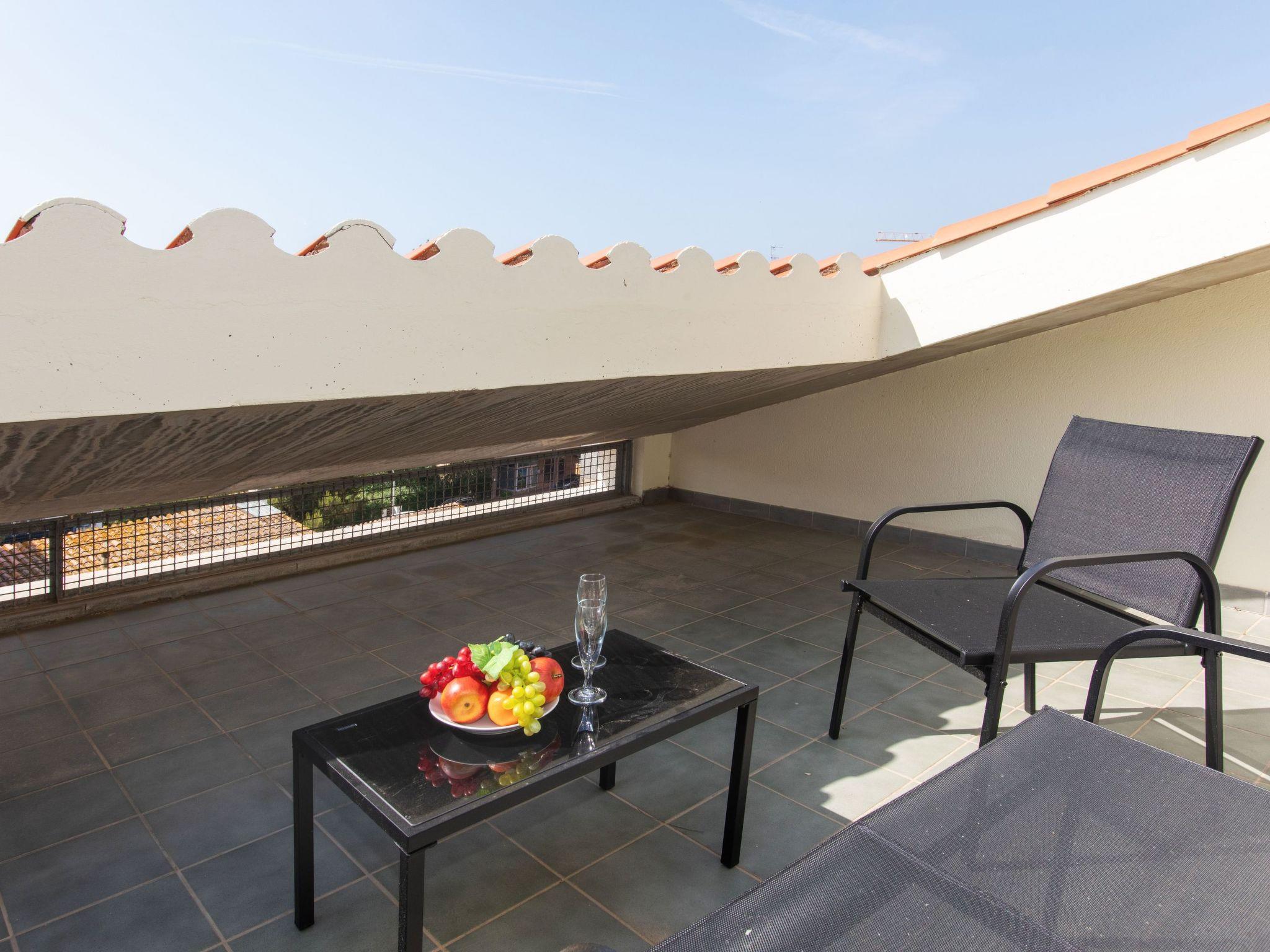 "Montse", 3-room apartment 75 m2 on 2 levels on 4th floor. Practical furnishings: living/dining room with digital TV. Exit to the balcony. 1 room with 1 french bed (135 cm, length 190 cm). Open kitchen (2 hot plates, oven, toaster, kettle, microwave, electric coffee machine). Shower/WC. Air-conditioning. No heating option. Upper floor: (spiral staircase), 1 room with 1 french bed (135 cm, length 190 cm). Shower/WC. Air-conditioning. Small balcony 2 m2. Facilities: washing machine, iron, children's high chair, baby cot, hair dryer. Internet (WiFi, free). Please note: TV only ES. HUTG-063816 // Reg. Nr.: ESFCTU00001701500047839100000000000000000HUTG-0638169