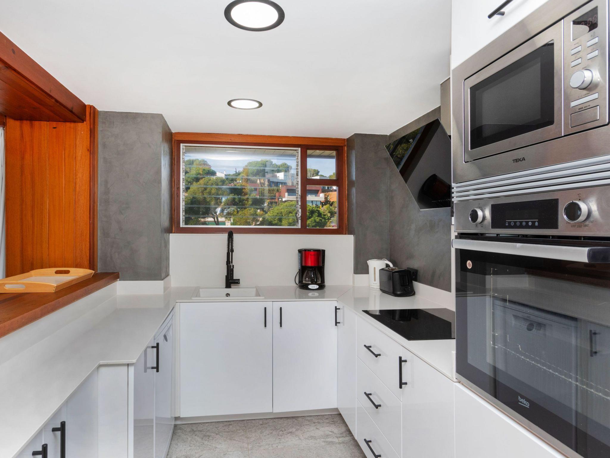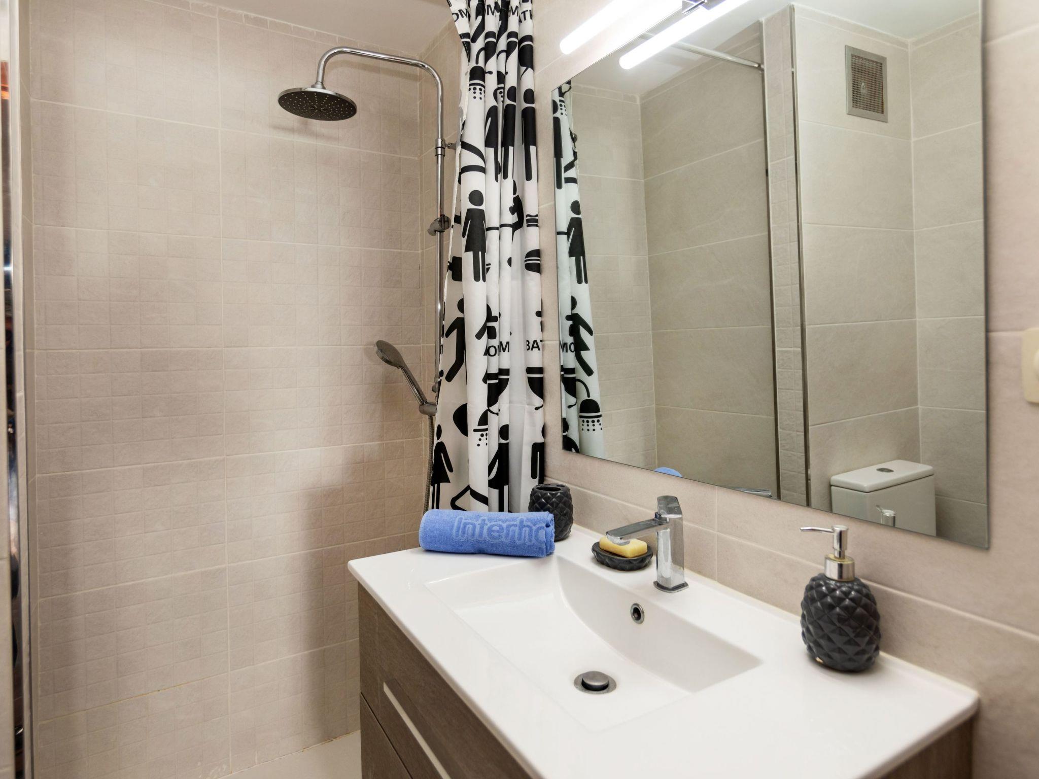 "isabelle", 3-room apartment 114 m2 on 9th floor. Practical furnishings: living/dining room with digital TV and flat screen. Exit to the terrace. 1 room with 1 french bed (150 cm, length 190 cm). Exit to the terrace. 1 room with 3 beds (90 cm, length 190 cm). Exit to the terrace. Open kitchen (oven, dishwasher, 3 ceramic glass hob hotplates, toaster, kettle, microwave, electric coffee machine). Bath/WC, shower/WC. No heating option. Large terrace. Terrace furniture, deck chairs (2). Very beautiful view of the sea. Facilities: washing machine, iron, mosquito net, children's high chair, baby cot. Internet (WiFi, free). Parking. Please note: non-smokers only. TV only ES. HUTG-015798 // Reg. Nr.: ESFCTU00001701500014123300000000000000000HUTG-0157983
