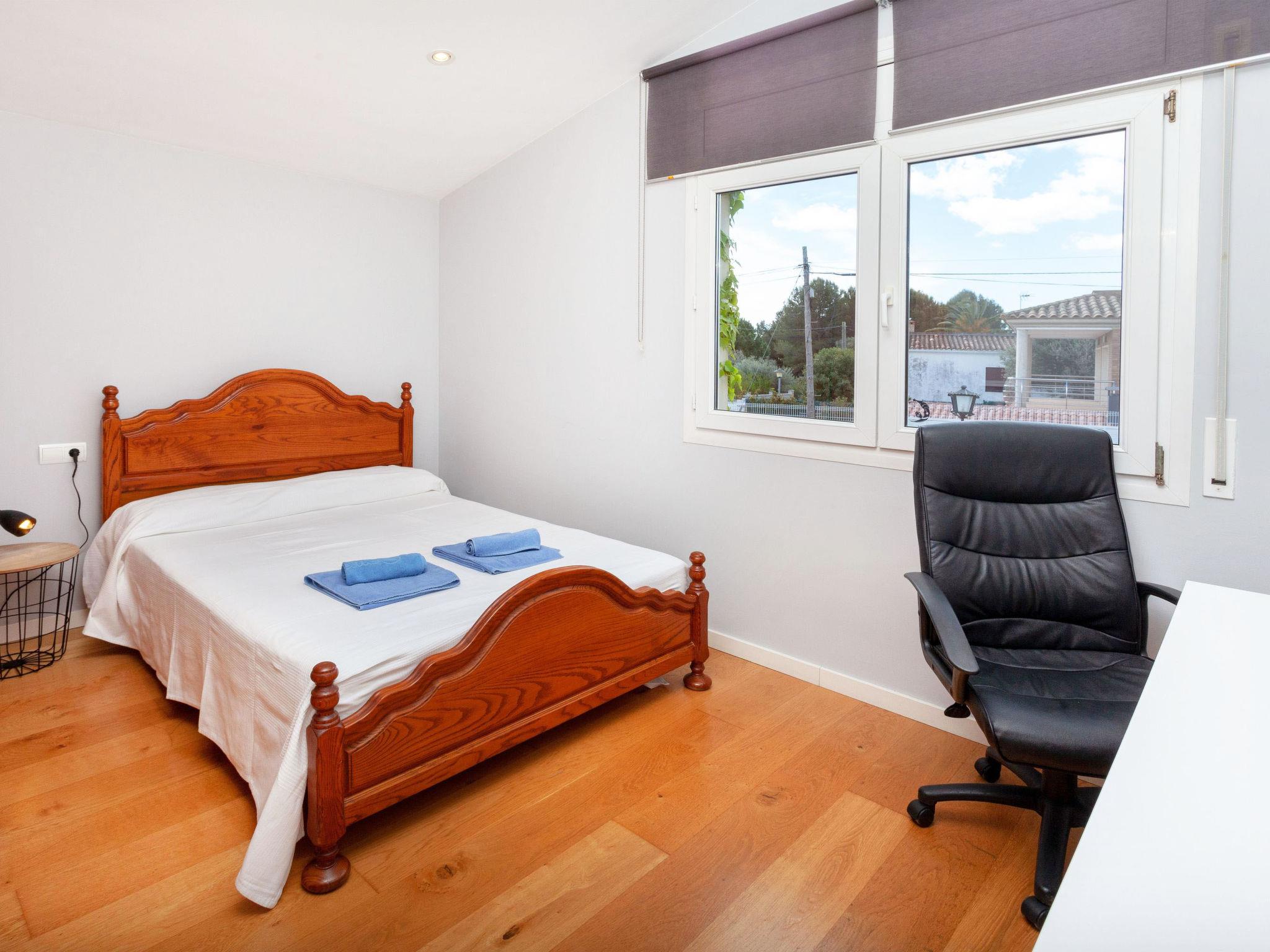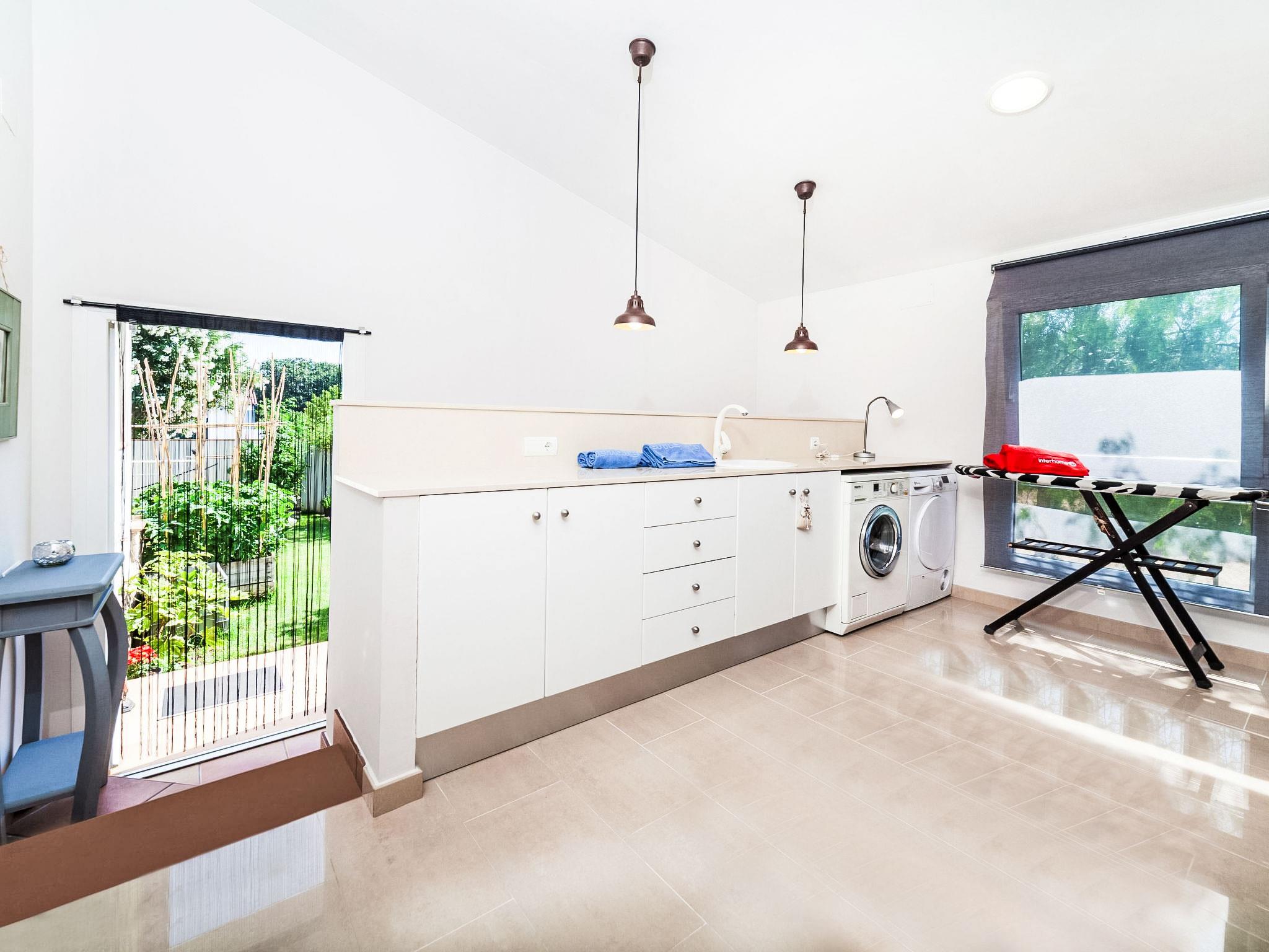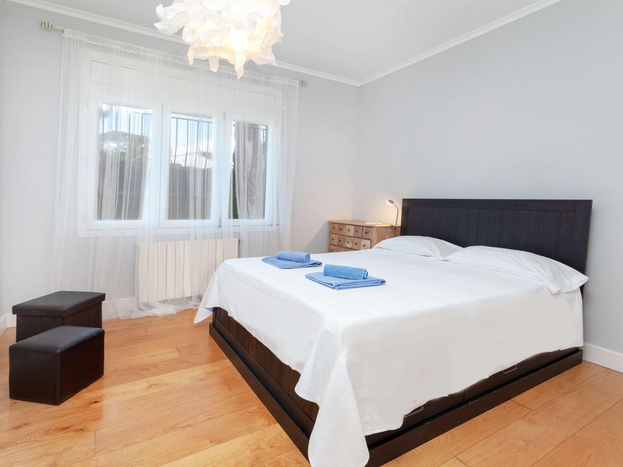 "Amsterdam", 5-room house 350 m2, lower ground floor. Spacious, comfortable and cosy furnishings: living/dining room with satellite TV (flat screen), fan. Exit to the patio, to the swimming pool. 1 room with 2 beds (90 cm, length 190 cm), fan. 3 rooms, each room with 1 french bed (135 cm, length 190 cm), fan. Kitchen (oven, dishwasher, 4 ceramic glass hob hotplates, toaster, kettle, microwave) with dining table. Exit to the patio. Bath/bidet/WC, shower/WC. No heating option. Large terrace, patio. Terrace furniture, barbecue, deck chairs, covered balcony. Facilities: washing machine, baby cot for up to 2 year olds, hair dryer. Internet (WiFi, free). Please note: suitable for families. Non-smoking house. HUTG-028711 // Reg. Nr.: ESFCTU00001701500019241900000000000000000HUTG-0287118