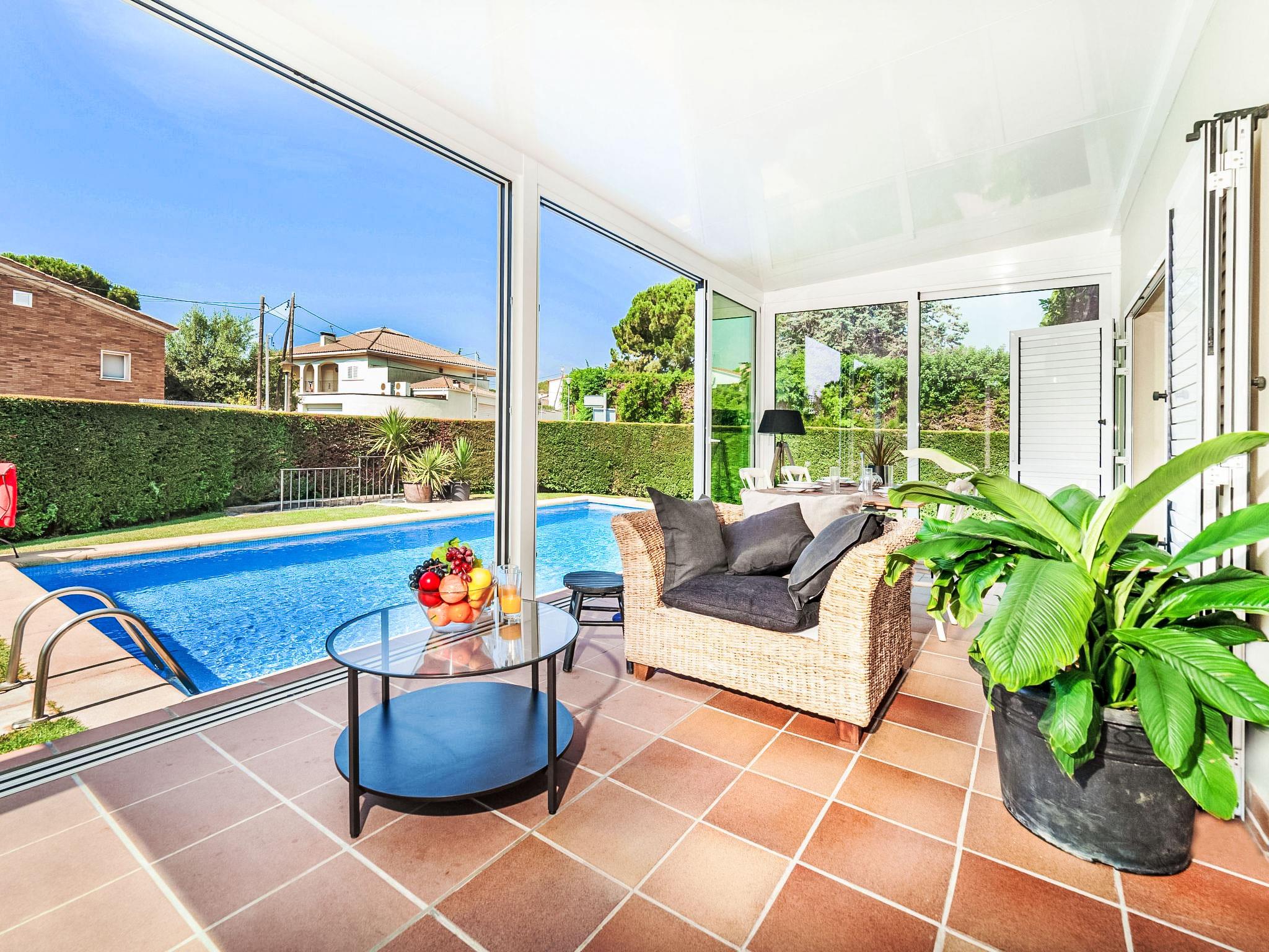 Puig ses forques 1 km from Sant Antoni de Calonge: Comfortable house "Amsterdam". In the resort 1 km from the centre of Sant Antoni de Calonge, in a sunny position, traffic calmed area, 1 km from the sea. Private: garden (fenced) with lawn and trees, swimming pool angular (8 x 4 m, depth 100 - 200 cm, seasonal availability: 01.May. - 31.Oct.) with internal staircase. Pergola, garden furniture, barbecue, parking on the premises, single garage. Supermarket 1 km, restaurant 1 km, bar 1 km, bus stop 500 m, sandy beach "Sant Antoni de Calonge" 1 km. Sports harbour 4 km, golf course (18 hole) 6 km, riding stable 12 km. Nearby attractions: Water park Aquadiver 5 km. Please note: suitable for families. The owner does not accept any groups. The owner does not accept any youth groups.
