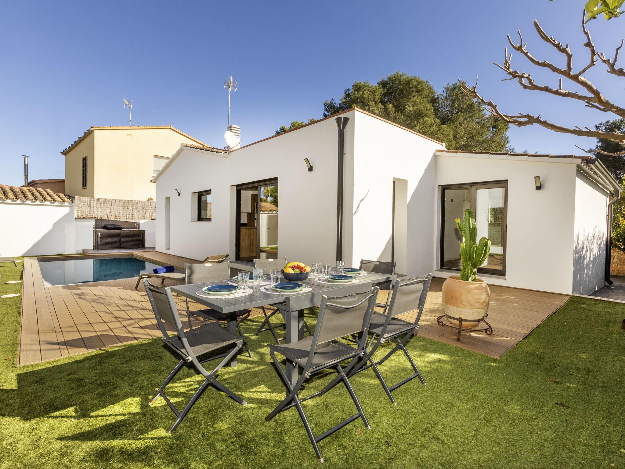 Puig ses forques 1 km from Sant Antoni de Calonge: Modern, beautiful, cosy single-family house "La Manzaneta", renovated. In the resort 1 km from the centre of Sant Antoni de Calonge, in a quiet, sunny position residential area (villas), traffic calmed area, 800 m from the sea. Private: garden (fenced) with lawn and trees, swimming pool angular (7 x 3 m, depth 100 - 200 cm, seasonal availability: 01.May. - 31.Oct.) with alarm system. Outdoor shower, garden furniture, barbecue, parking at the house on the premises. Supermarket 1 km, restaurant 1 km, bar 1 km, bus stop 500 m, railway station "Girona" 45 km, sandy beach "Sant Antoni de Calonge" 800 m. Sports harbour 5 km, golf course (18 hole) 15 km, tennis 4 km, minigolf 4 km, riding stable 12 km. Nearby attractions: Palamós - Centro, puerto y playa 2 km, Camí de Ronda - Calas Preciosas 3 km, Water Park Aquadiver 5 km, Via ferrata Cala del Molí 17 km, Peratallada - Pueblo medieval 18 km. The owner does not accept any youth groups. Neighbourhood highly sensitive to noise. Quietness and good behaviour expected.