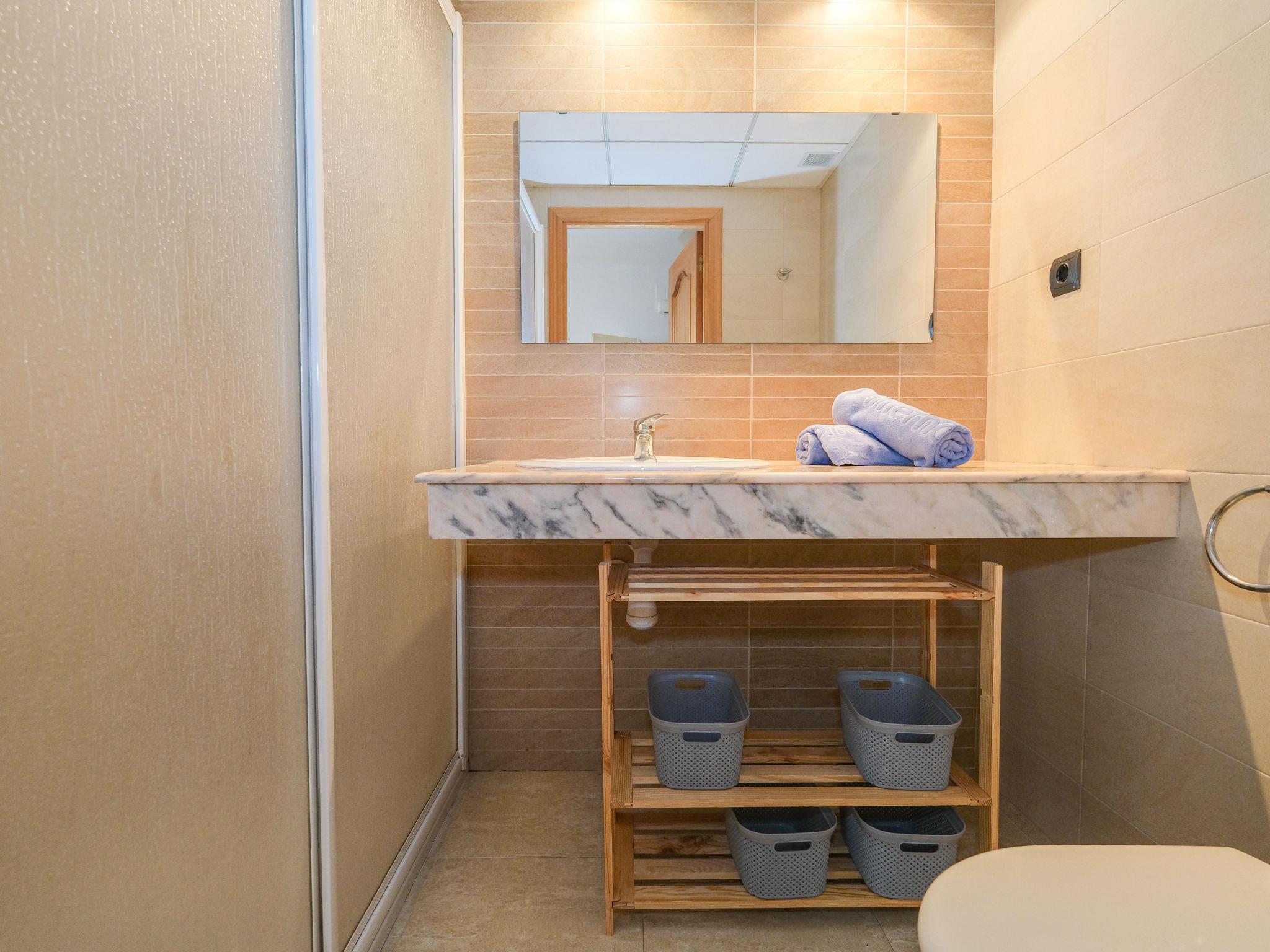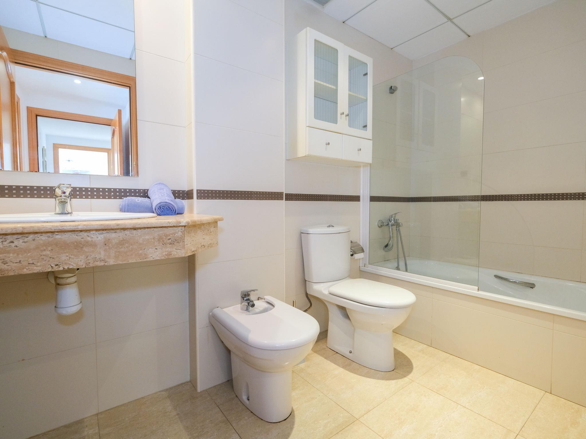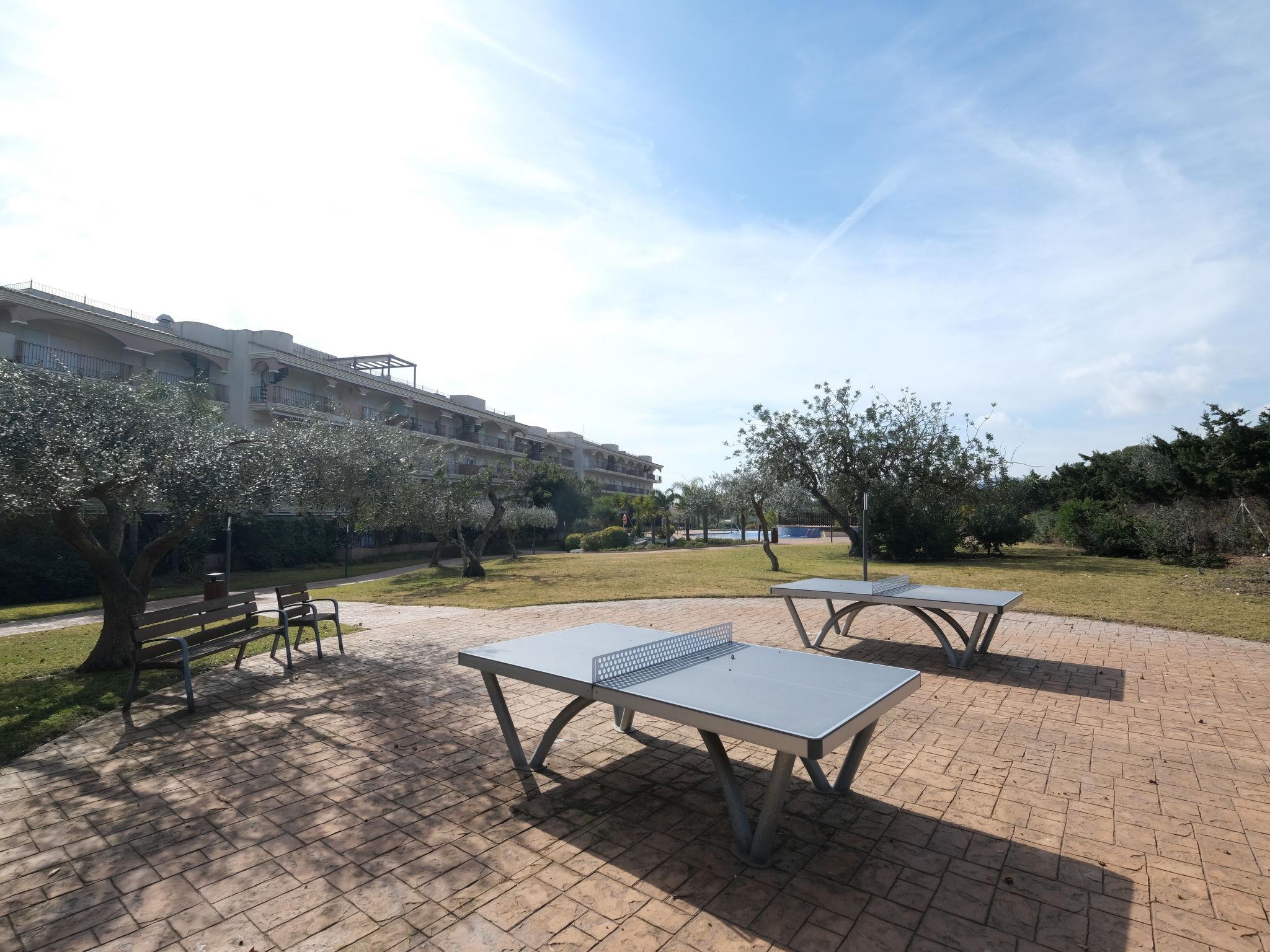 Golden Beach: Modern apartment block "Golden Beach". On the outskirts, 800 m from the centre of Sant Carles de la Rapita, 300 m from the sea, from the beach. For shared use: with lawn, beautiful garden to relax, swimming pool (seasonal availability: 01.Apr. - 30.Oct.). Children's pool, outdoor shower, table tennis, patio, children's playground, pool maintenance by the owner/gardener. In the house: lift. Communal covered parking space n 16. Shop 400 m, grocery, supermarket 400 m, shopping centre, restaurant 200 m, bar 300 m, bakery 400 m, café 200 m, internet café 300 m, pedestrian zone 10 m, bicycle rental 1 km, 15 minute walk to the centre, bus stop "Las Delicies" 300 m, railway station "L'Aldea" 20 km, sandy beach "Playa de les Delicies", diving center 500 m, outdoor swimming pool 1 km, indoor swimming pool 500 m, thermal baths "Montbrio del Camp" 60 km. Sports harbour 500 m, marina, golf course (18 hole) 30 km, surf school, sailing school, tennis, riding stable 12 km, sports centre 800 m, children's playground 500 m, fishing possibilities. Nearby attractions: Parque Natural del Delta de l'Ebre 20 km, Port Aventura Salou 80 km, Castillo de Peñiscola 40 km, Vinaroz 25 km. Hiking paths: La Foradada Sant Carles de la Rapita 3 km.