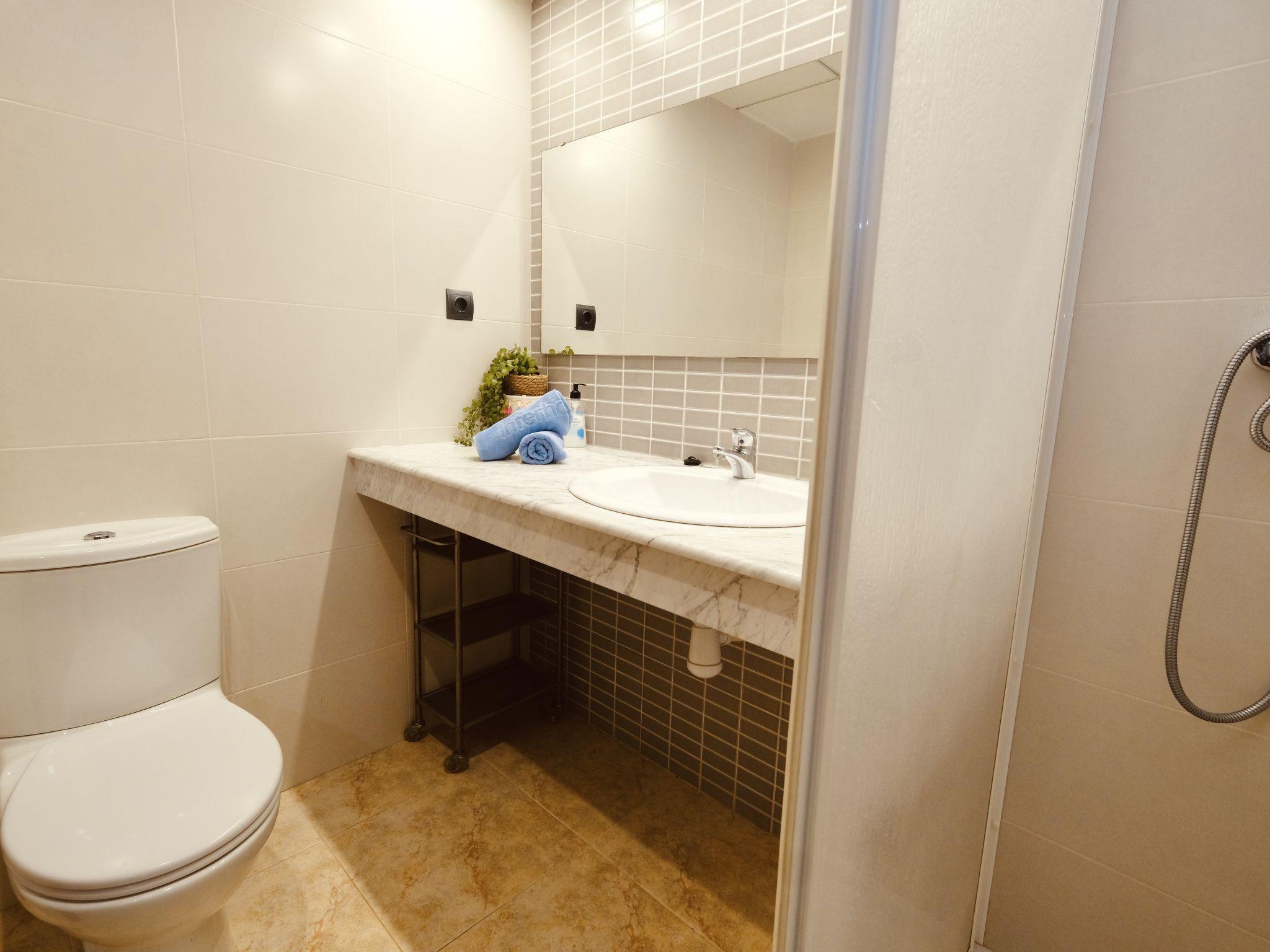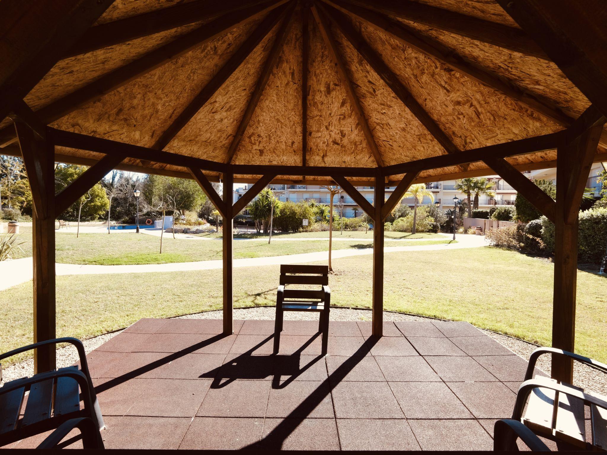 Golden Beach: Cosy apartment block "Residencial Golden Beach", surrounded by trees and meadows. Above Sant Carles de la Rapita, in the resort 400 m from the centre of Sant Carles de la Rapita, 300 m from the edge of the forest, 300 m from the sea, 400 m from the beach. For shared use: large, well-kept garden with lawn and plants, swimming pool (22 x 10 m, seasonal availability: 01.Apr. - 31.Oct. pool opening hours: 10:00-21:00) with internal staircase. Unconventional pool shape. Outdoor shower, boccia, pool maintenance by the owner/gardener. In the house: lift, air conditioning. Communal covered parking. Shop 350 m, grocery 350 m, supermarket 200 m, shopping centre 400 m, restaurant 100 m, bakery 400 m, café 100 m, pedestrian zone 20 m, bicycle rental 500 m, 15 minute walk to the centre, bus stop "Las Delicias" 100 m, railway station "l'Aldea" 25 km, sandy beach "Playa de las Delicies" 300 m, thermal baths "Montbrio del Camp" 70 km. Sports harbour 500 m, marina 500 m, golf course (18 hole) 30 km, surf school, sailing school, riding stable 2 km, sports centre 300 m, children's playground 300 m, fishing possibilities. Nearby attractions: Parque Natural del Delta del Ebro 16 km, Port Aventura Salou 85 km, Peñiscola 40 km, Vinaroz 20 km. Hiking paths: La Foradada 12 km.