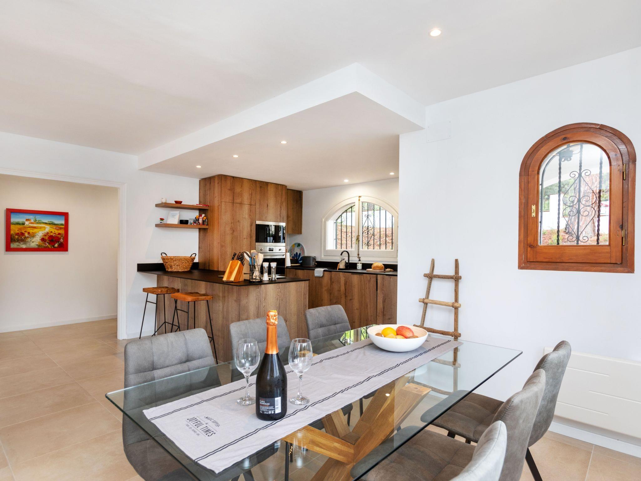 "Gavarres", 4-room house 130 m2 on 2 levels. Practical and cosy furnishings: living/dining room with open-hearth fireplace and digital TV. Exit to the terrace. 1 room with 1 french bed (160 cm, length 200 cm), shower/WC, double hand-basin and air conditioning. 1 room with 2 beds (90 cm, length 190 cm), air conditioning. Open kitchen (oven, dishwasher, 3 induction hot plates, toaster, kettle, microwave, freezer, electric coffee machine). Shower/WC. Electric heating. On the lower ground floor: 1 room with 2 beds (90 cm, length 190 cm). Kitchen (oven, dishwasher, 4 ceramic glass hob hotplates, microwave). Shower/WC. Large patio. Barbecue, deck chairs (4), covered balcony. Very beautiful view of the mountains, the countryside and the resort. Facilities: washing machine, iron, children's high chair, baby cot, hair dryer. Internet (WiFi, free). Parking (2 cars) at the house. Please note: suitable for families. TV only ES. No internal connecting door between the floors. HUTG-074723 // Reg. Nr.: ESFCTU00001701700030647600000000000000000HUTG-0747232