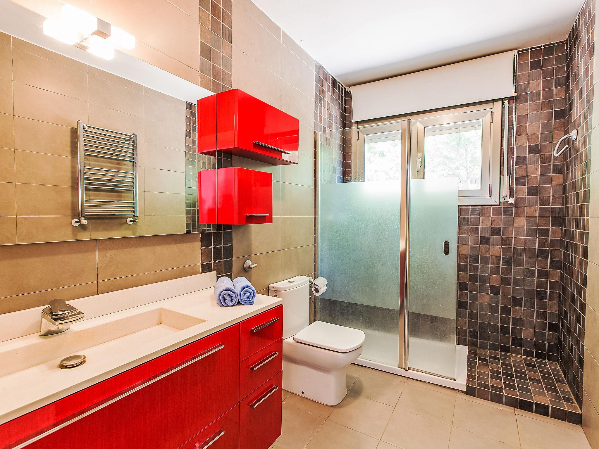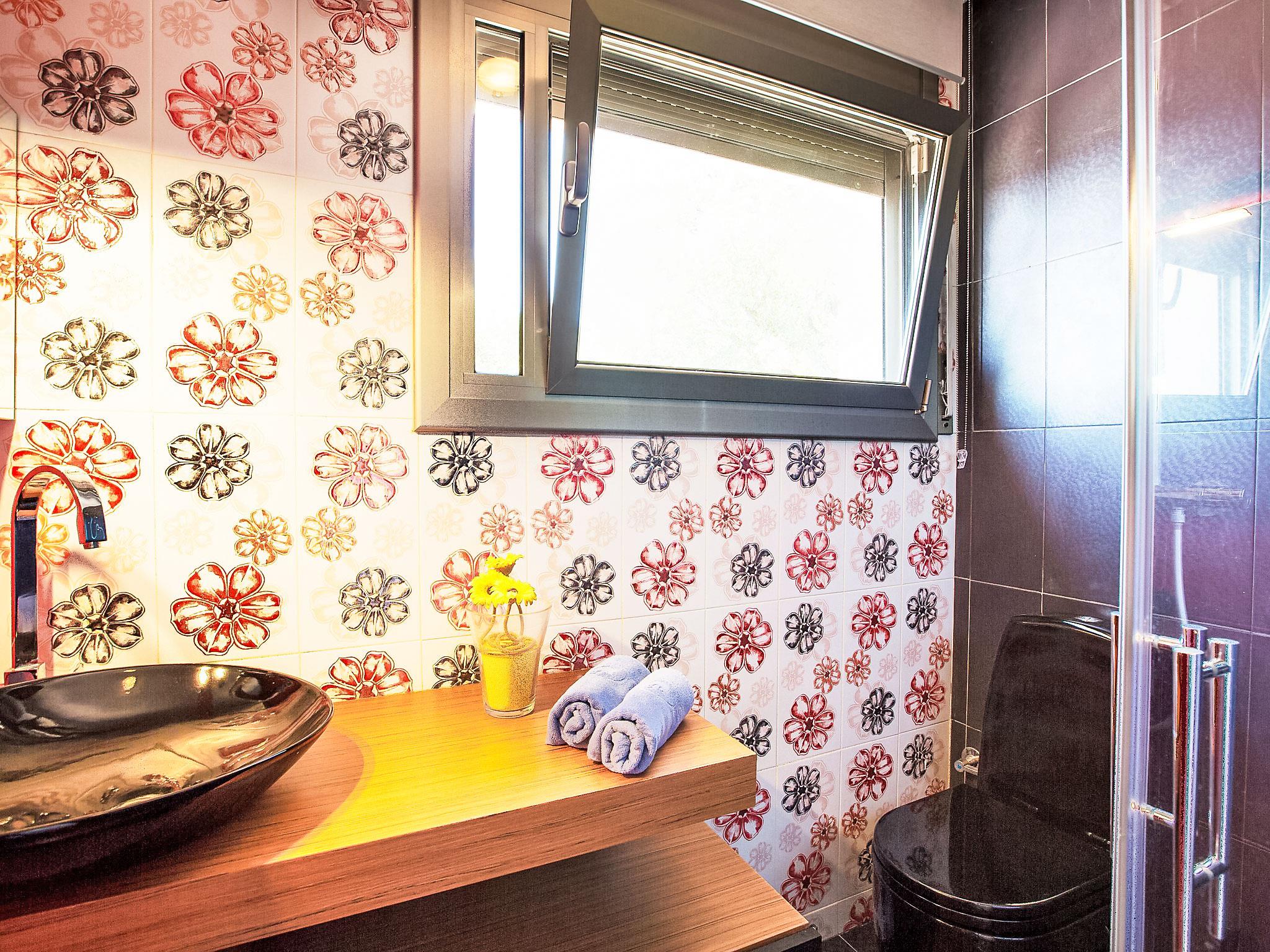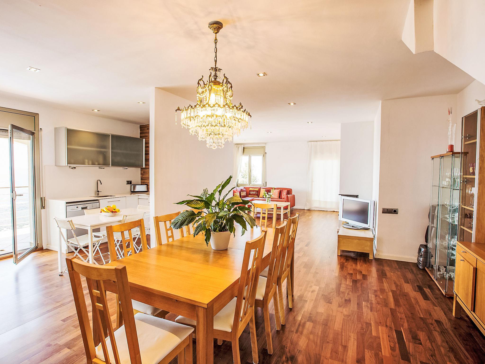 "Casa Amalia", 5-room house 190 m2 on 2 levels. Practical and modern furnishings: living/dining room with open-hearth fireplace and TV (flat screen), air conditioning. Exit to the terrace. 1 room with 2 beds (90 cm, length 190 cm). Kitchen (oven, dishwasher, 3 ceramic glass hob hotplates, toaster, kettle, microwave, freezer, electric coffee machine). Exit to the terrace. Shower/WC. Oil heating. Upper floor: 1 room with 1 french bed (150 cm, length 190 cm), bath/WC and air conditioning. 2 rooms, each room with 1 french bed (135 cm, length 190 cm). Exit to the terrace. Shower/WC. Parquet floors. Patio. Terrace furniture, barbecue, deck chairs, covered balcony. Very beautiful view of the sea and the mountains. Facilities: washing machine, iron, children's high chair, baby cot for up to 2 year olds. Internet (WiFi, free). Please note: non-smoking house. TV only ES. HUTG-019349 // Reg. Nr.: ESFCTU00001701700031160900000000000000000HUTG-0193491