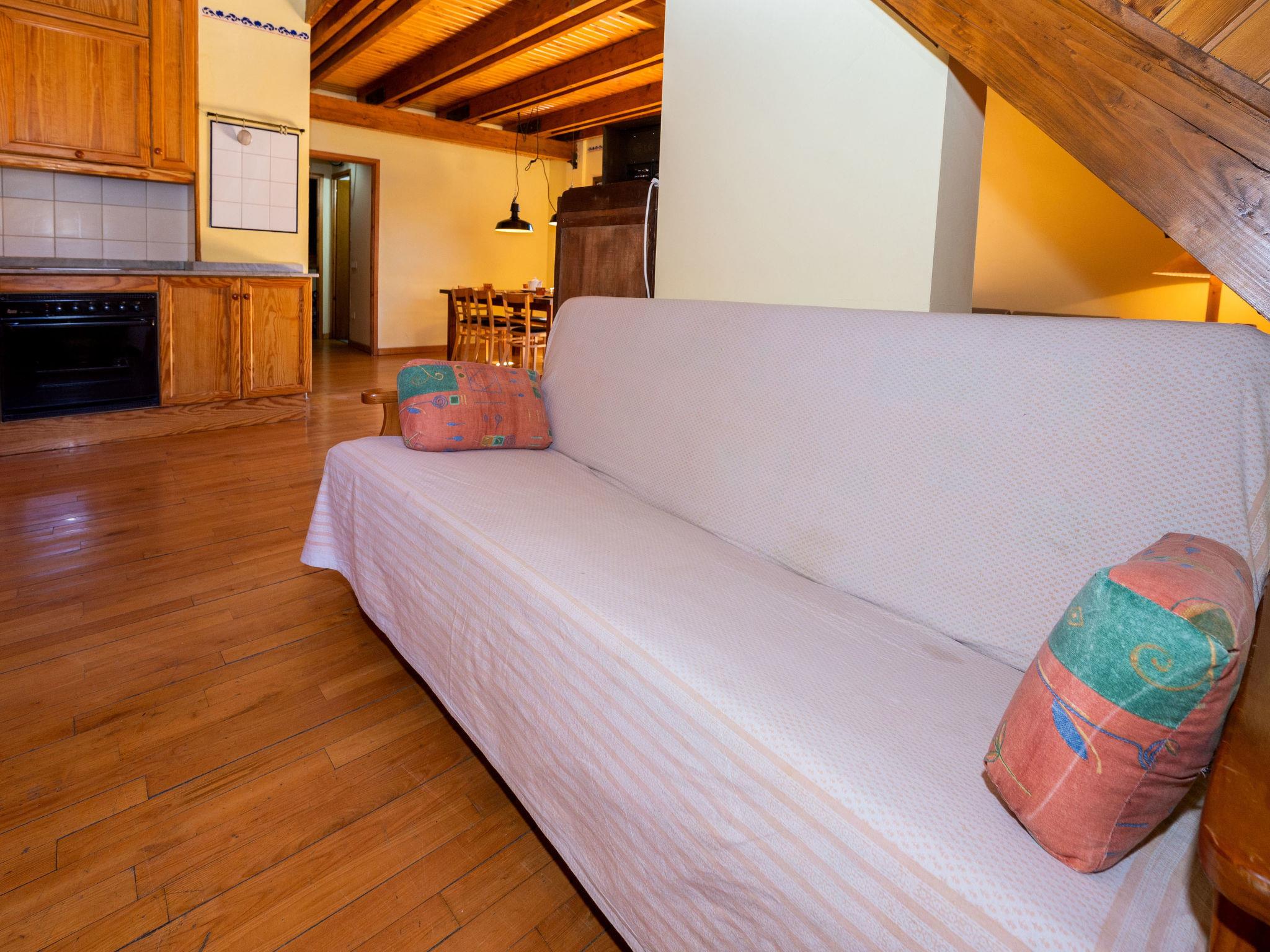 3-room apartment 90 m2 on 2 levels on 3rd floor. Rustic furnishings: living/dining room 30 m2 with digital TV and wood-burning stove. Exit to the balcony. 1 room with 1 french bed and fan. 1 room with 1 pull-out bed (2 pers. 2 x 190 cm). Kitchenette (oven, 4 ceramic glass hob hotplates, microwave). Bath/bidet/WC. Electric heating. Upper floor: 1 open room with sloping ceilings with 1 french bed and bath/bidet/WC. Parquet floors. Balcony. View of the mountains and the ski run. Facilities: Internet (WiFi, free). Garage. Maximum 1 pet/ dog allowed. HUTL000419 // Reg. Nr.: ESFCTU000025008000125579000000000000000000HUTL0004197