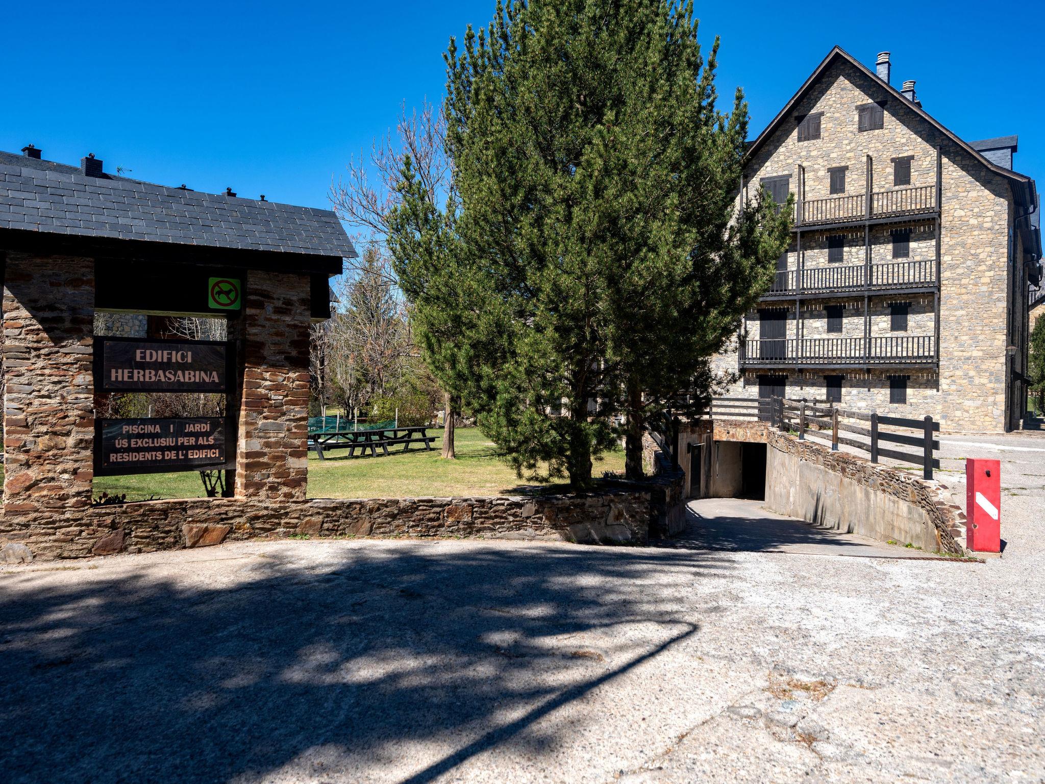 Pla de l'Ermita 2 km from Taüll: Apartment block "Herbasabina", 4 storeys. For shared use: garden with lawn, swimming pool (4 x 9 m, depth 2 - 10 cm, seasonal availability: 01.Jun. - 11.Sep.). Outdoor shower, children's playground. In the complex: lift. Bus stop "Pla De Ermita" 300 m. Slopes 7 km. The owner does not accept any youth groups. Please note: Additional accommodations can be booked. The pool is heated from 01.07 to 31.08. The "Pla de l'Ermita" residential complex has access to 3 shared swimming pools (extra, July-September).