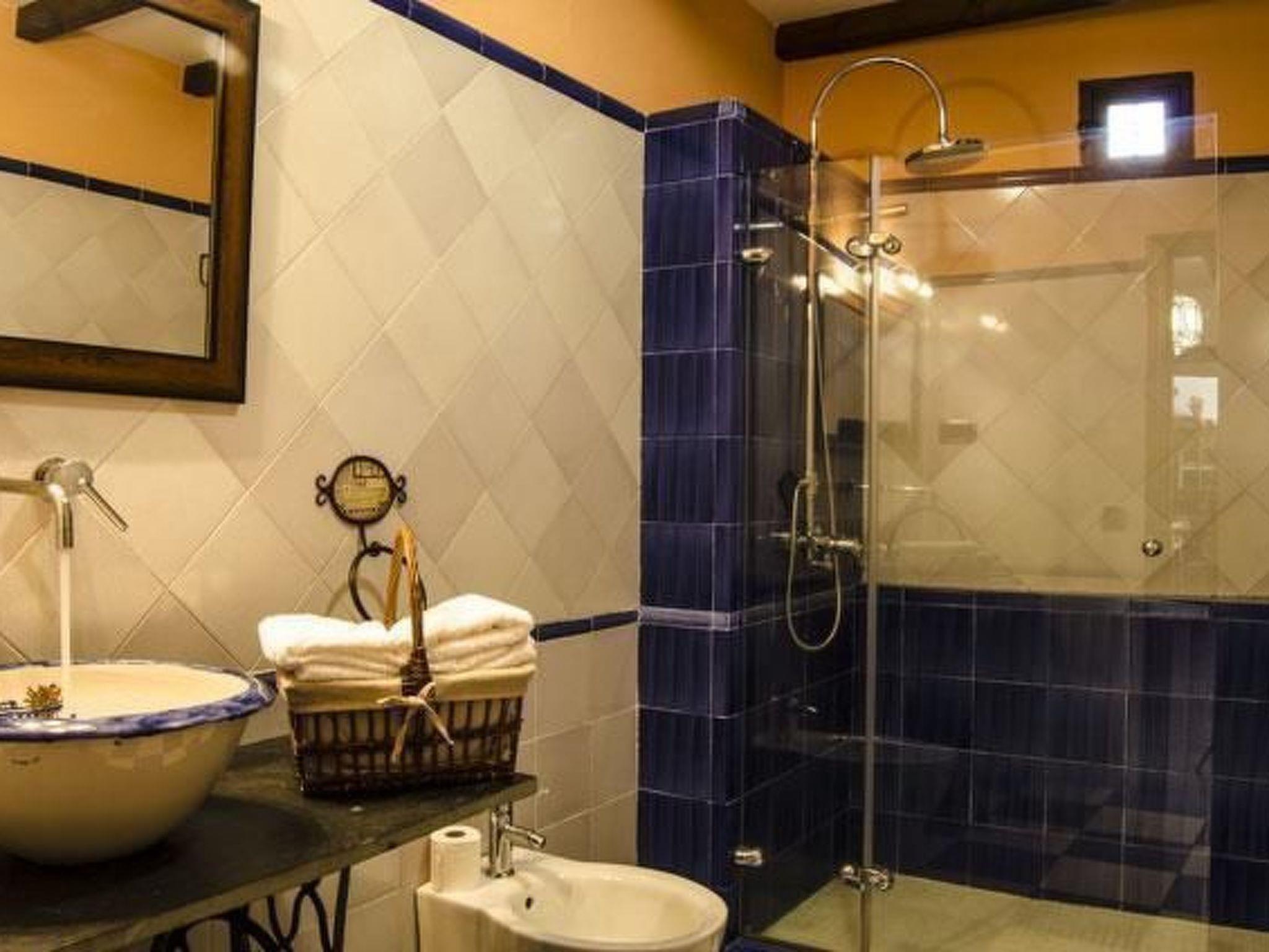Passing through the traditional wooden gate, a welcoming entrance hall leads into a spacious living room with a fireplace, perfect for family gatherings or with friends. The kitchen, separated from the living room by an old brick and wooden bar, is fully equipped to meet all your culinary needs, accentuated by hand-painted tiles and rustic furnishings. On the ground floor, you will also find a large double bedroom and a uniquely designed bathroom that fuses modernity and tradition. The upper floor houses three more carefully decorated bedrooms, a luxurious bathroom with handcrafted details and a terrace with fantastic views, guaranteeing comfort and style in every corner.