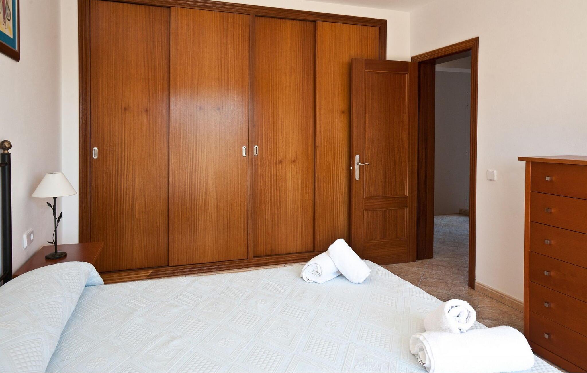 Die Villa erstreckt sich über zwei Ebenen und verfügt über insgesamt 4 Schlafzimmer und 3 Badezimmer im Inneren der Villa sowie 1 zusätzliches Badezimmer im Freien. Im Erdgeschoss finden Sie zwei Schlafzimmer mit zwei Einzelbetten, ein Badezimmer mit Badewanne und eine voll ausgestattete Küche mit modernen Geräten wie Kühlschrank mit Gefrierfach, Geschirrspüler, Backofen, Mikrowelle, Cerankochfeld, Toaster, Wasserkocher, Waschmaschine und Trockner. Die Küche öffnet sich direkt in den Garten und verfügt über einen Tisch für vier Personen. Das Wohnzimmer mit Fernseher, Stereoanlage und kostenlosem WLAN bietet direkten Zugang zum Pool.