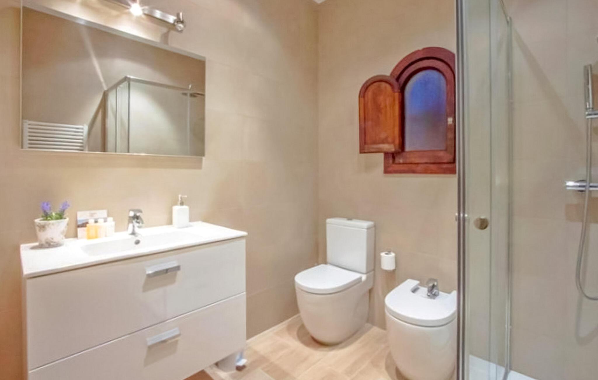 1. Stock: 1 Schlafzimmer mit 2 Einzelbetten mit Bad mit Dusche, 1 Schlafzimmer mit Doppelbett und Badezimmer mit Badewanne. Im Außenbereich gibt es 2 Terrassen (wegen niedriger Mauern nicht für Kinder geeignet). Das Haus verfügt über eine Klimaanlage in allen Schlafzimmern (außer dem Einzelzimmer).