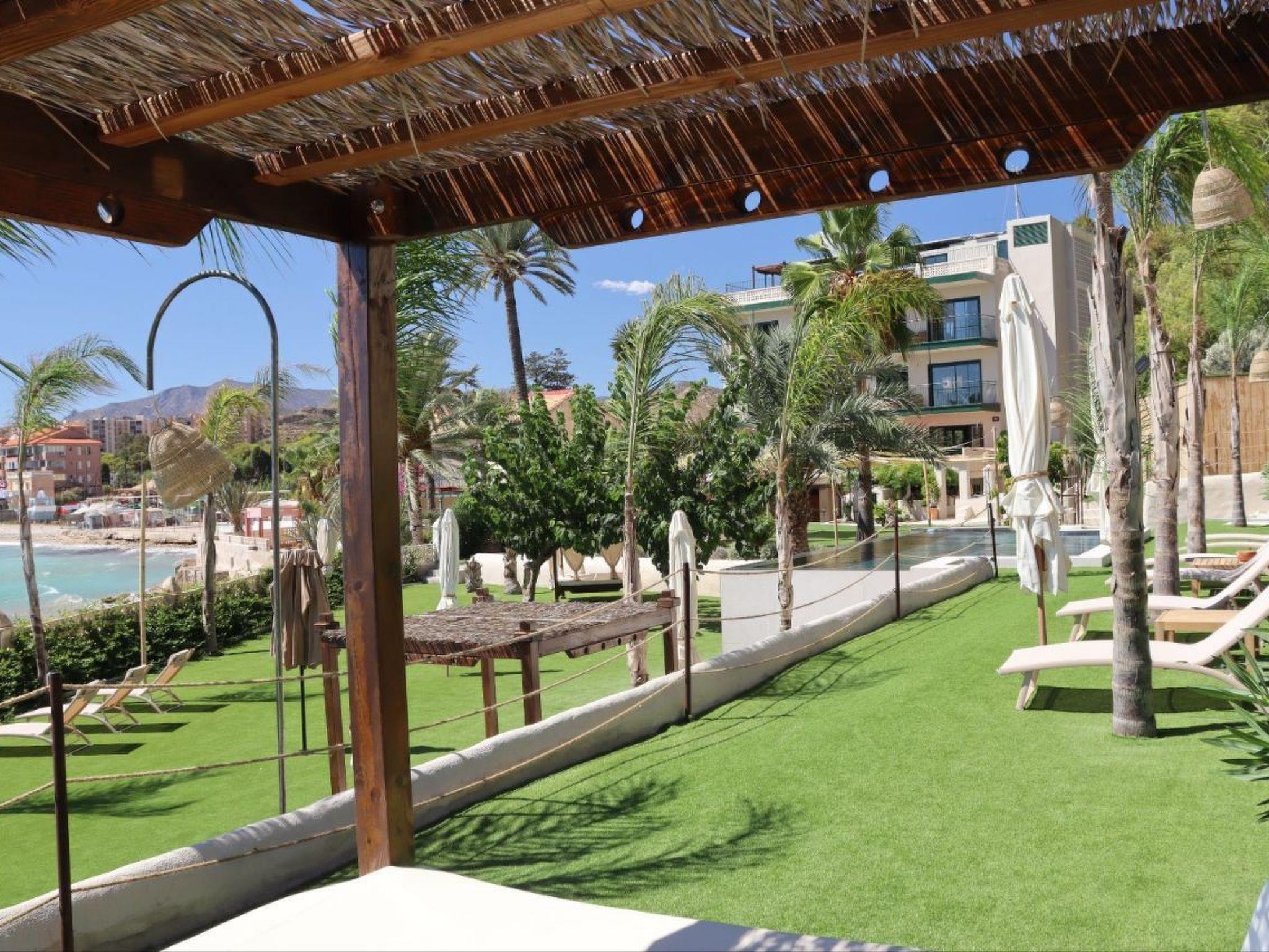 From our 1.500 m2 of Mediterranean gardens which are protected by a mountain of pine trees we have direct access to a small beach almost exclusively for our guests, accompanied by an infinity pool.