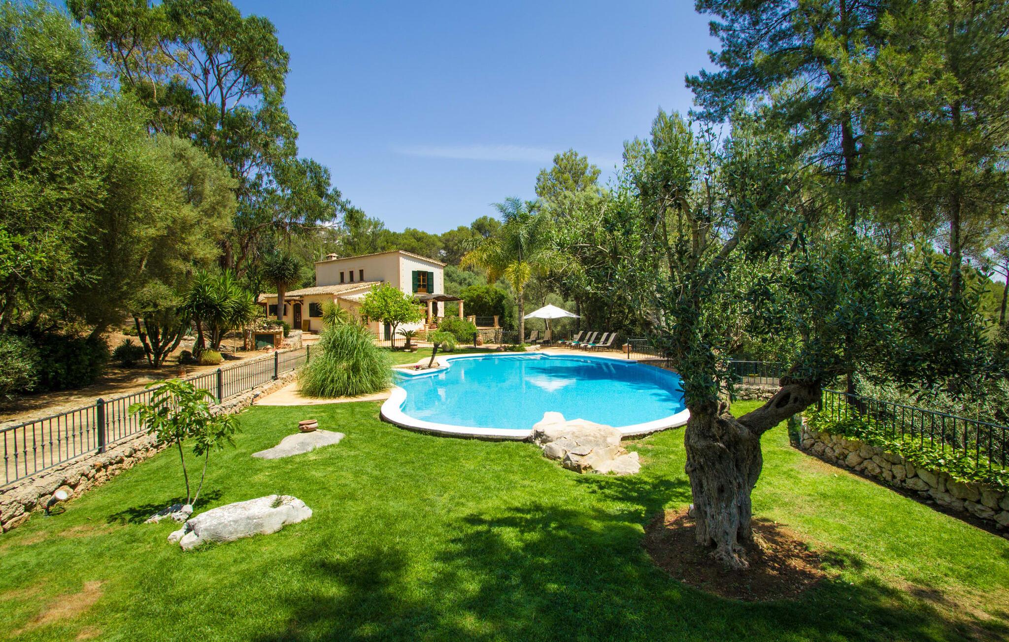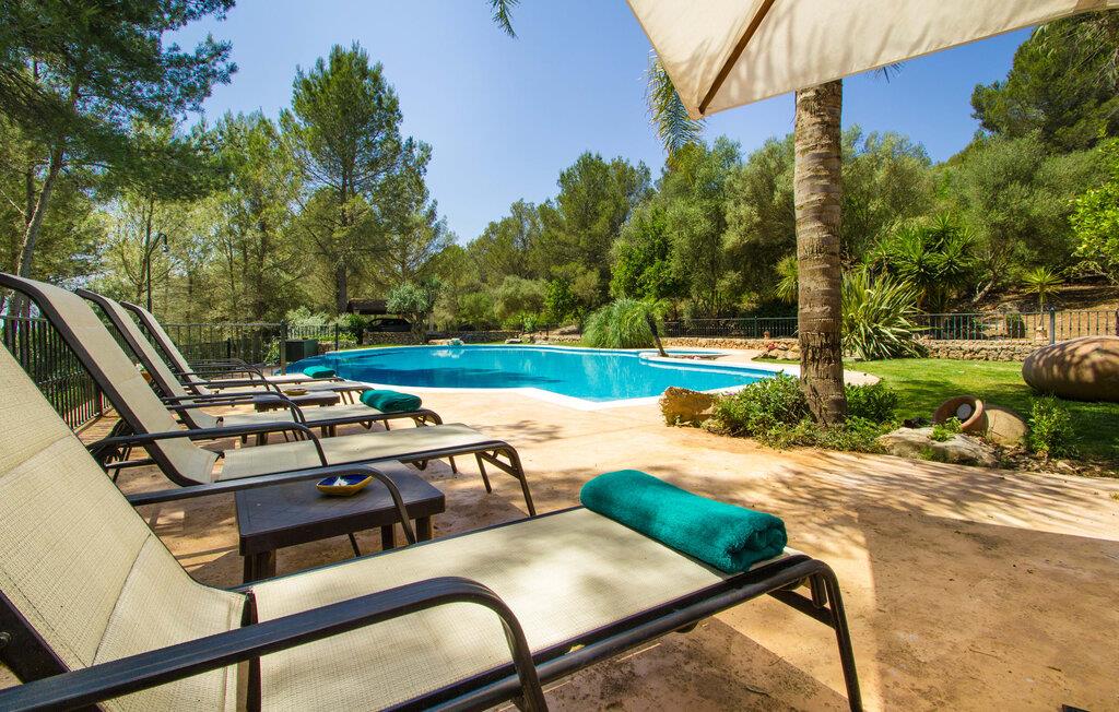 Vertrauen Sie den Fotos: Die Ferienfinca „Yuma“ erwartet Sie genau so, wie Sie sie sich vorstellen, eingebettet in eine idyllische Lage inmitten schattenspendender Pinien und Palmen im Herzen Mallorcas. Umgeben von einem wunderschönen, angelegten Garten verspricht der weitläufige 20 x 8 Meter große Pool unvergleichliche Privatsphäre. Hier ist der einzige Soundtrack der Zikadenchor im Hochsommer, der mit dem sanften Rascheln der Baumwipfel harmoniert. Wählen Sie Ihre Entspannungsplätze aus, sei es auf den bequemen Sonnenliegen im Schatten, im Wassersitzbereich des Pools oder beim Entspannen auf der einladenden Rasenfläche. Nur wenige Schritte vom Haus entfernt befindet sich eine erhöhte, schattige Terrasse mit Blick auf diesen bezaubernden Poolbereich, der sicher vor Kindern geschützt ist. Zu den weiteren Outdoor-Highlights zählen ein privater Golfplatz und eine windgeschützte, verglaste Grillterrasse mit einem großzügigen Essbereich mit Ausblick ins Grüne. Die Umgebung ist ideal für Radsportbegeisterte und bietet gut ausgestattete Radwege durch die hügelige Landschaft.