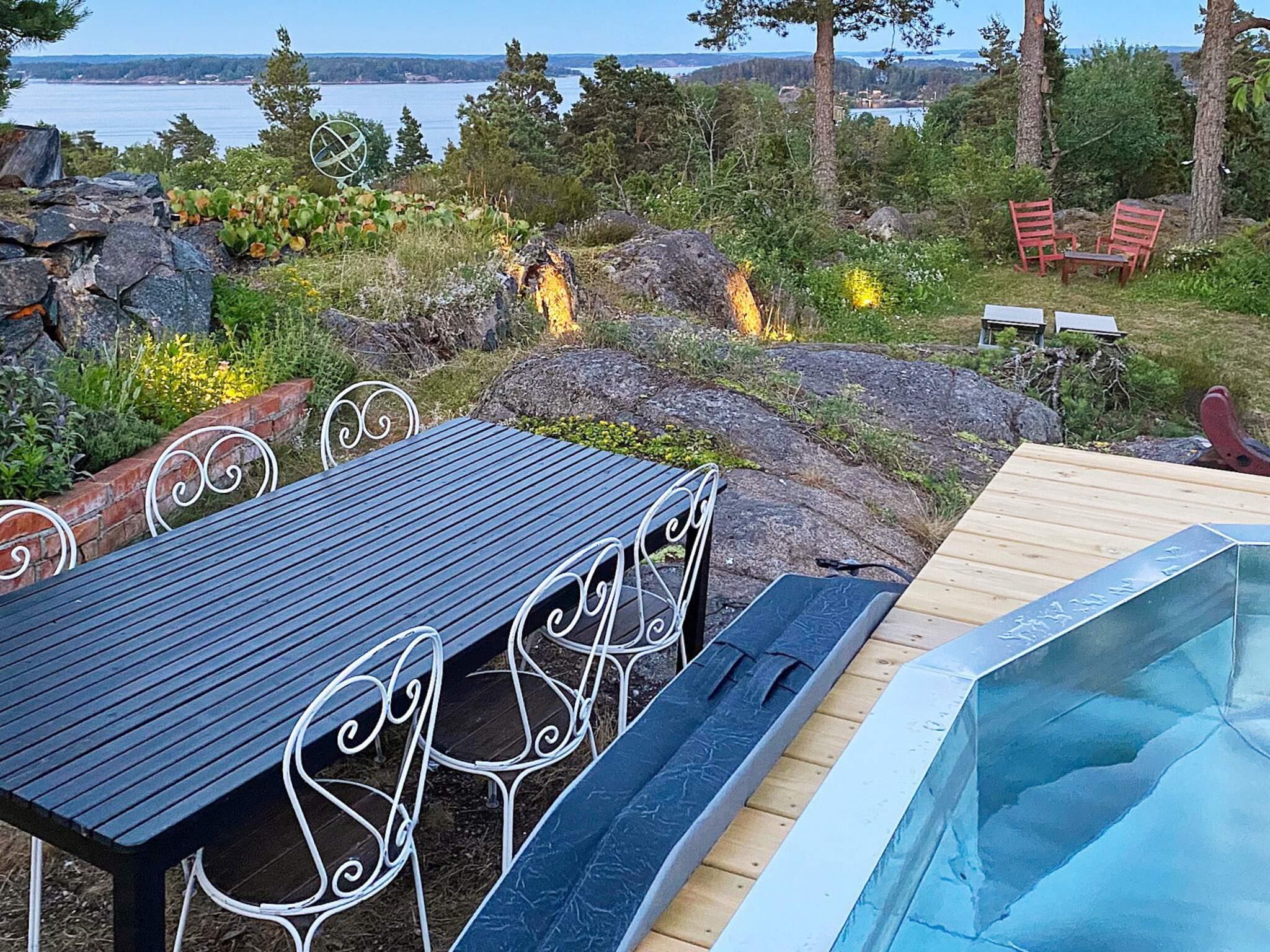 Neu für 2021: Vor der Terrasse befindet sich ein neu gebauter Minipool/Whirlpool aus Edelstahl mit dazugehörigem Holzofen. Genießen Sie darin ein warmes, erholsames Bad mit Blick auf die Baumwipfel und zur Bucht. Der Minipool / Whirlpool hat sowohl ein übliches Reinigungsfilter als auch eine UV-Reinigung für gute Hygiene und Komfort. Der Minipool/Whirlpool hat die Maße 280 x 190 cm. Wenn Sie den Minipool als Whirlpool nutzen möchten, müssen Sie Brennholz dafür mitbringen.