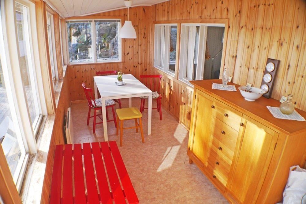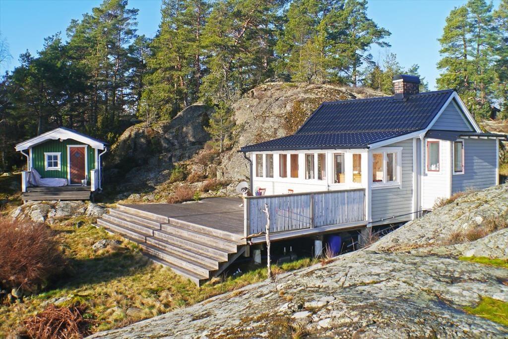På halvøen Nötön, som rækker ud i den store Vänern-sø, ca. 4 km syd for Åmål, ligger dette sommerhus sammen med en “friggebod” – et lille separat sovehus på ca. 10 m² – i et lille sommerhusområde helt nede ved søbredden. En privat badebro inviterer til en klassisk svensk morgondopp – en forfriskende morgendukkert, som mange svenskere sætter stor pris på. Indkøb og restauranter finder du i nærliggende Åmål. Den større by Karlstad, som ligger ved den nordlige ende af søen, er omkring 100 km væk og perfekt til en dagstur.