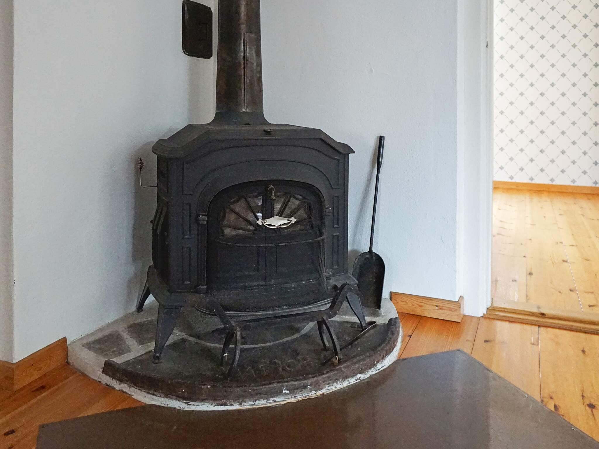 Innen geräumiges Wohnzimmer mit einer gut ausgestatteten, offenen Küche. In einem Teil des Wohnzimmers befindet sich eine gemütliche Sofagruppe, auf der Sie sitzen und den fantastischen Seeblick genießen können. Der See ist von einem wunderschönen Waldstück umgeben. Für kühlere Tage oder als Gemütlichkeitsfaktor steht ein alter, gusseiserner Ofen im Haus bereit, der wohlige Wärme verbreiten kann.