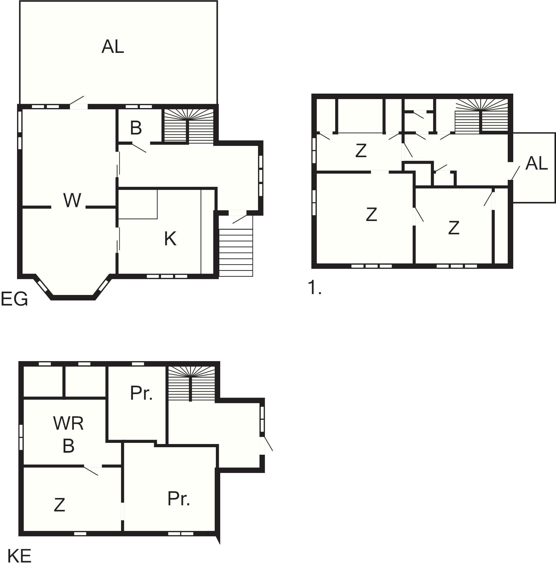 4 Schlafz.: (1DB)+(1DB+2K)+(2B)+(1DB), Kinderbett