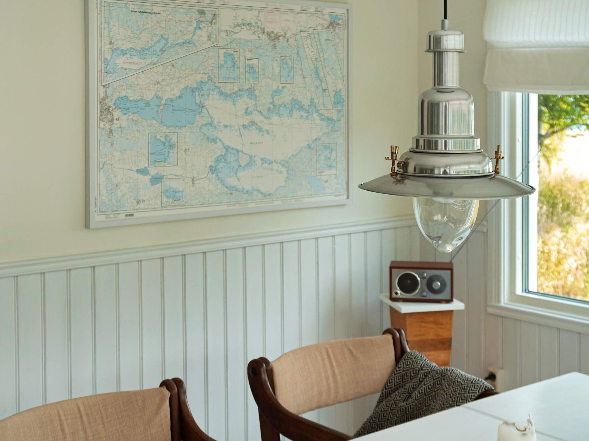 Den Seeblick genießen Sie bereits beim Betreten des Eingangs. Geradeaus haben Sie den Essbereich des Hauses, wo Sie bis in den Abend sitzen und den Seeblick bewundern können. Es gibtsowohl Schwäne als auch Kormorane zu sehen, die in der Bucht leben. Die Küche, die an den Essbereich grenzt, hat das meiste zur Selbstverpflegung, jedoch keinen Geschirrspüler.