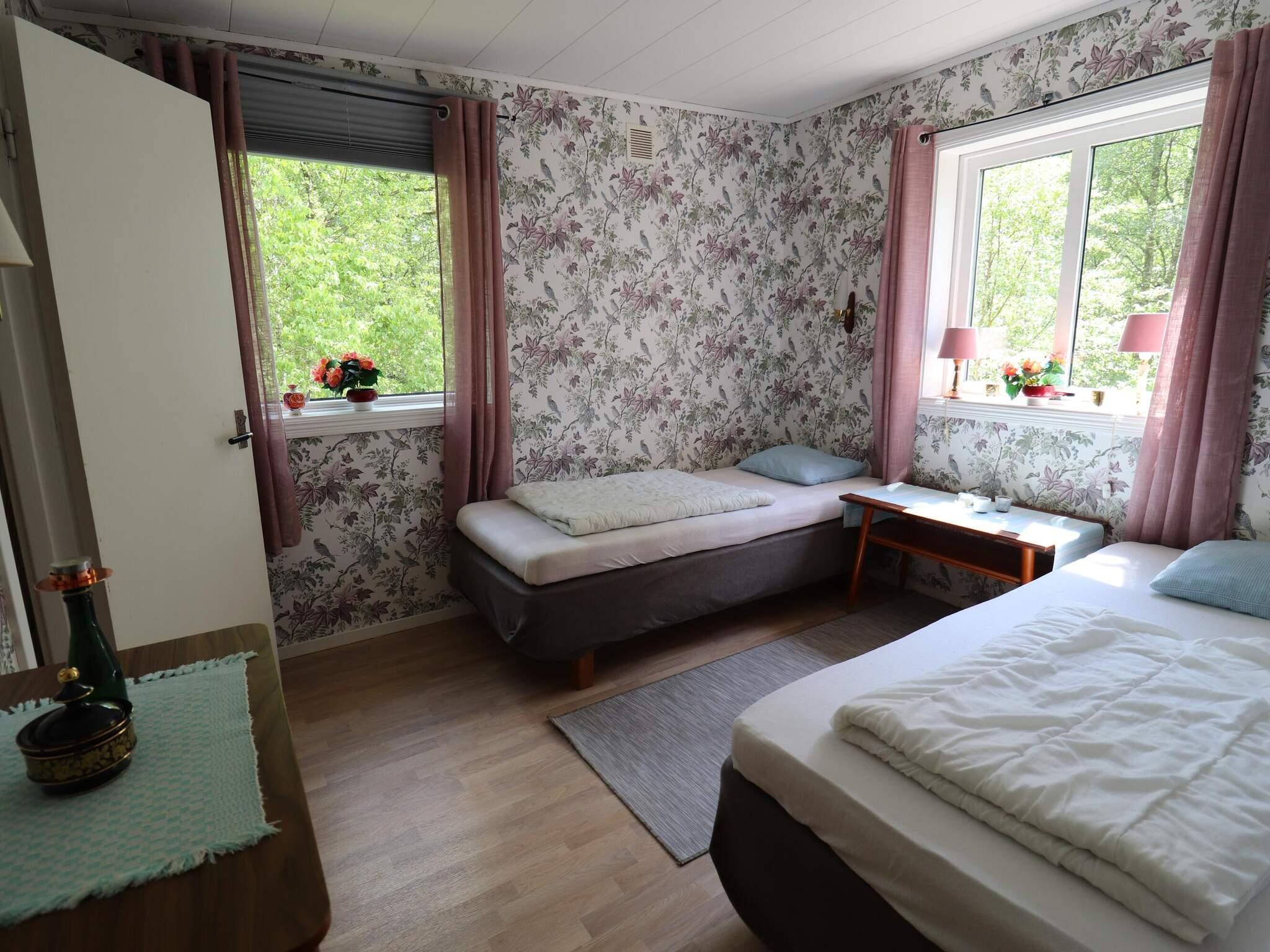 Das Ferienhaus verfügt über eine Küche mit Essbereich, ein Schlafzimmer mit zwei Einzelbetten und ein Wohnzimmer mit Schlafcouch für zwei Personen sowie einem Fernseher mit deutschen und schwedischen Sendern. Das Badezimmer ist mit Dusche und Waschmaschine ausgestattet. Am Eingang befindet sich ein Wintergarten mit großen Fenstern zum Patio und zum Wald. Der überdachte Balkon auf der Rückseite bietet Gartenmöbel und einen Grill. Kostenloses WLAN steht Ihnen zur Verfügung. Unterhalb des Ferienhauses lädt eine hübsche, von blühenden Sträuchern umrahmte Terrassenfläche zum Verweilen ein. Hier finden Sie sowohl sonnige als auch schattige Plätze für Ihren Morgenkaffee und laue Sommerabende.
