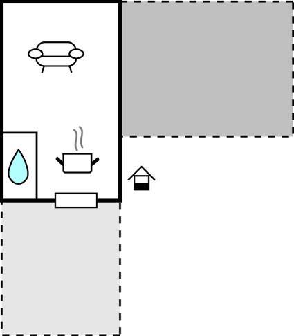 Wohnraum/Küche - 1 Schlafmöglichkeit. (Einzelbett(en)). 2 Schlafmöglichkeiten. (Schlafsofa,Matratze,Sonstiges).