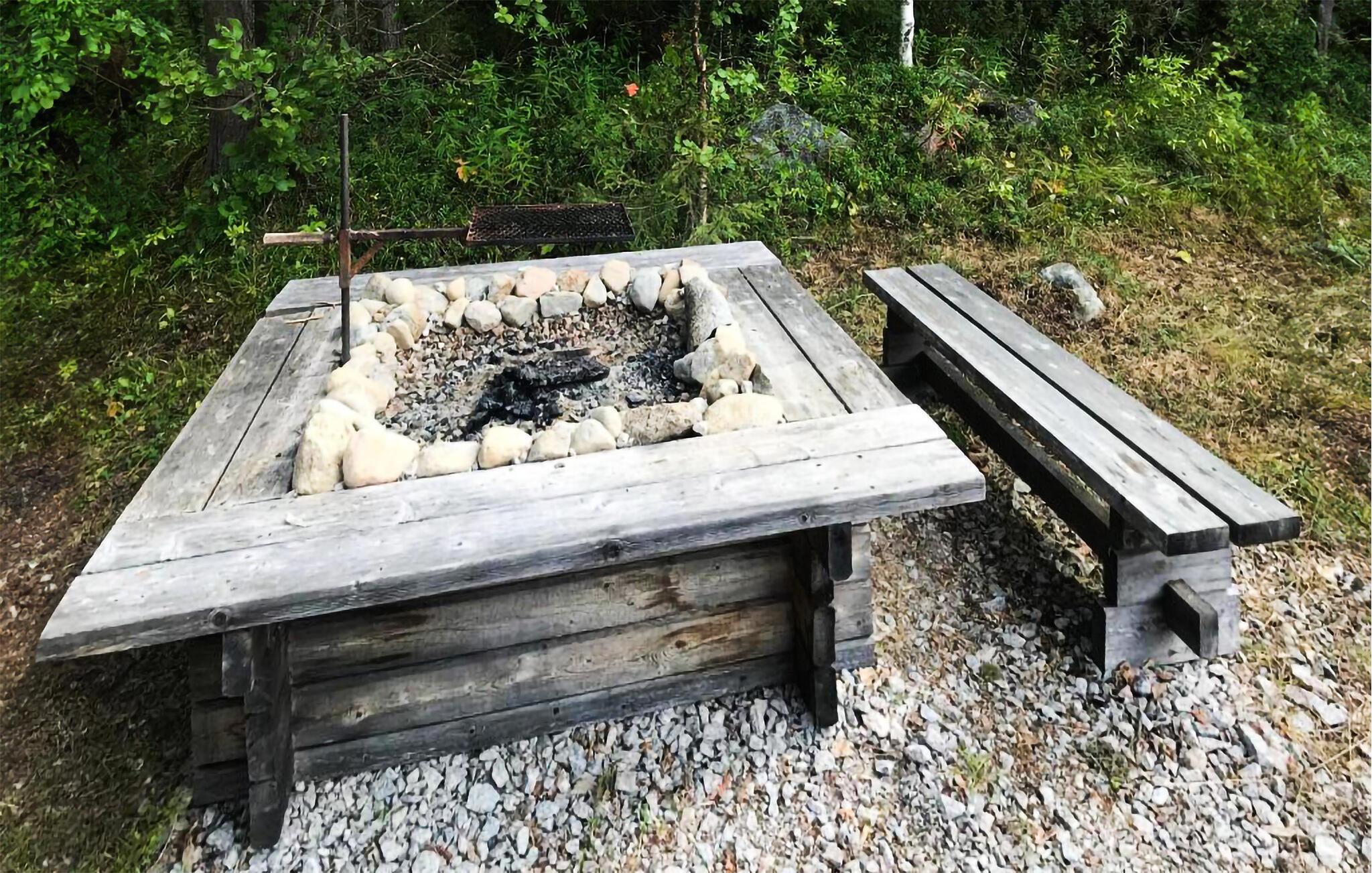 Der weitläufige Garten bietet eine idyllische Feuerstelle, ideal für gesellige Abende im Freien. Genießen Sie die Ruhe und den atemberaubenden Blick auf den Kesasjärv, der direkt vor der Haustür liegt.
