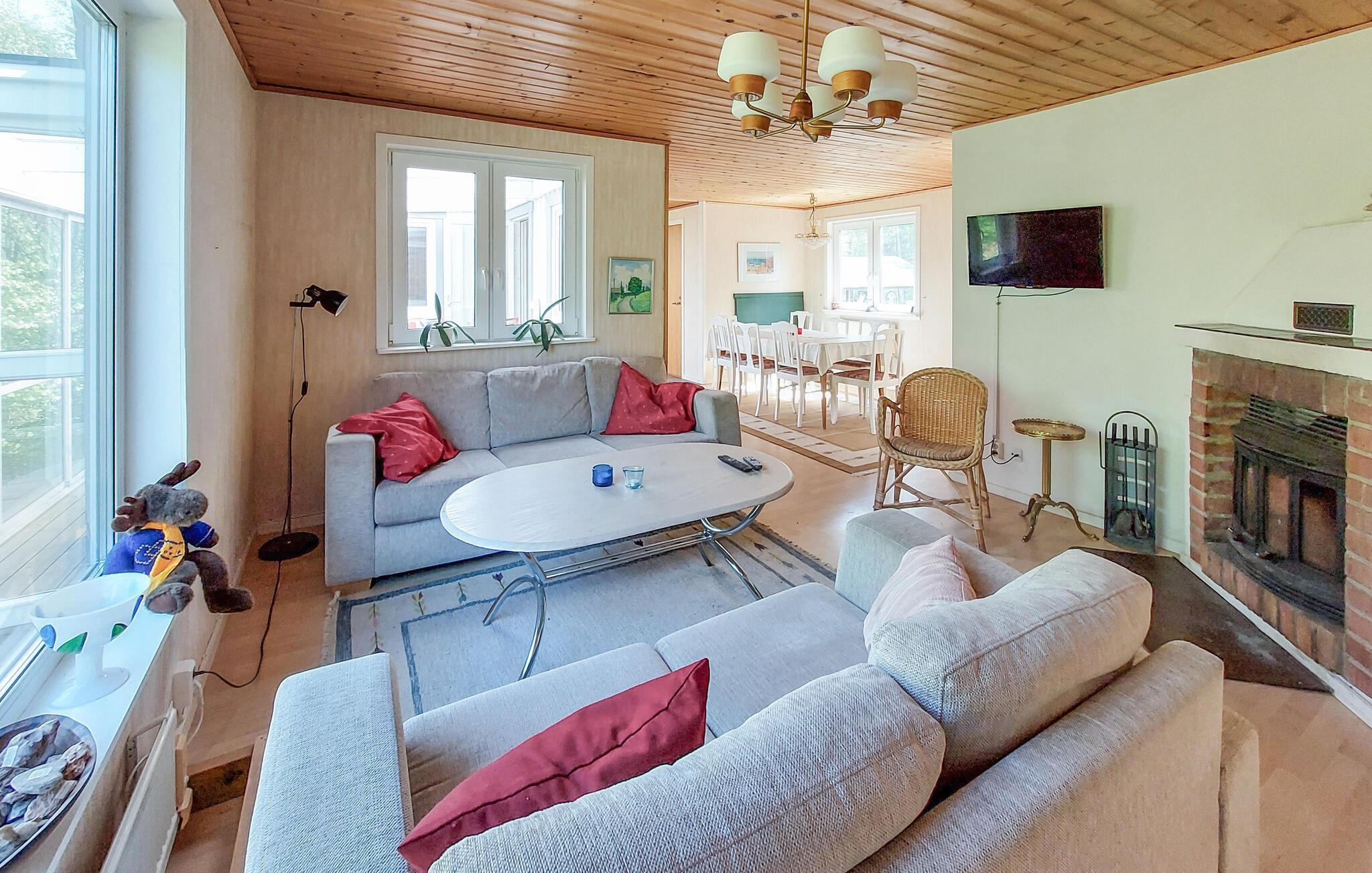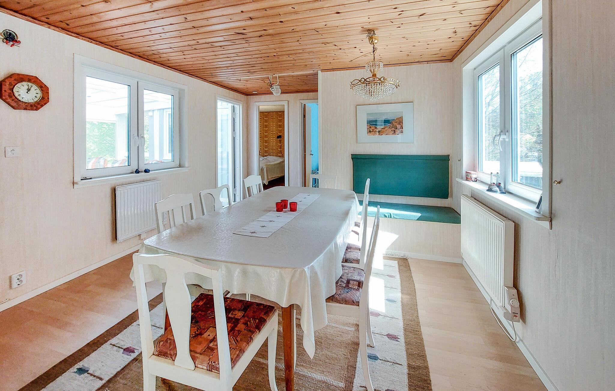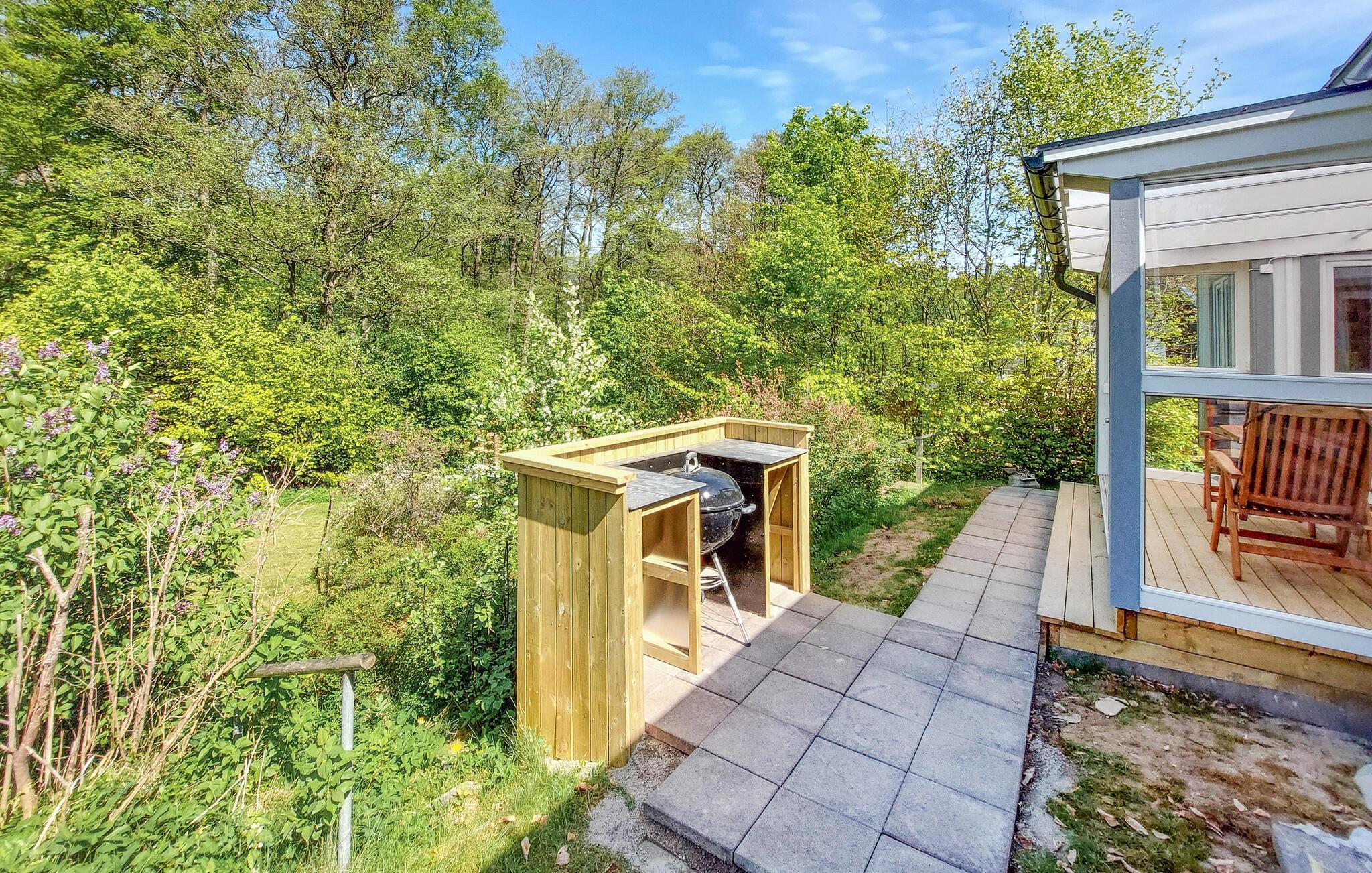 Das gemütliche Haus erwartet Sie mit wohnlich möblierten Räumen am Waldrand und bietet die besten Bedingungen für eine erholsame Auszeit nahe der Küste. Entspannen Sie nach Ihren Unternehmungen in der Sauna. Lassen Sie einen herrlichen Urlaubstag im Wintergarten ausklingen, speisen Sie am langen Esstisch und machen Sie es sich später auf dem Sofa gemütlich, während im Kaminofen die Flammen knistern.