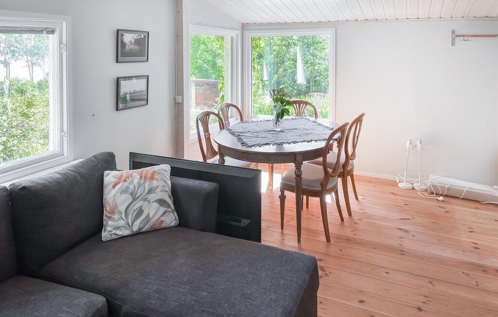 Gönnen Sie sich Ruhe und Erholung und genießen dabei den Ausblick auf den See. Genau das erwartet Sie in diesem hübschen und hellen Ferienhaus. Die Einrichtung und Ausstattung schaffen für Sie ein praktisches und lichtdurchflutetes Ambiente, in dem Sie sich wohlfühlen können. Legen Sie die Beine auf dem Sofa hoch oder zaubern in der Küche leckere Snacks, die Sie beim Kartenspielen auf der Terrasse oder im Garten genießen können.
