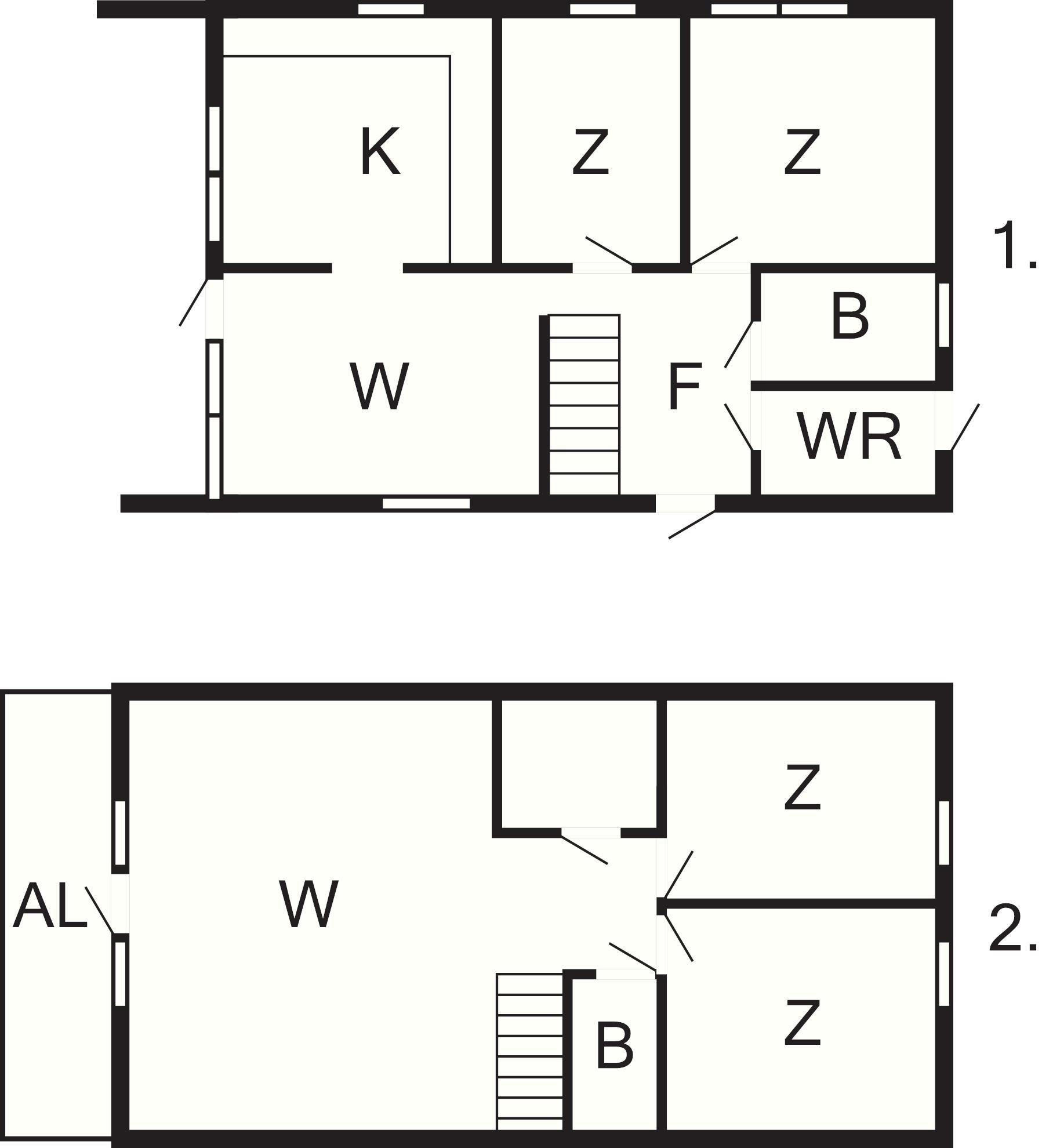 Das Haus erstreckt sich über zwei Ebenen, wobei die untere Etage aus einer hellen Küche mit Essbereich sowie zwei Schlafzimmern besteht; eines mit 180 cm breitem Doppelbett, das andere mit einem Familienbett mit 120 cm breiter Liegefläche untern und 80 cm breiter Koje darüber. Badezimmer mit Badewanne und Dusche sowie praktische Waschküche mit Waschmaschine.