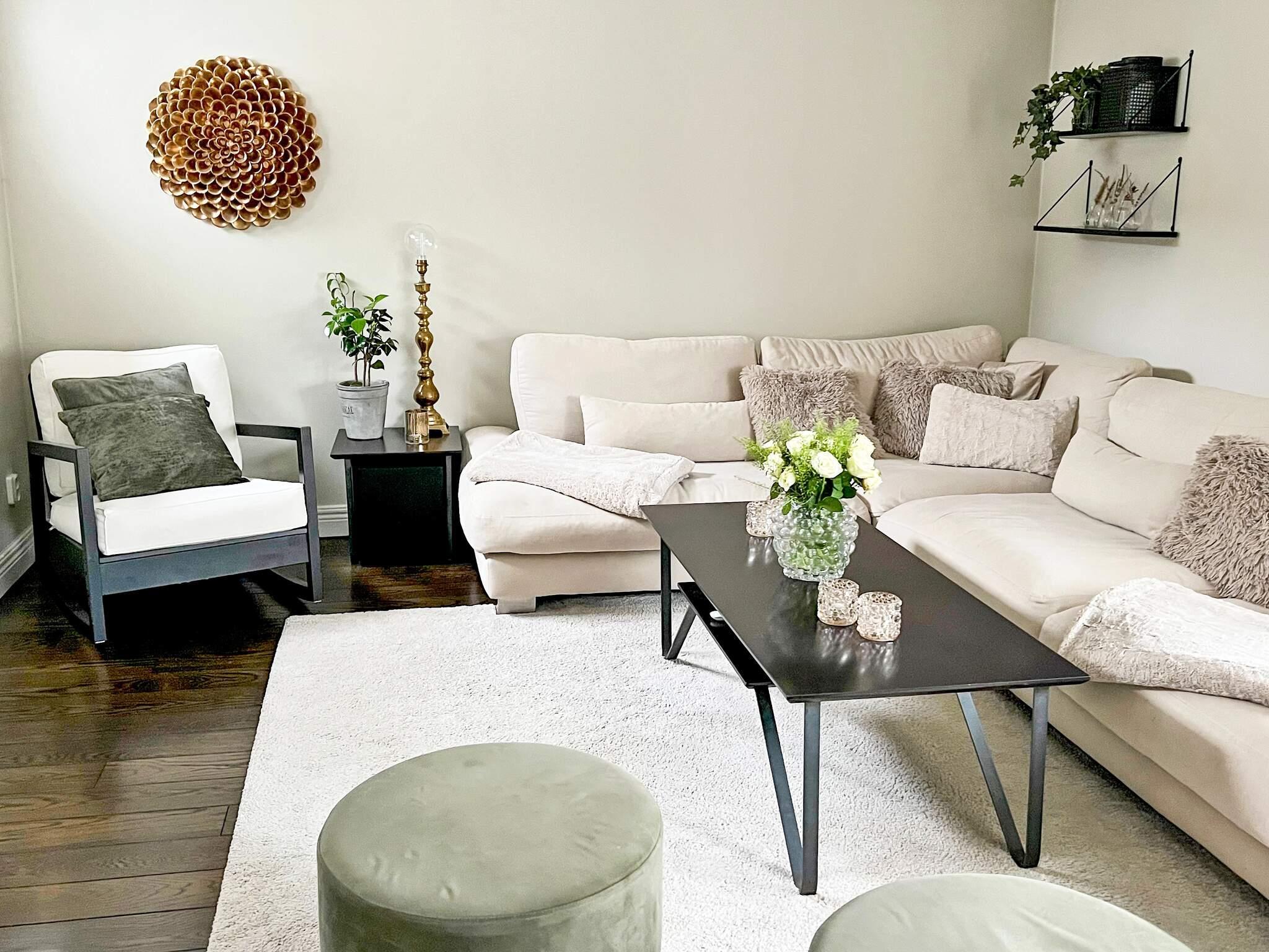 Einladend und stilvoll eingerichtet, bietet es alles für einen unvergesslichen Urlaub. Das Ferienhaus ist groß genug für zwei Familien und verfügt über drei Schlafzimmer mit Doppelbetten und ein viertes mit zwei Einzelbetten. Es erstreckt sich über zwei Etagen: Im Obergeschoss befinden sich ein Doppelzimmer und ein Zimmer mit zwei Einzelbetten, die anderen Schlafzimmer im Erdgeschoss. Hier finden Sie großzügige Wohnbereiche, eine moderne Küche und ein angrenzendes Esszimmer. Das geräumige Badezimmer ist mit Whirlpool, zwei Waschbecken, Waschmaschine und Trockner ausgestattet. Sollte es drinnen kühl sein, sorgt der große Specksteinofen für wohlige Wärme. Vom großen Wohnzimmer mit bequemen Sofas und Fernseher gelangen Sie direkt auf den großen Balkon. Dort befindet sich ein Whirlpool, in dem Sie sich an heißen Sommertagen erfrischen oder an kühleren Tagen mit Holz heizen können. Auf der Terrasse, die das Haus umgibt, gibt es Liegestühle, Esstische und verschiedene gemütliche Sitzecken, falls Sie etwas Zeit für sich brauchen.