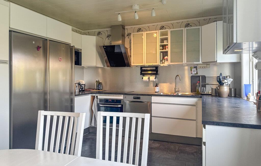Genießen Sie Ruhe und Behaglichkeit in diesem gepflegten Ferienhaus, das mit seiner geschmackvollen Einrichtung und der einladenden Atmosphäre überzeugt. Im großzügigen Wohnbereich schaffen warme Holzböden und stilvolle Möbel eine gemütliche Stimmung. Machen Sie es sich auf dem bequemen Sofa bequem, sehen Sie einen Film auf dem Fernseher oder lesen Sie in ruhiger Umgebung. Der Essbereich bietet Platz für gemeinsame Mahlzeiten, während die schöne Essküche zu geselligen Kochmomenten einlädt. Speisen können Sie auch im Wintergarten, der durch große Fenster den Blick auf den gepflegten Garten freigibt. Nach einem aktiven Tag sorgt die Sauna für wohltuende Wärme und Entspannung.