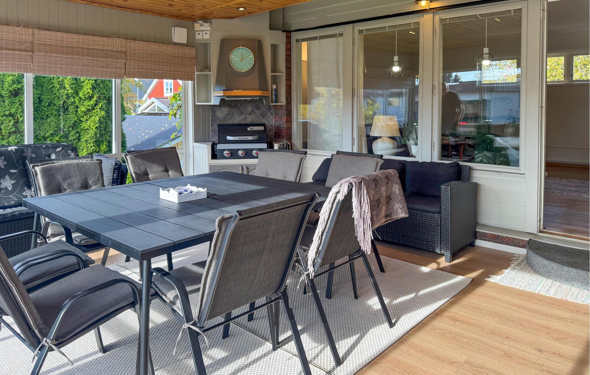Treten Sie hinaus auf die überdachte Terrasse und entspannen Sie auf den bequemen Gartenmöbeln oder lassen Sie den Tag bei einem Grillabend ausklingen. Der weitläufige Rasen lädt Kinder zum Spielen und Erwachsene zum Sonnen ein.