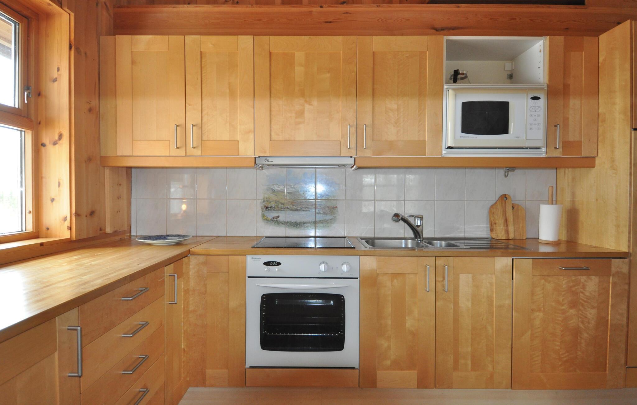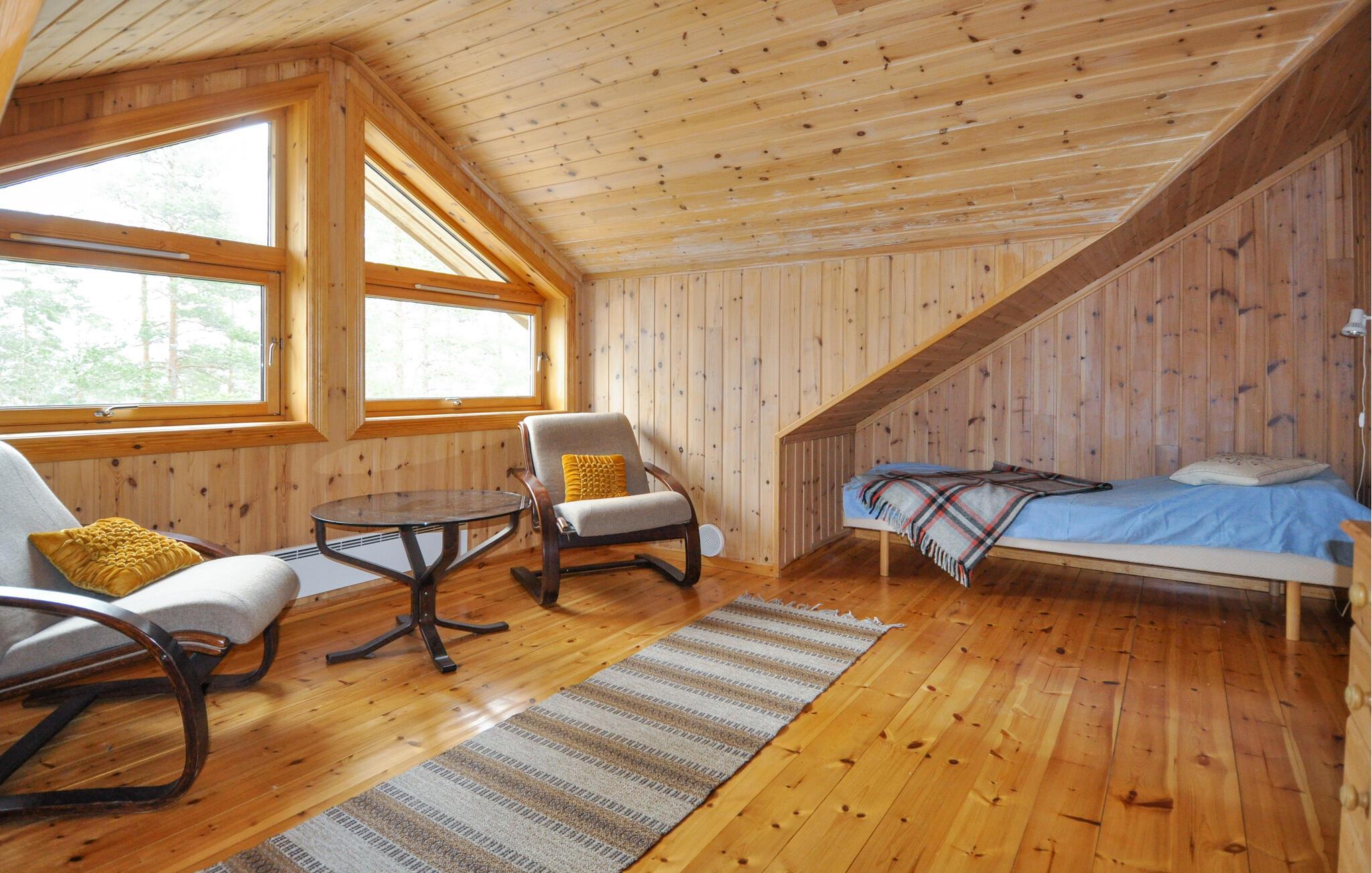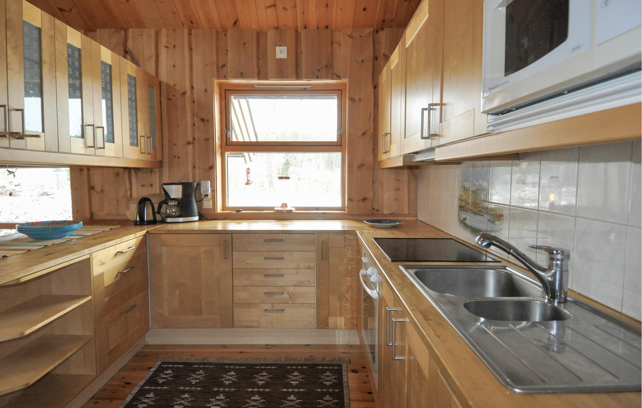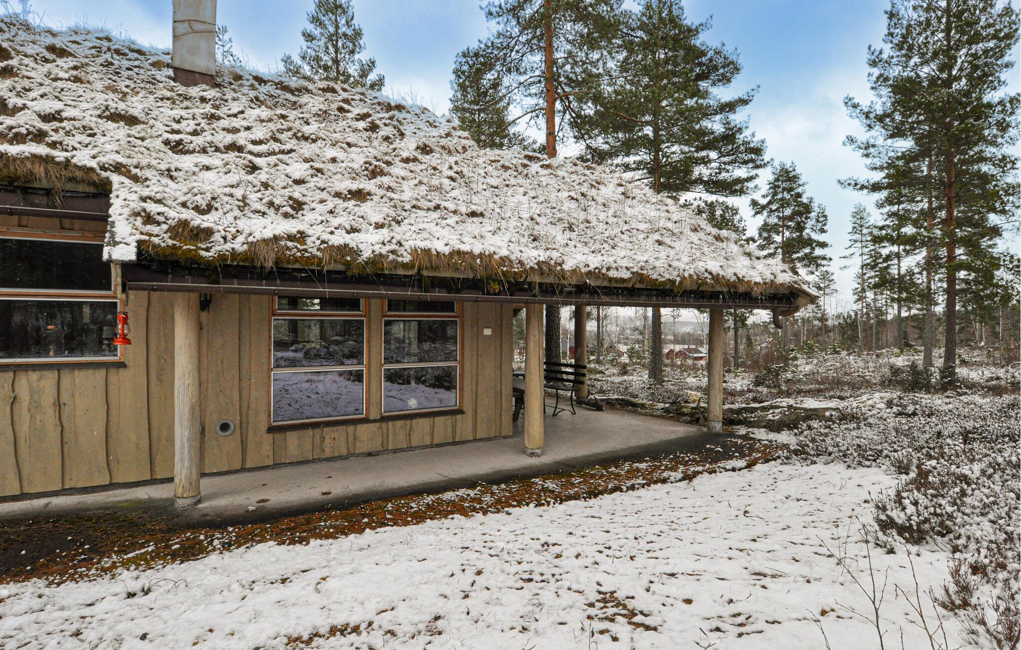 Treten Sie hinaus auf die überdachte Terrasse und hören Sie den Wind durch die Bäume rauschen. Der Wald beginnt direkt vor der Haustür. Nutzen Sie den umliegenden Naturraum für morgendliche Spaziergänge oder zum Sammeln von Beeren und Pilzen in der Saison. Im Winter lädt die verschneite Umgebung zum Langlaufen ein.