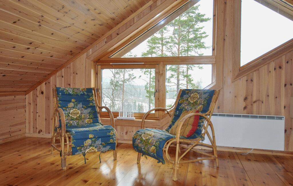 Genießen Sie dieses großzügige Ferienhaus, das eingebettet in die ruhige Landschaft Värmlands liegt und einen schönen Urlaub mit Natur, Erholung und skandinavischem Hüttenflair verspricht. Lassen Sie sich vom rustikalen, gemütlichen Innenraum empfangen. Große Fenster, Holzwände und offene Decken schaffen eine warme Atmosphäre. Machen Sie es sich auf dem Sofa vor dem imposanten Natursteinkamin bequem. Entspannen Sie sich mit einem Buch in der hellen Sitzecke oder genießen Sie eine warme Sauna nach einem aktiven Tag. Das Obergeschoss bietet eine charmante Galerie mit Leseplätzen und Blick in die Natur.
