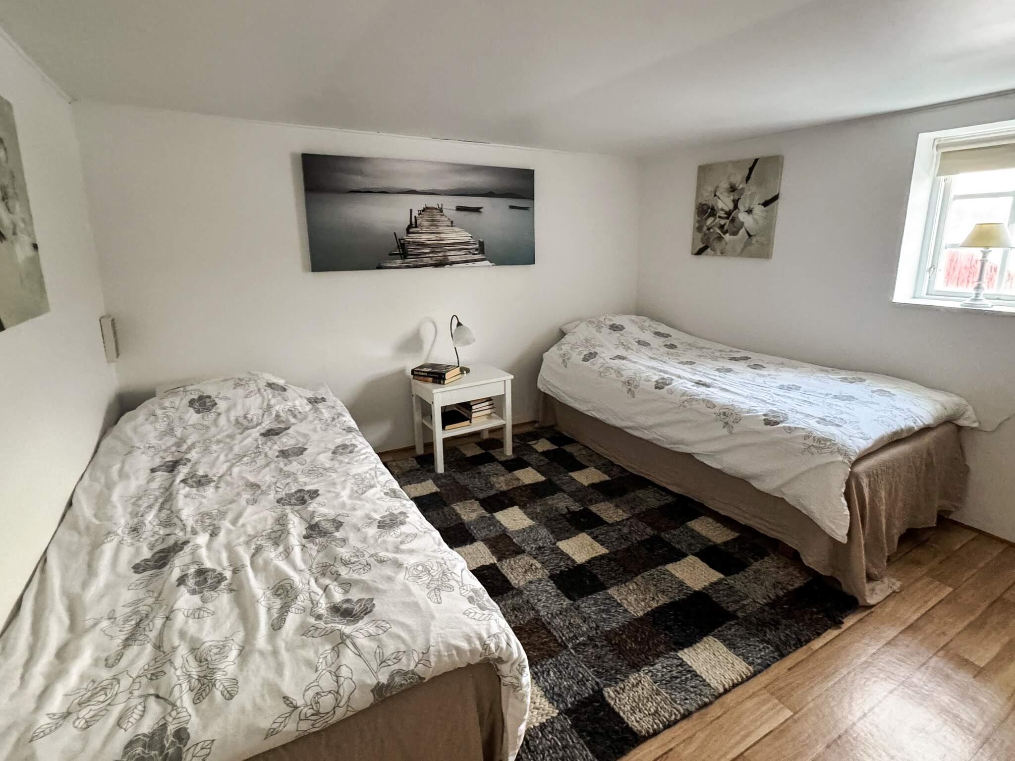 Eine kleinere, etwas steile Treppe führt hinauf ins Dachgeschoss, wo Sie zwei Schlafzimmer finden; eines mit Doppelbett, das andere mit drei Einzelbetten. Die Deckenhöhe an der Treppe ist etwas begrenzt, daher sollten einige Gäste darauf vorbereitet sein, in die Knie zu gehen.
