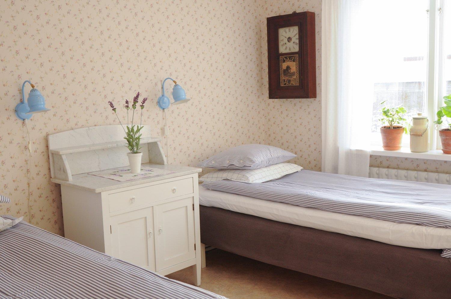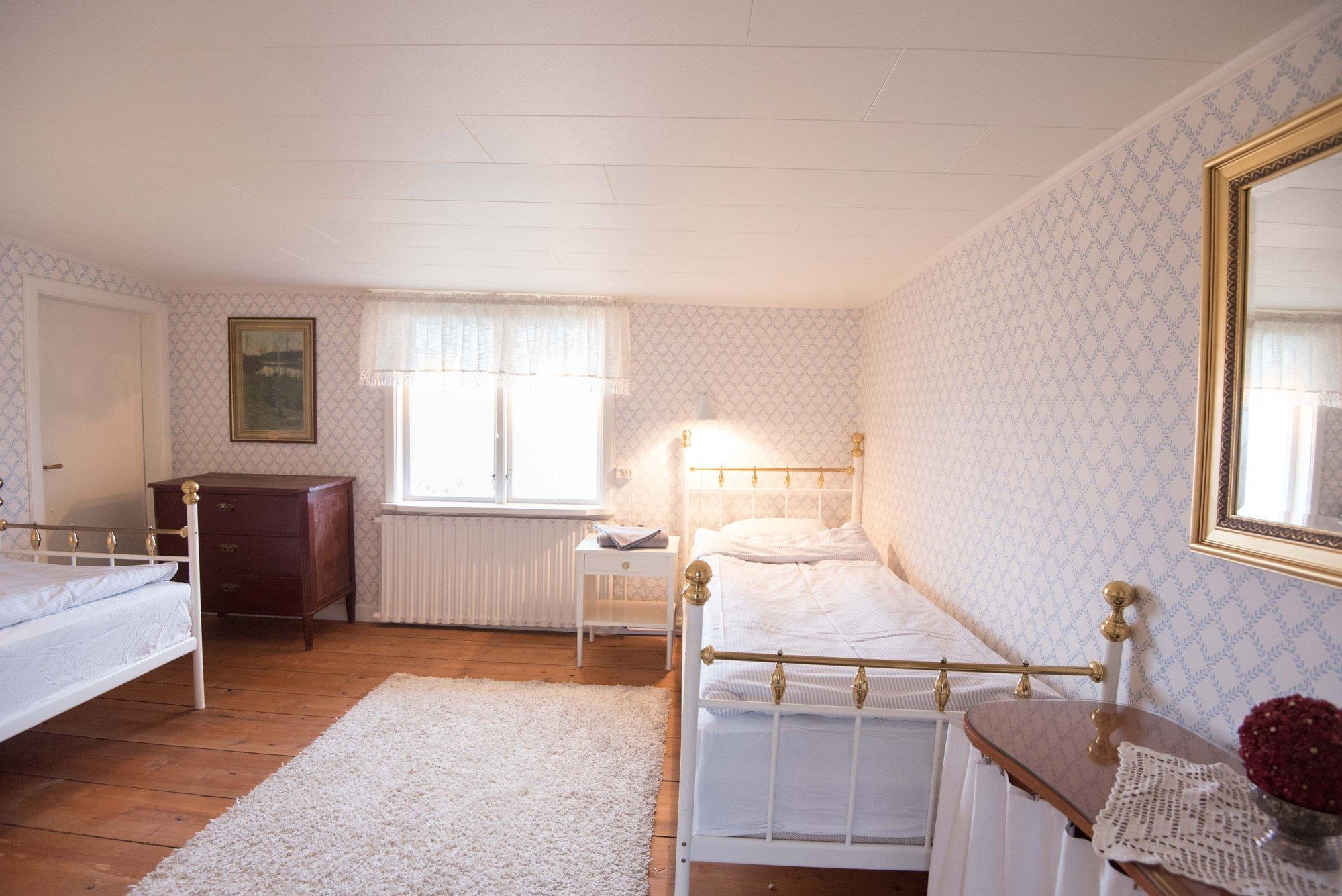 You sleep comfortably in single beds, distributed across 5-6 rooms. The bedrooms are spacious and located separately from each other.